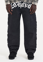 Mens Gothic Frayed Panel Denim Trousers Jeans - Black