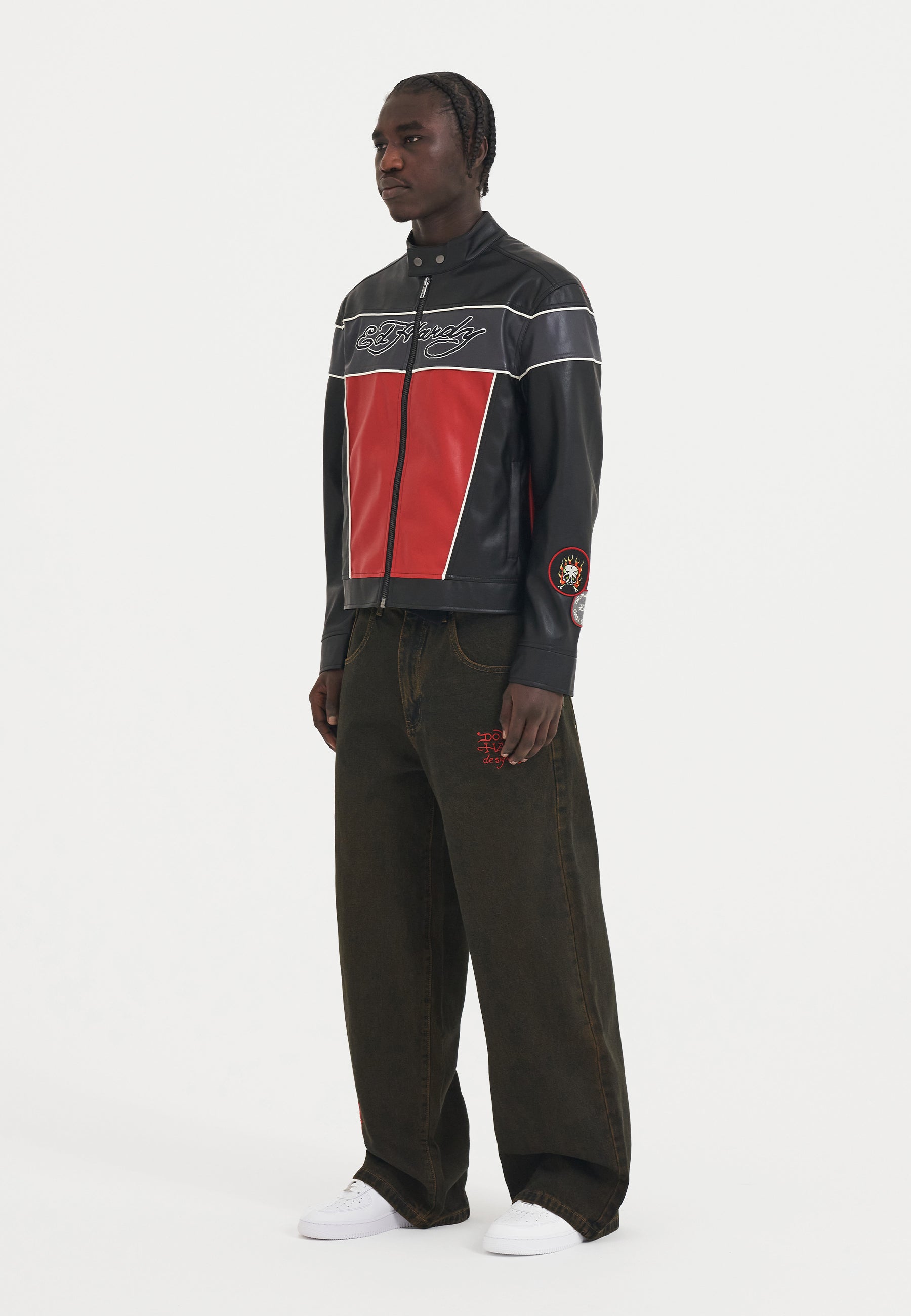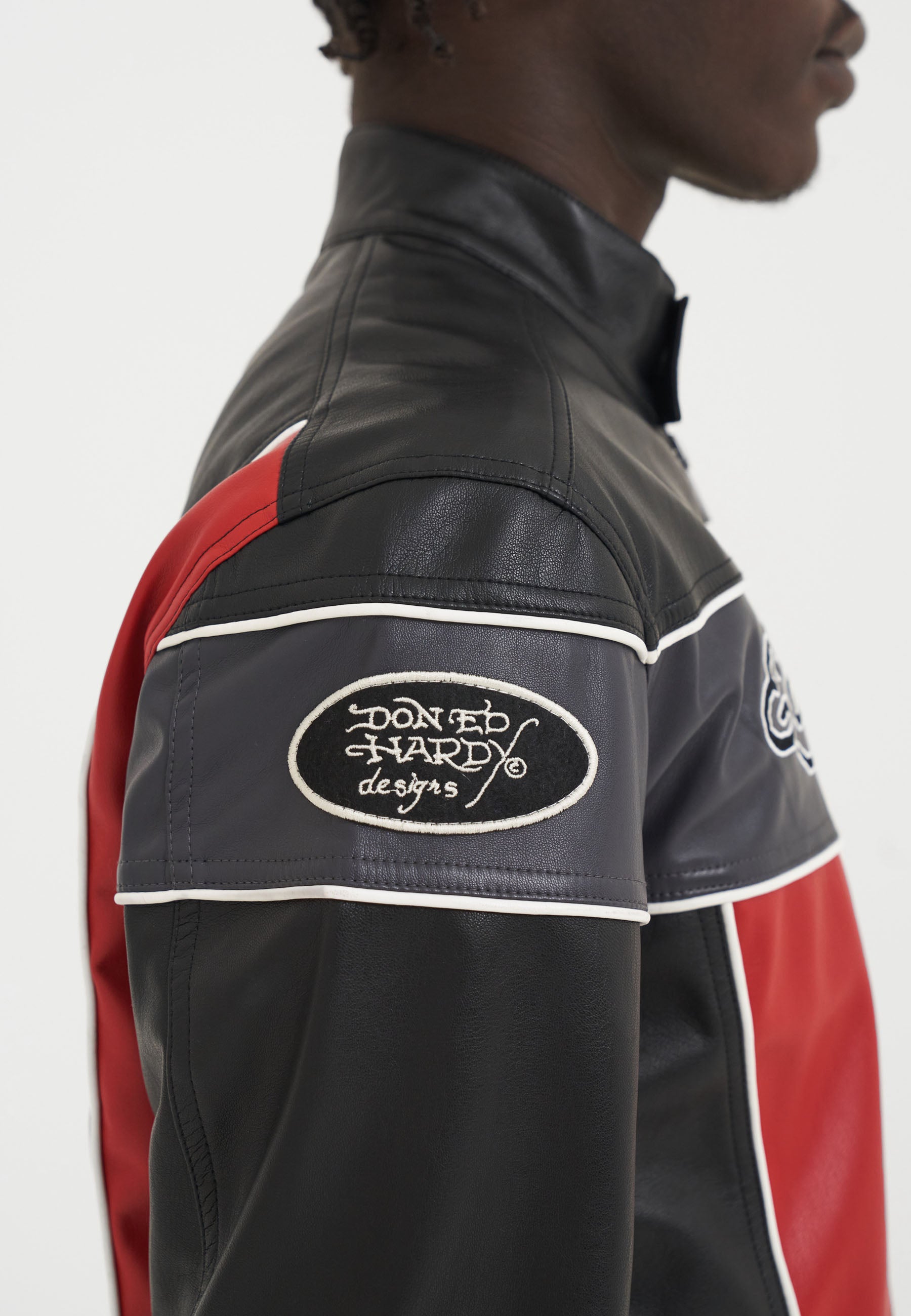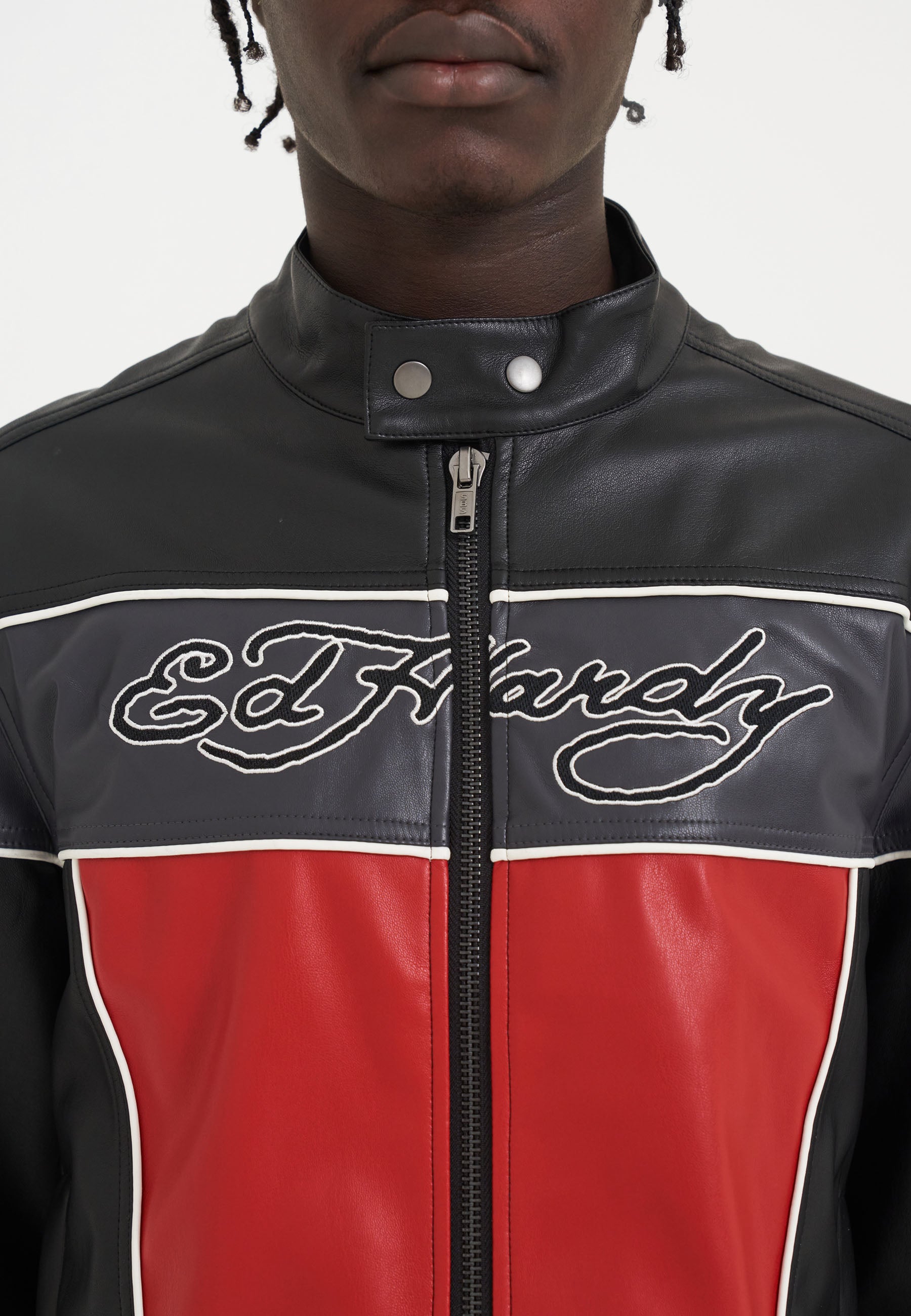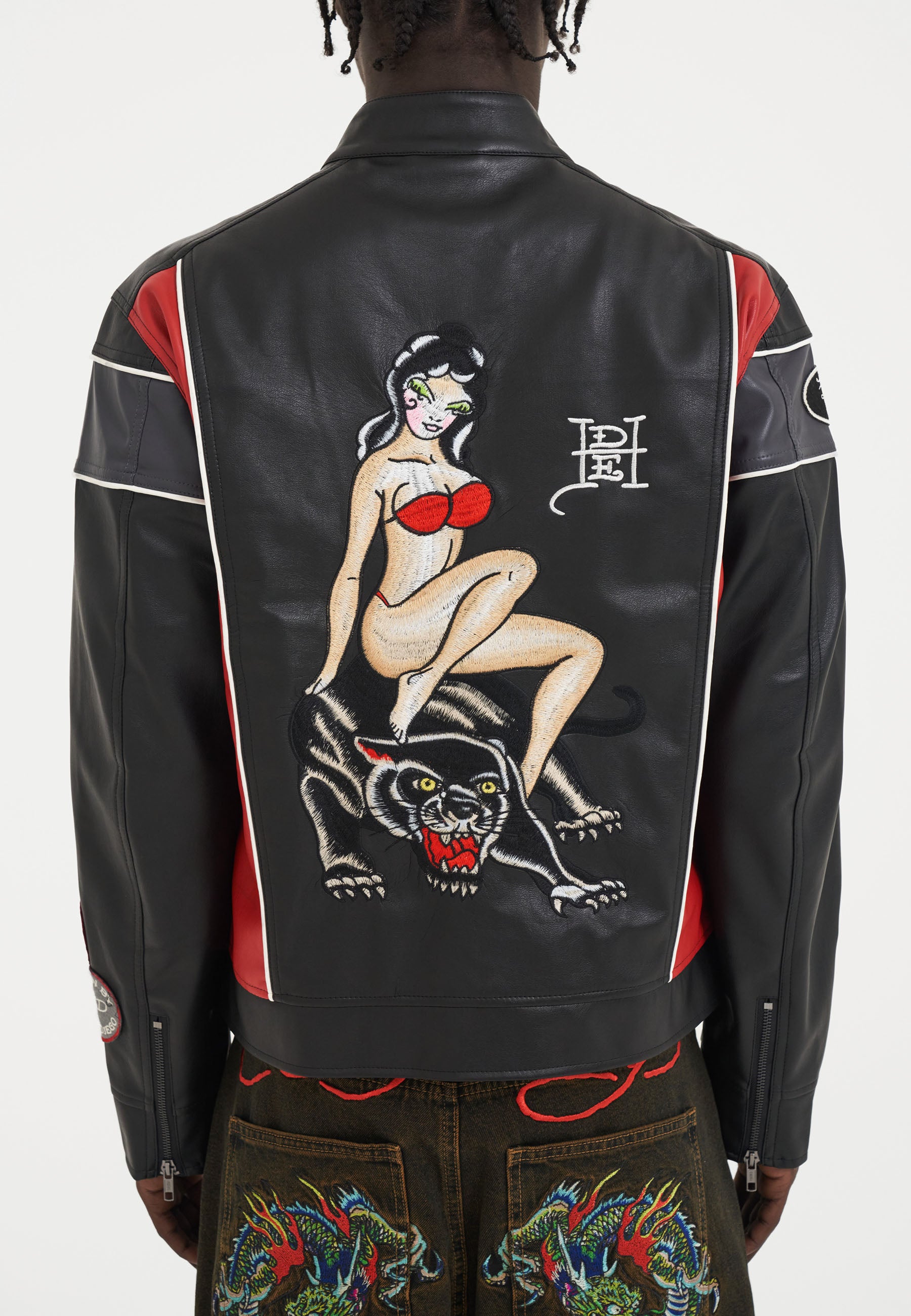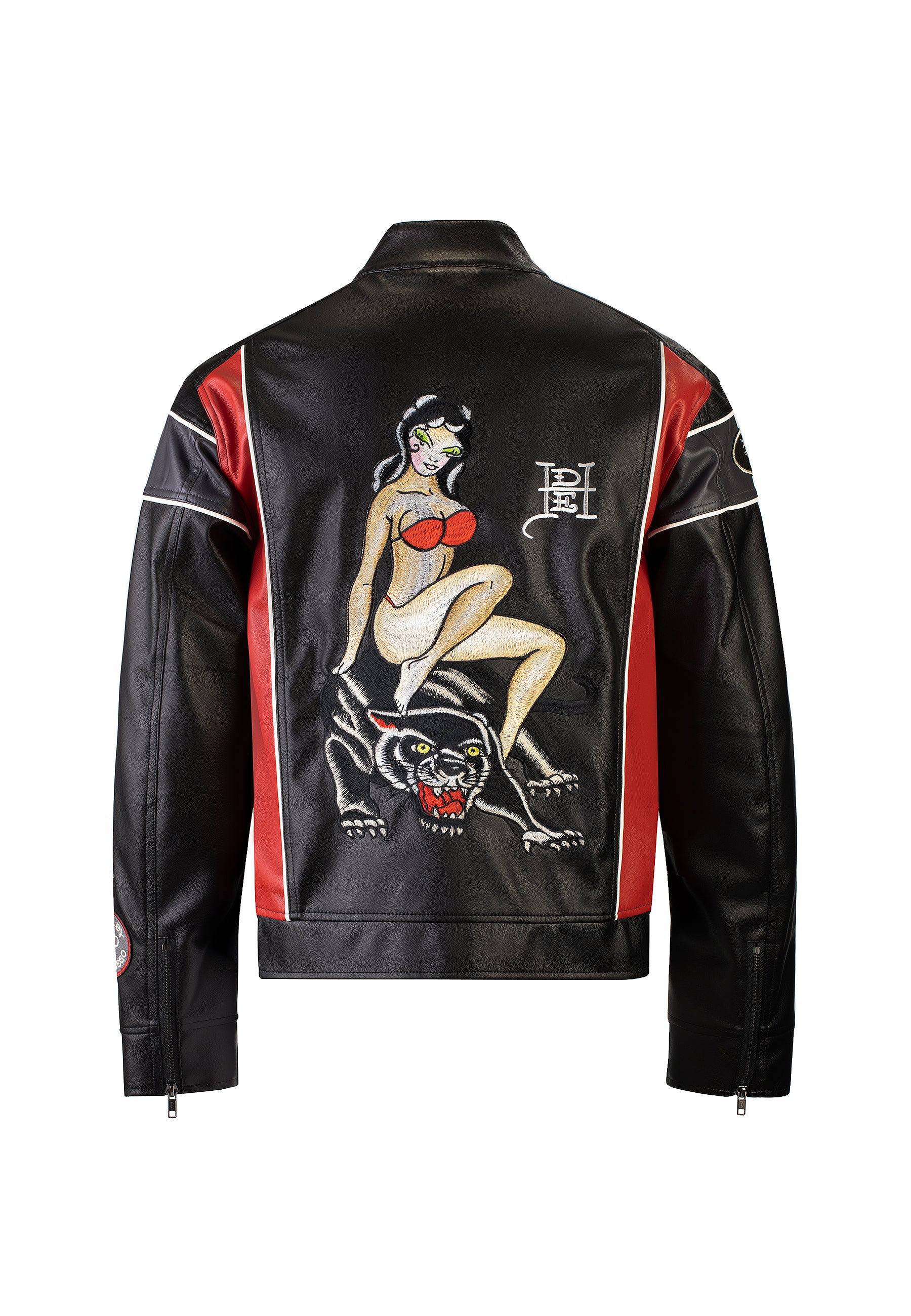 Mens Holly Panther Vegan Leather Motocross Jacket - Black/Red