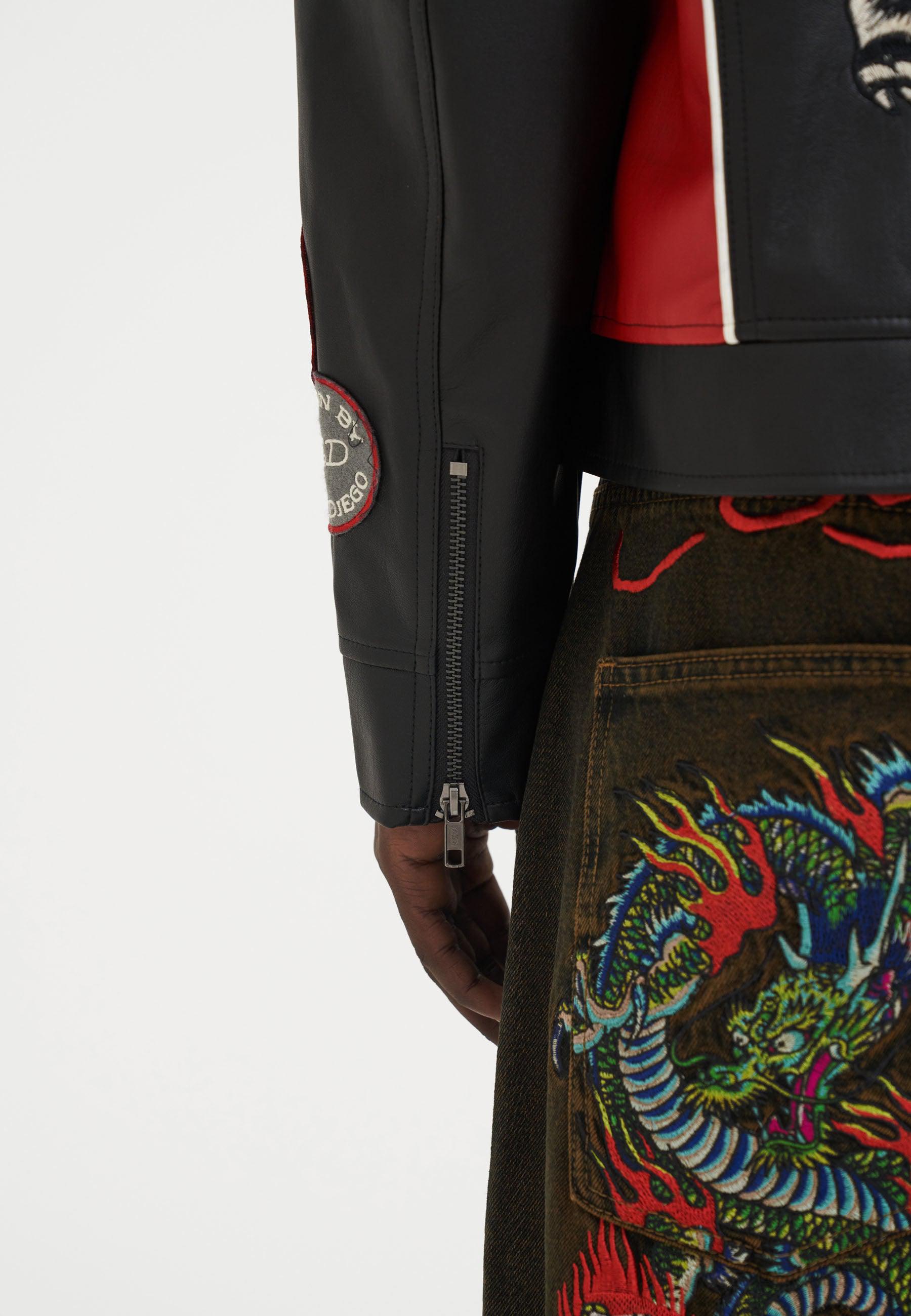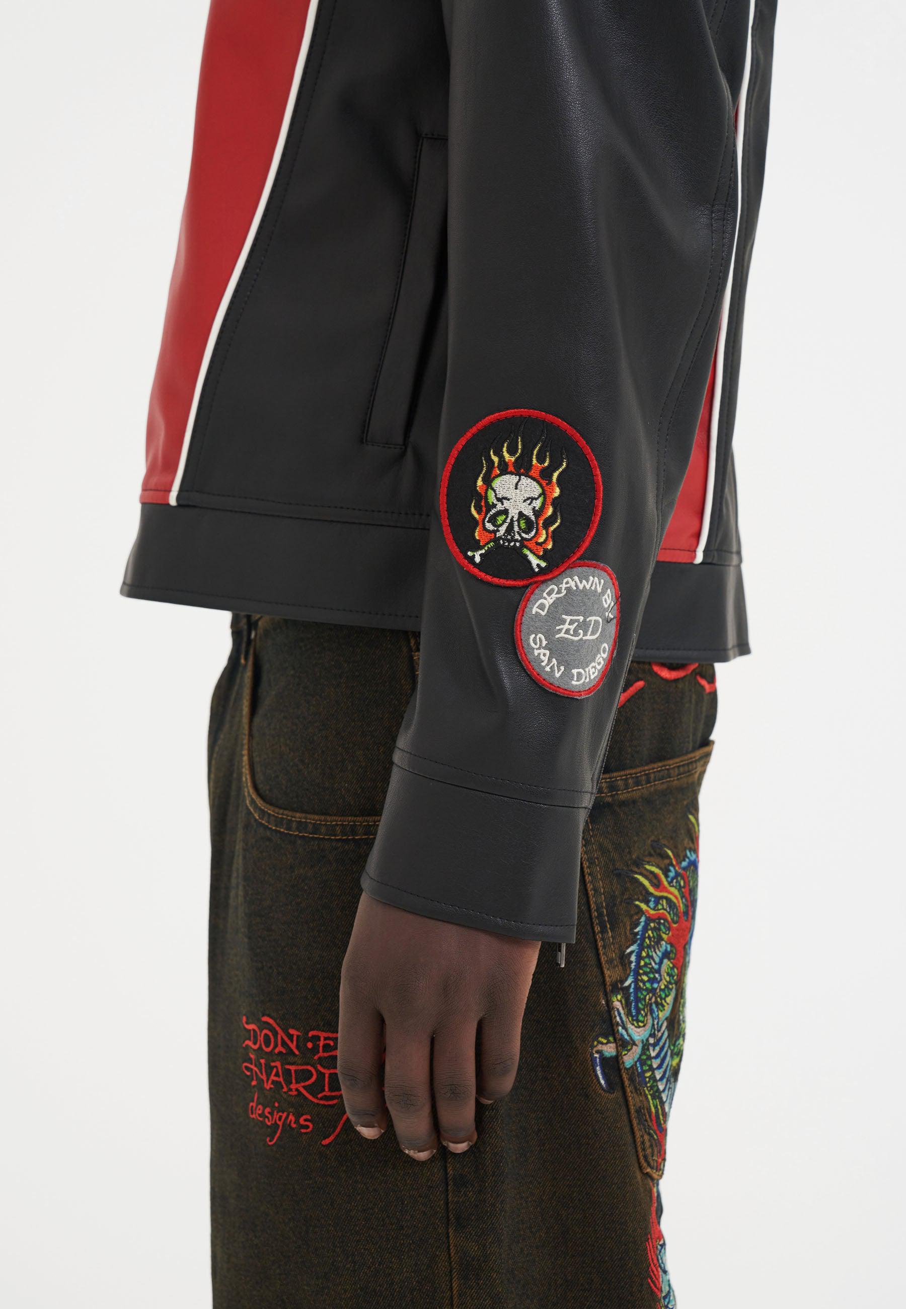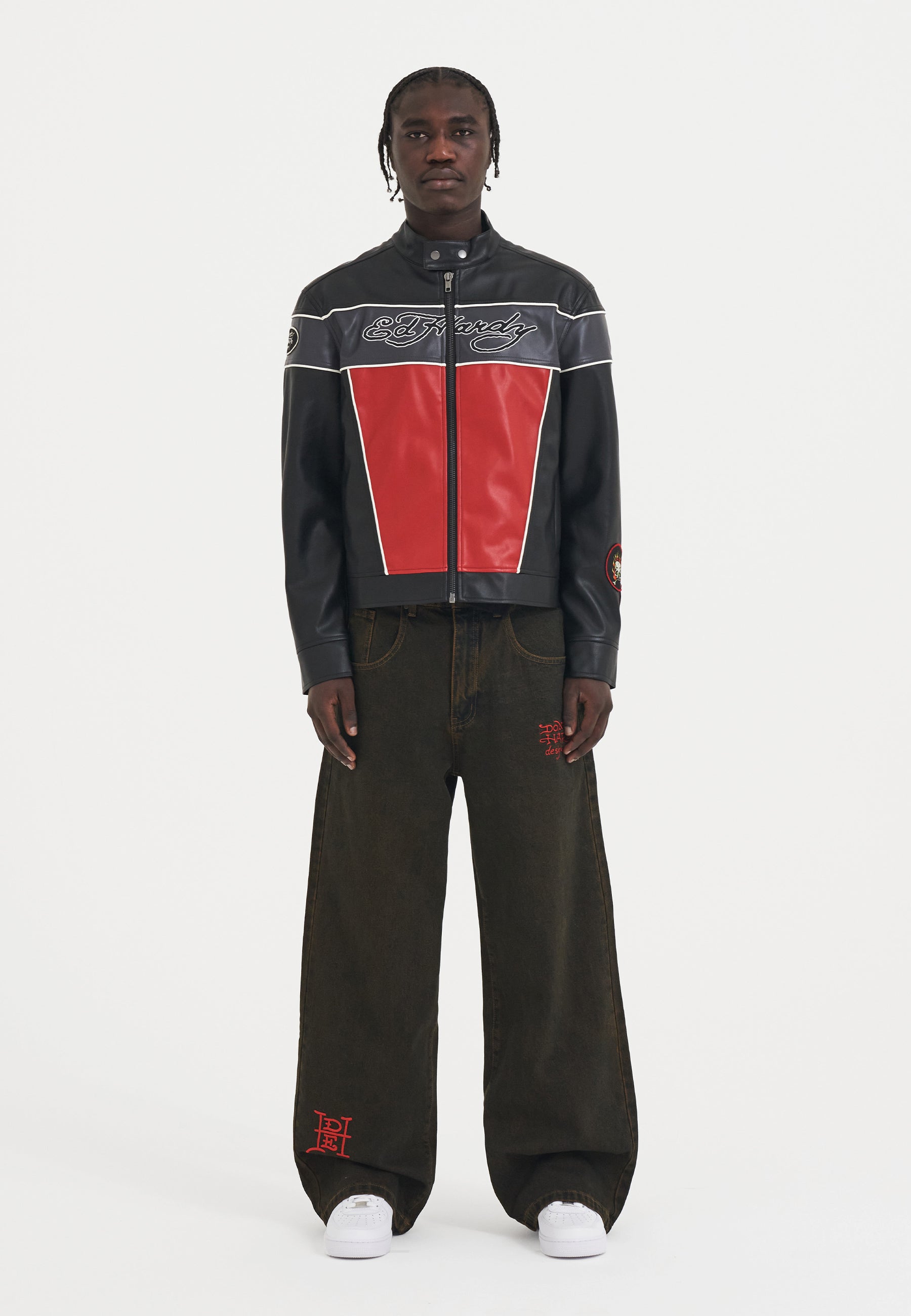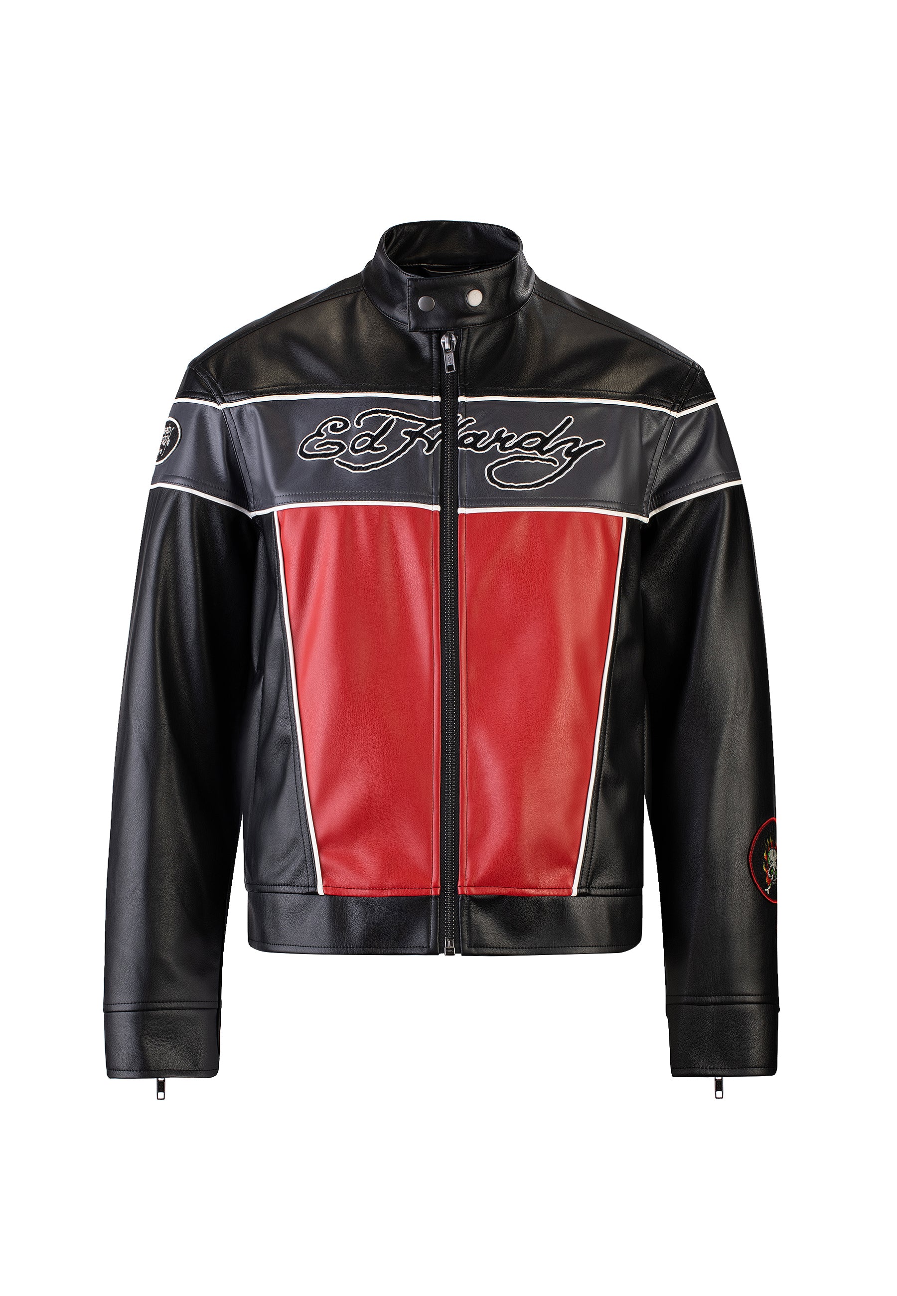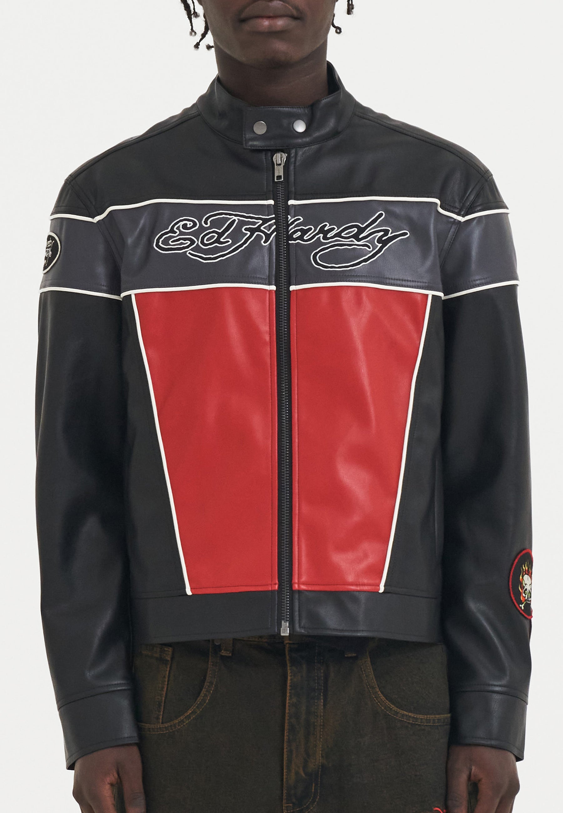 Mens Holly Panther Vegan Leather Motocross Jacket - Black/Red