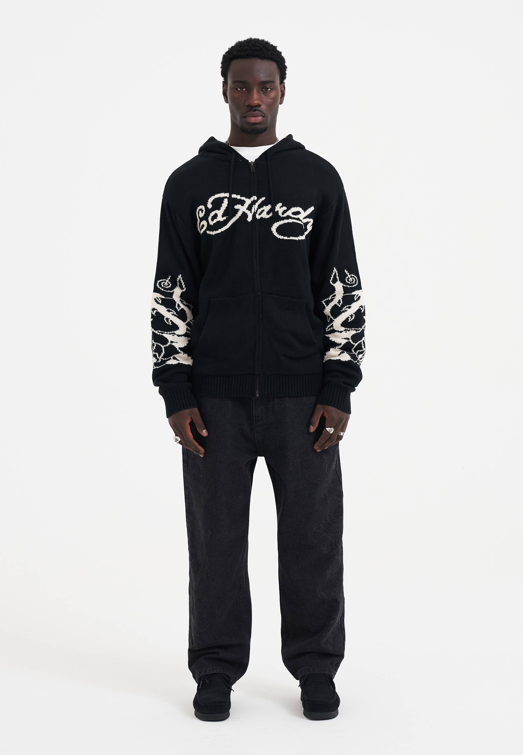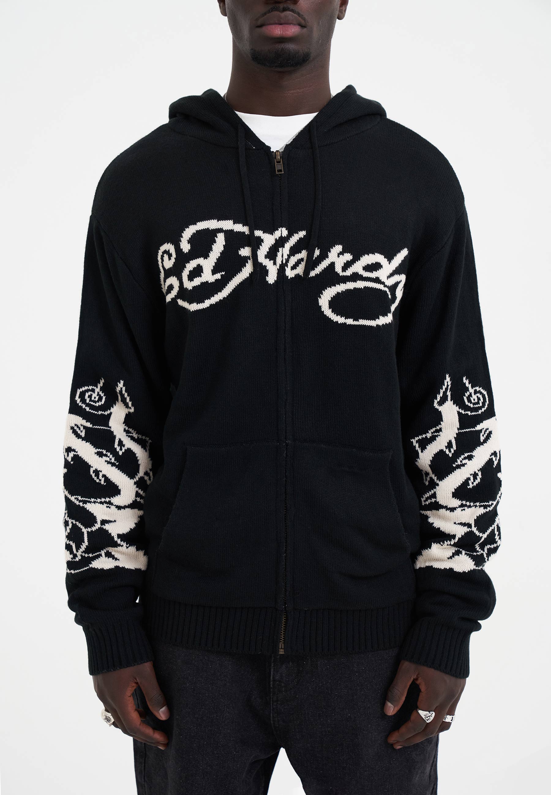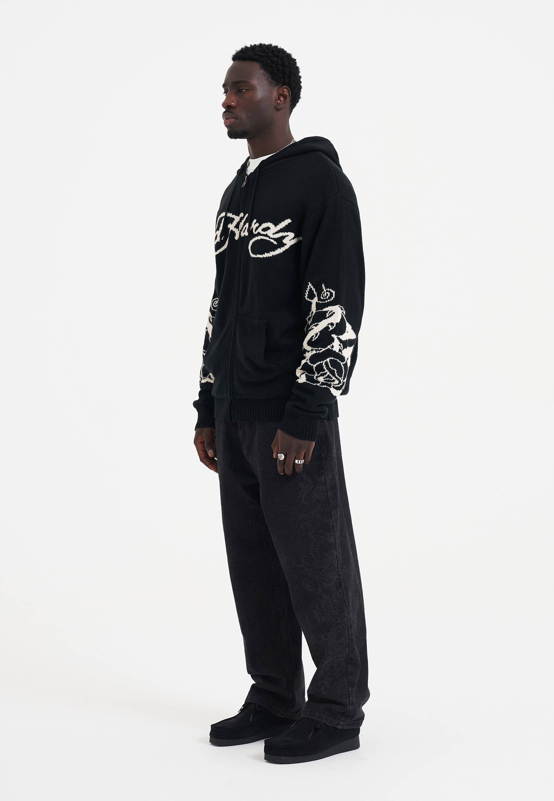 Mens Knitted Love Kills Knitted Zip Thru Hoodie - Black