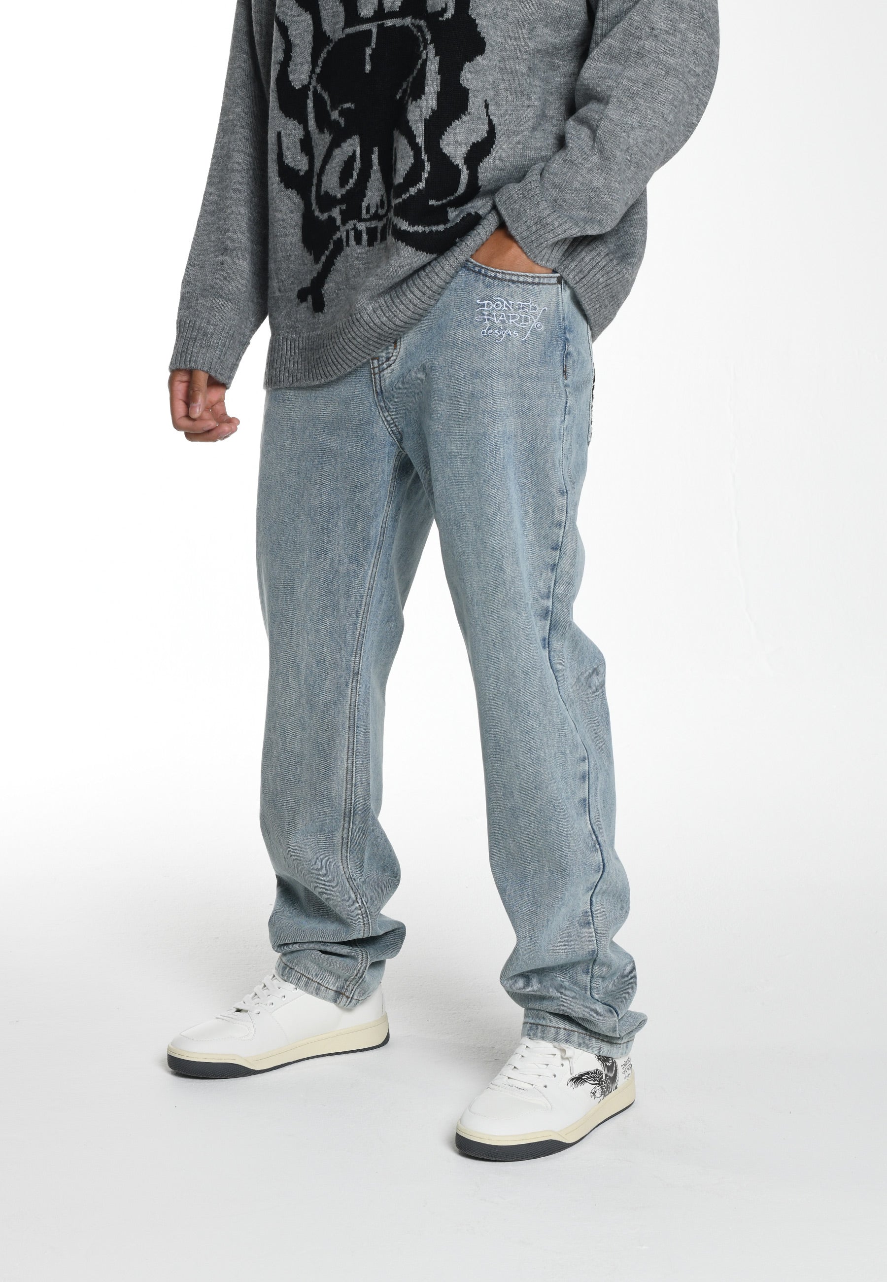 Featuring striking full-colour embroidered pockets and the Ed Hardy signature logo across the belt line. Made from 100% Bleach-Wash Cotton Denim.