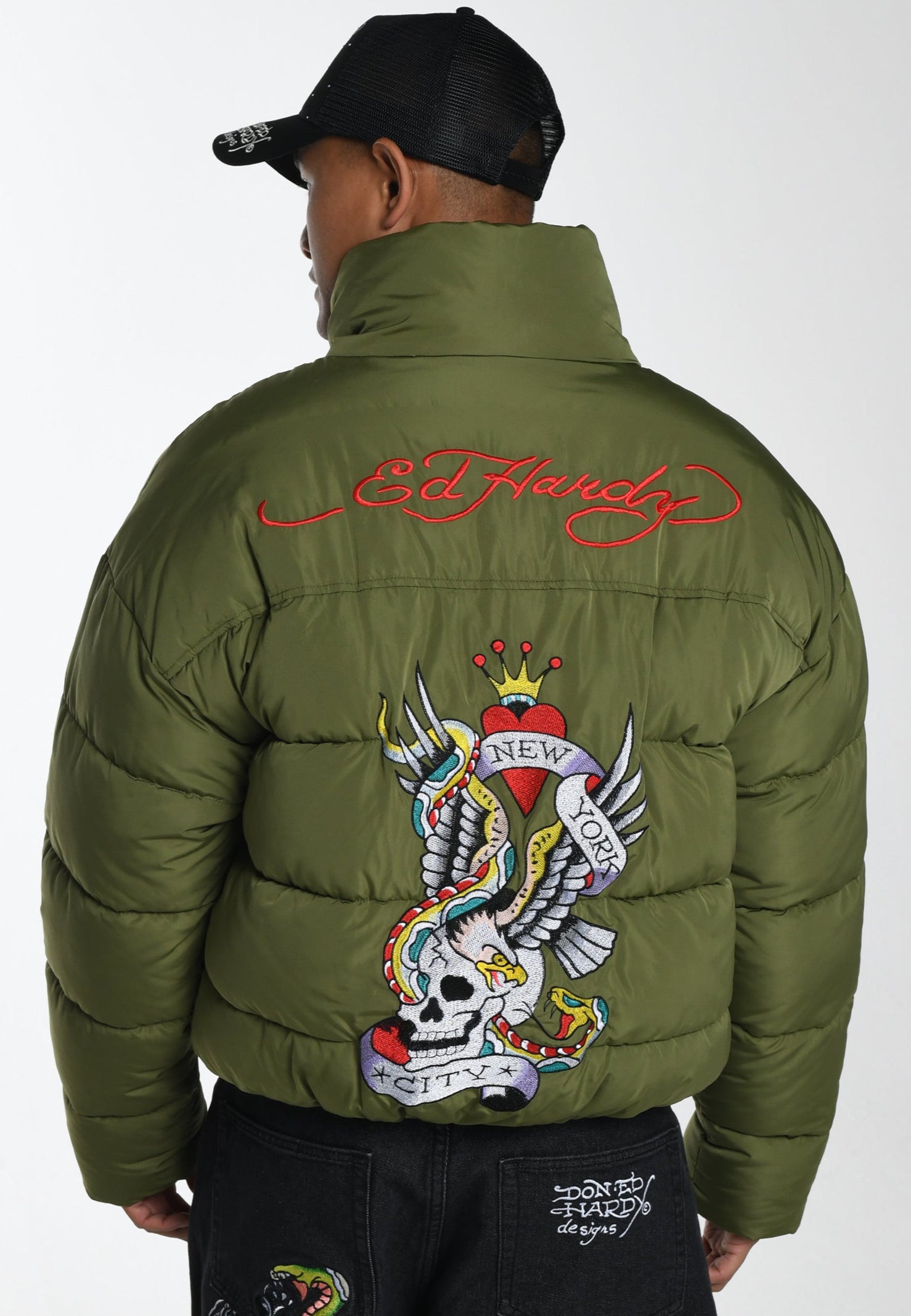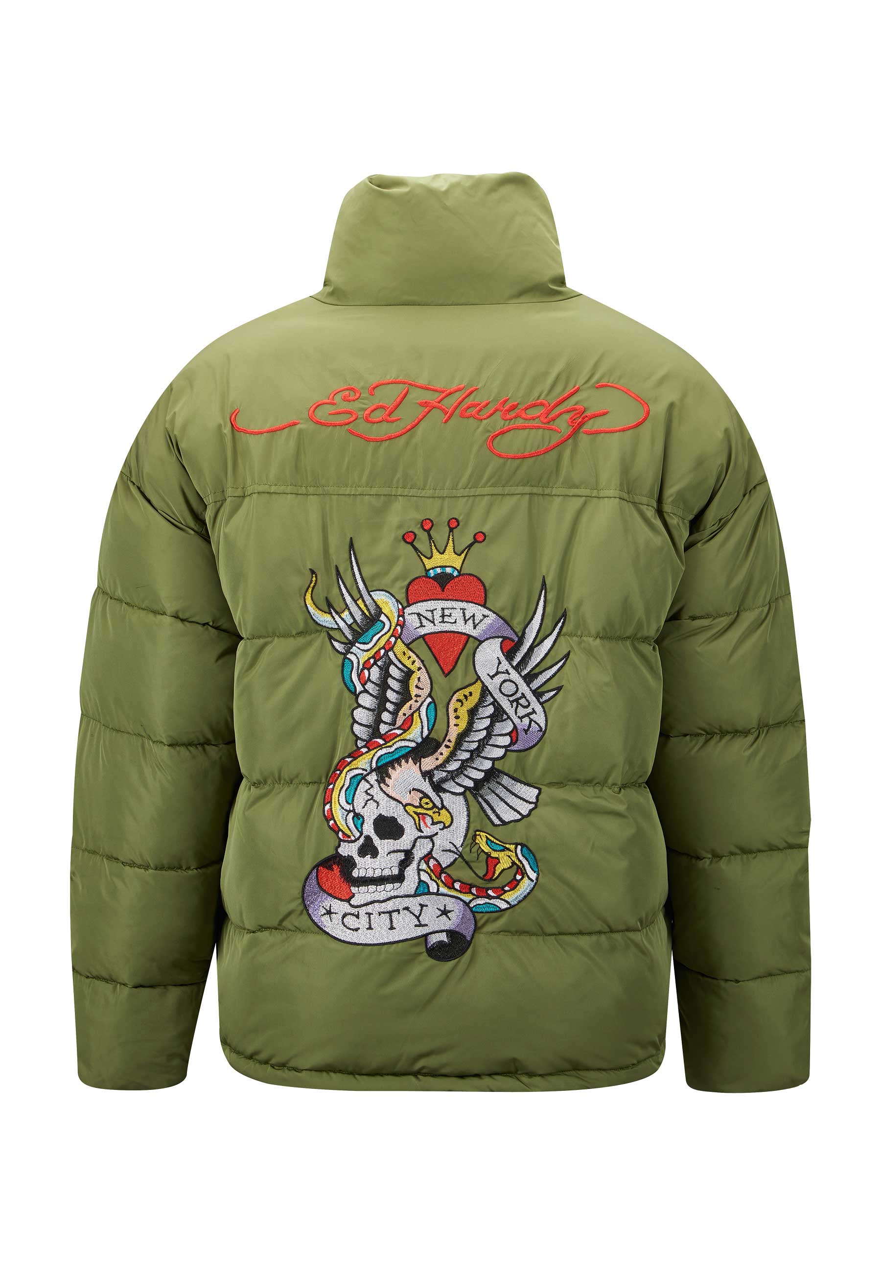 Mens Lks-Nyc-Skull Puffer Jacket - Green