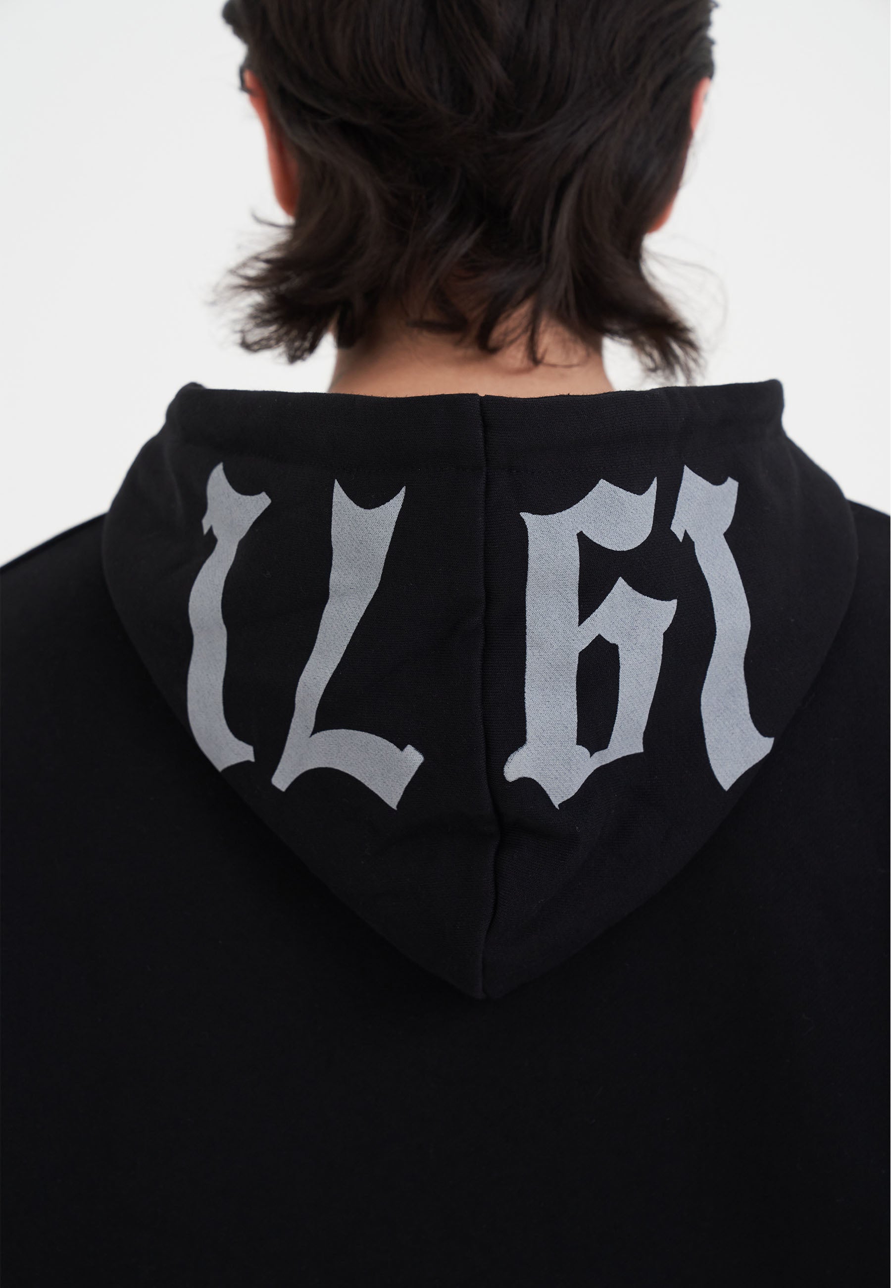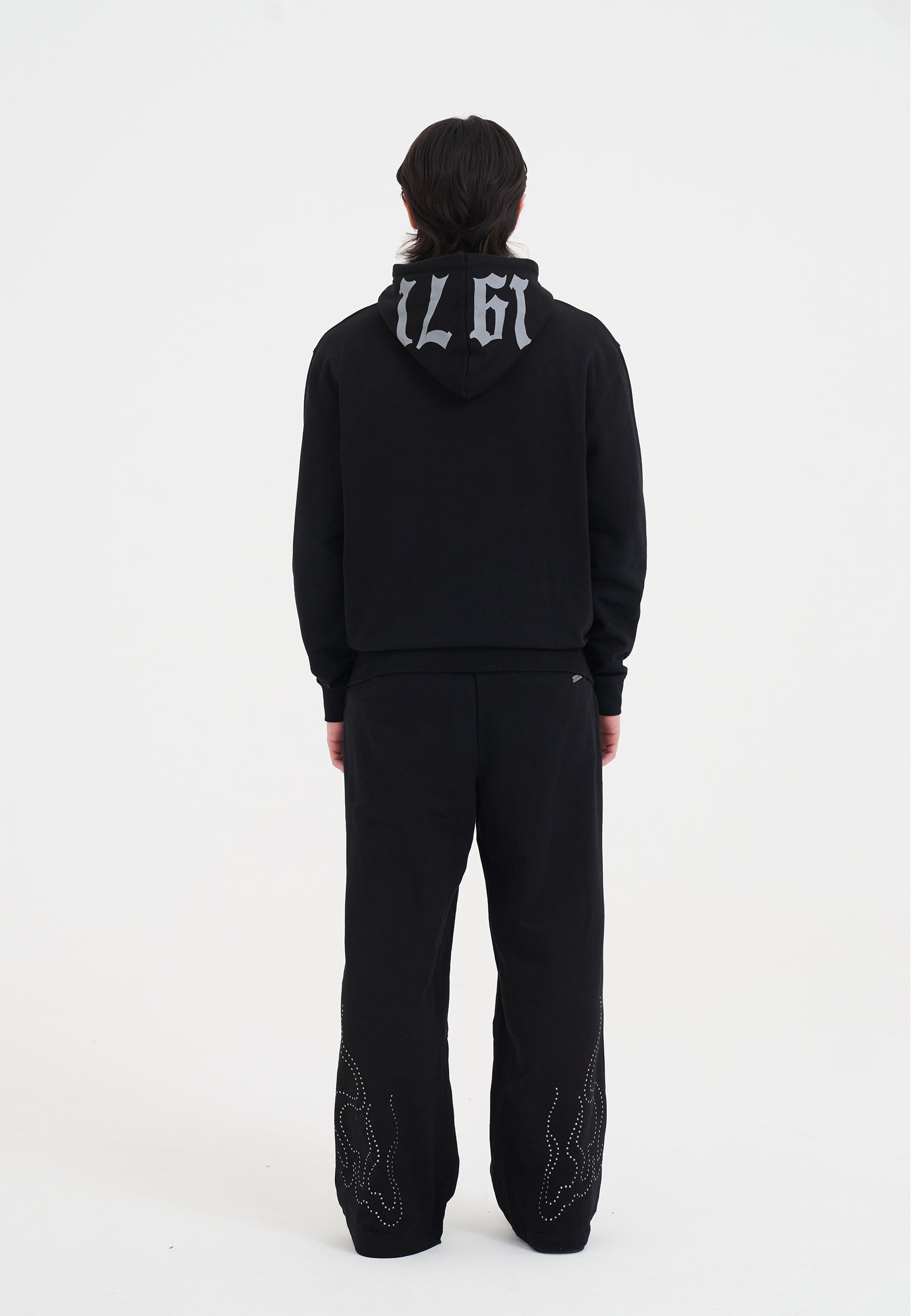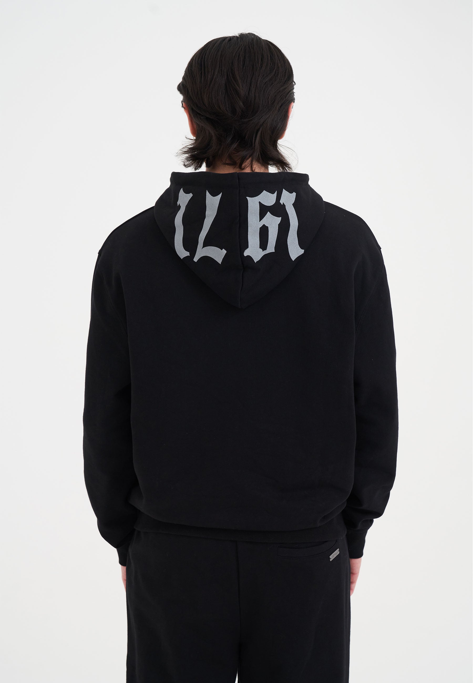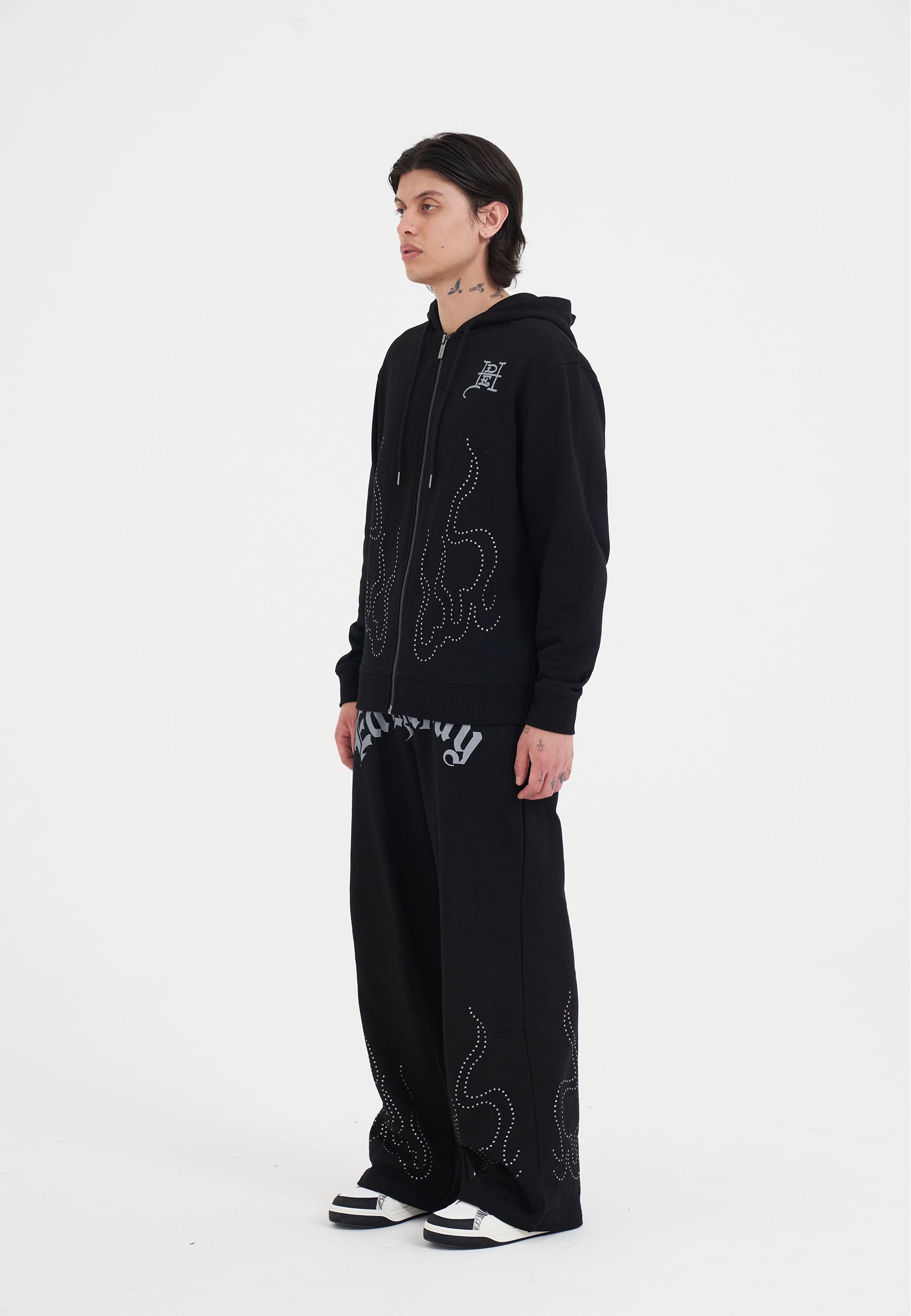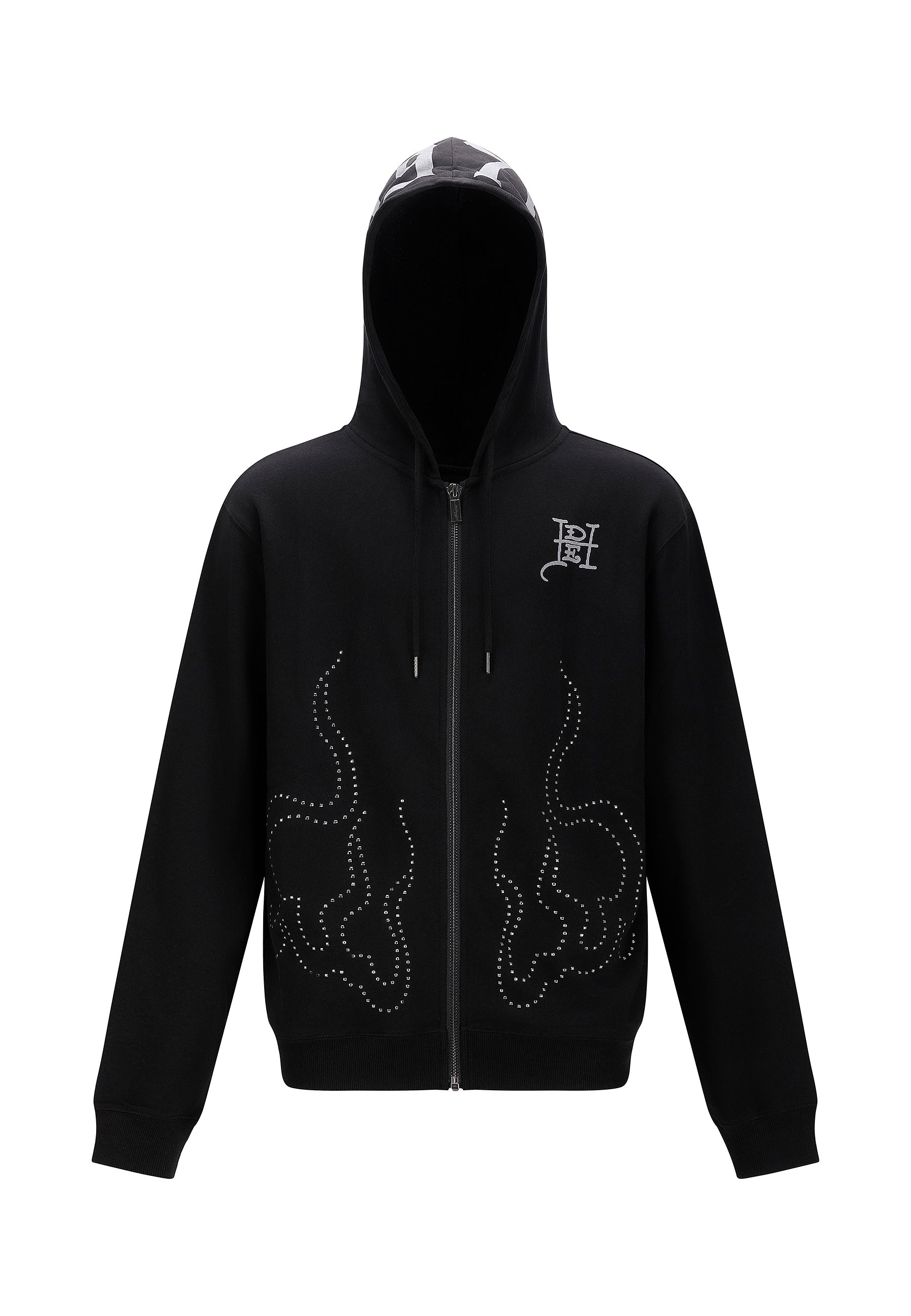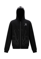 MENS METAL STUD DETAIL ZIP THRU HOODIE in Black