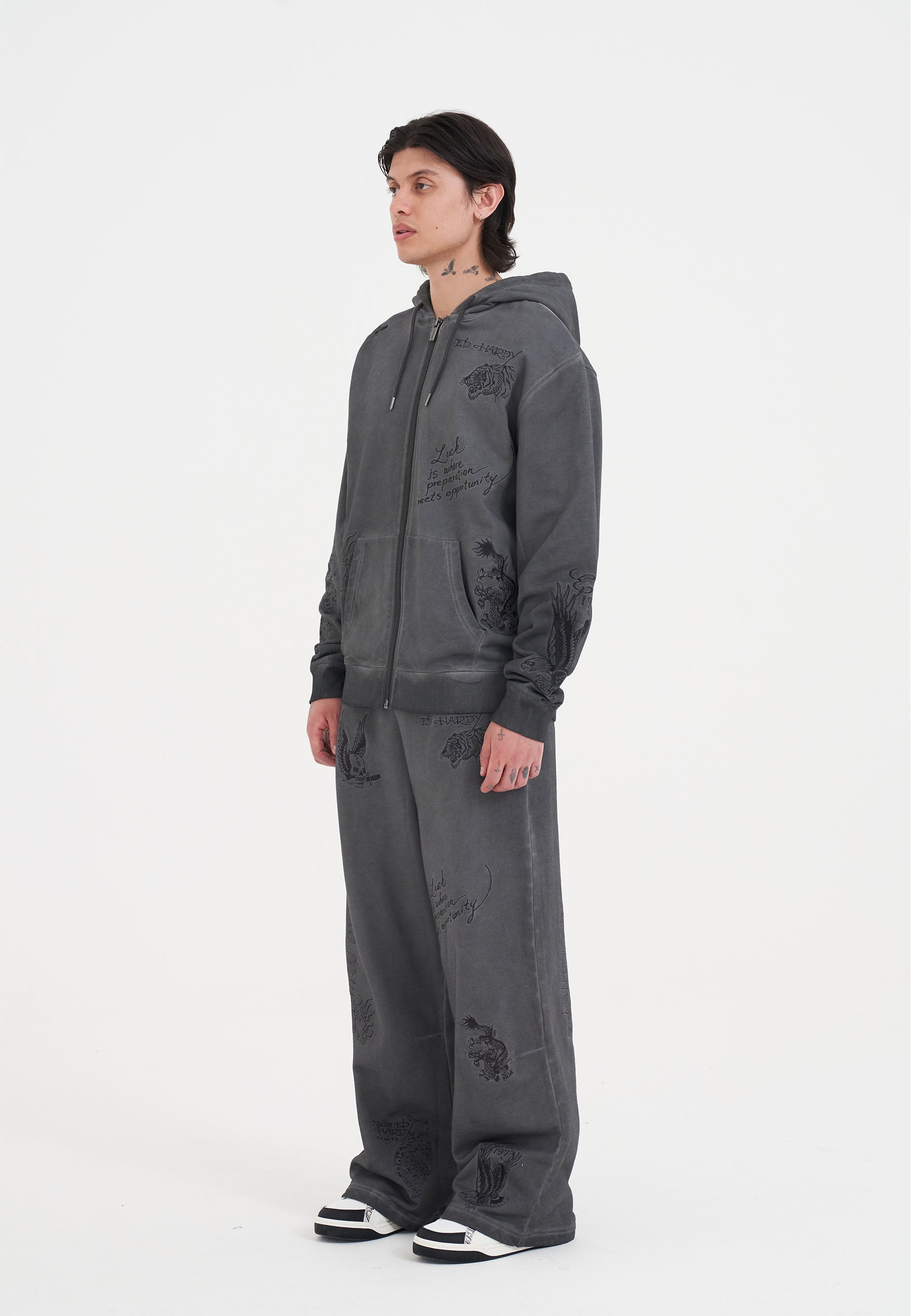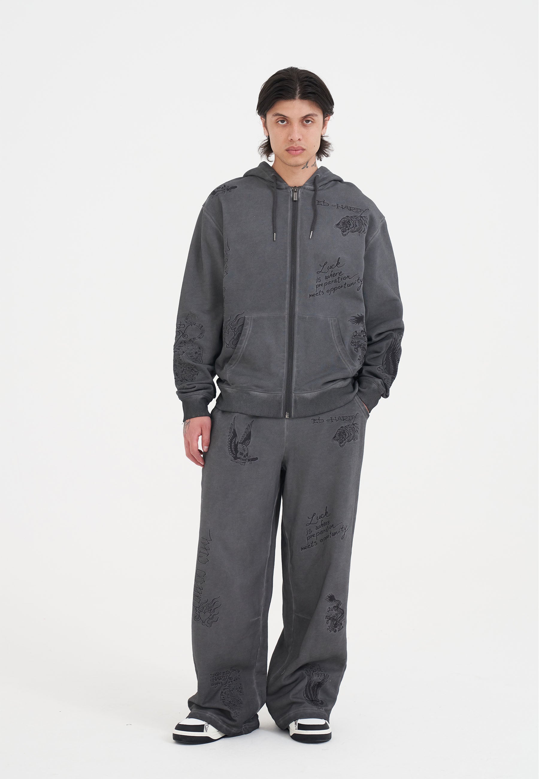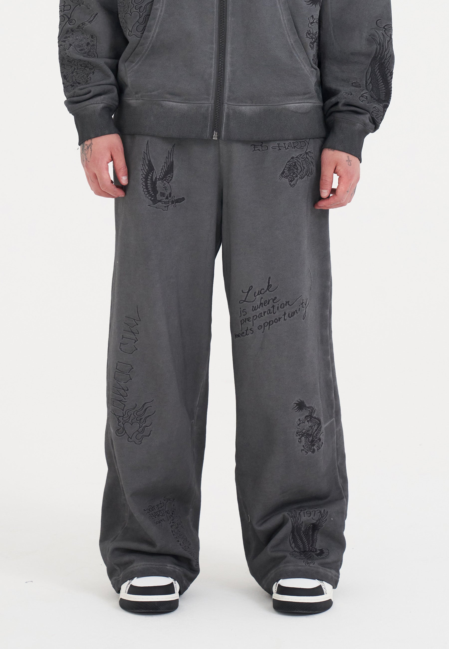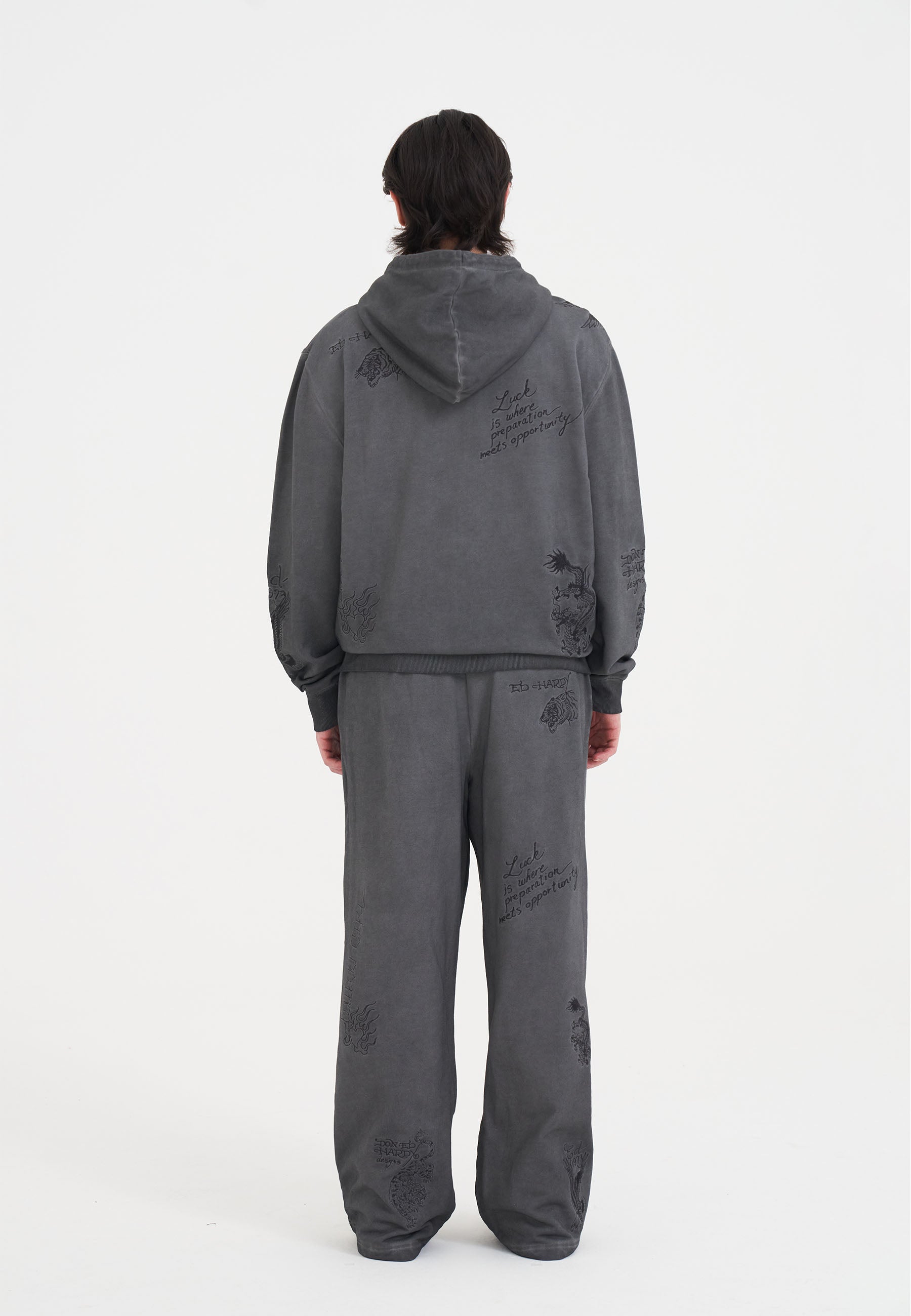Mens Multiple Graphic Distress Joggers Pants - Grey