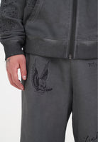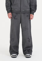 Mens Multiple Graphic Distress Joggers Pants in Grey