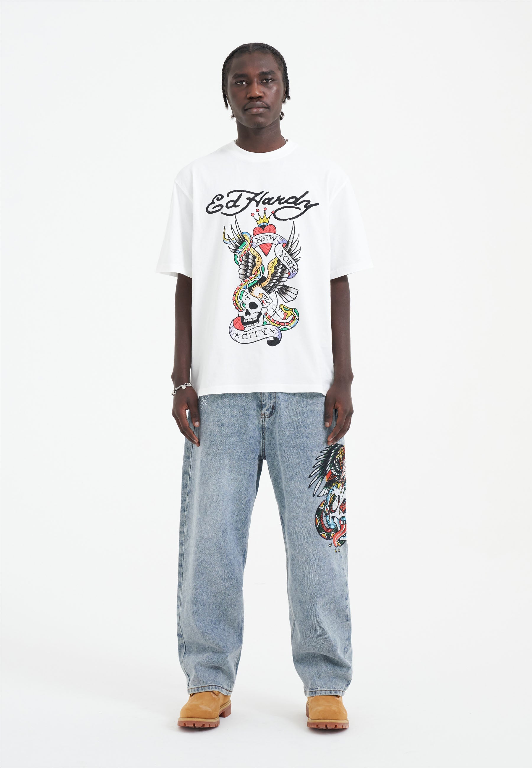 Life's a riot; express yourself in style. Ed's artwork takes centre-stage in a bold full-colour diamante graphic that will never go un-noticed.