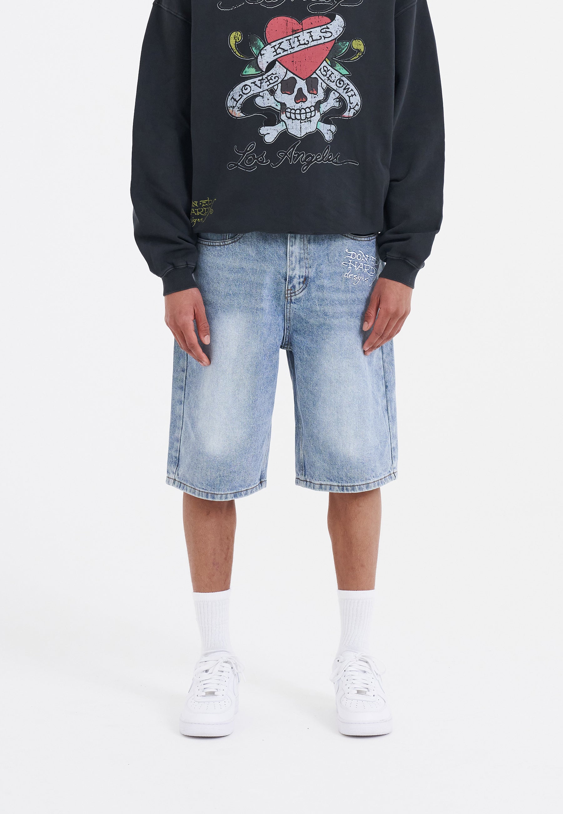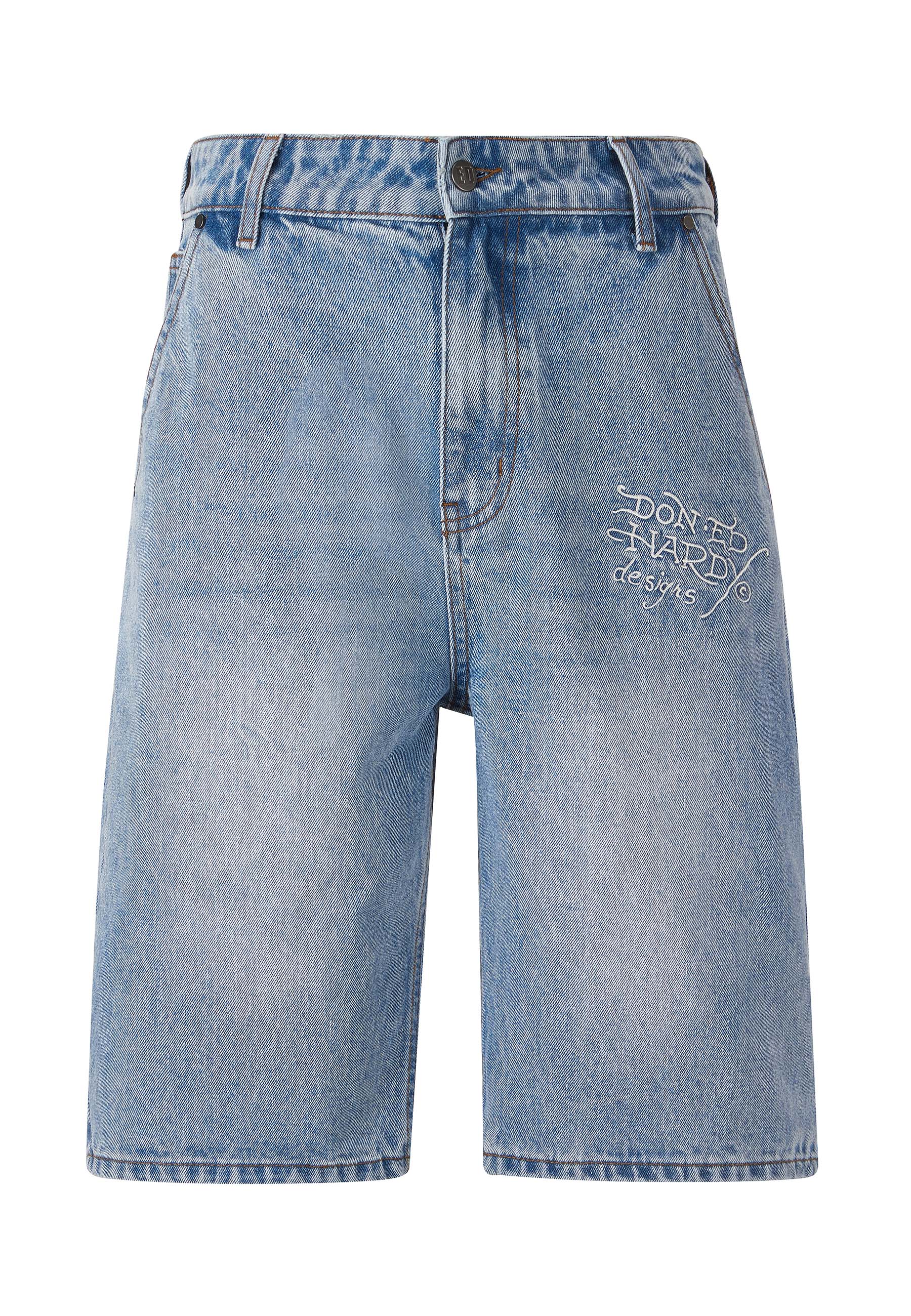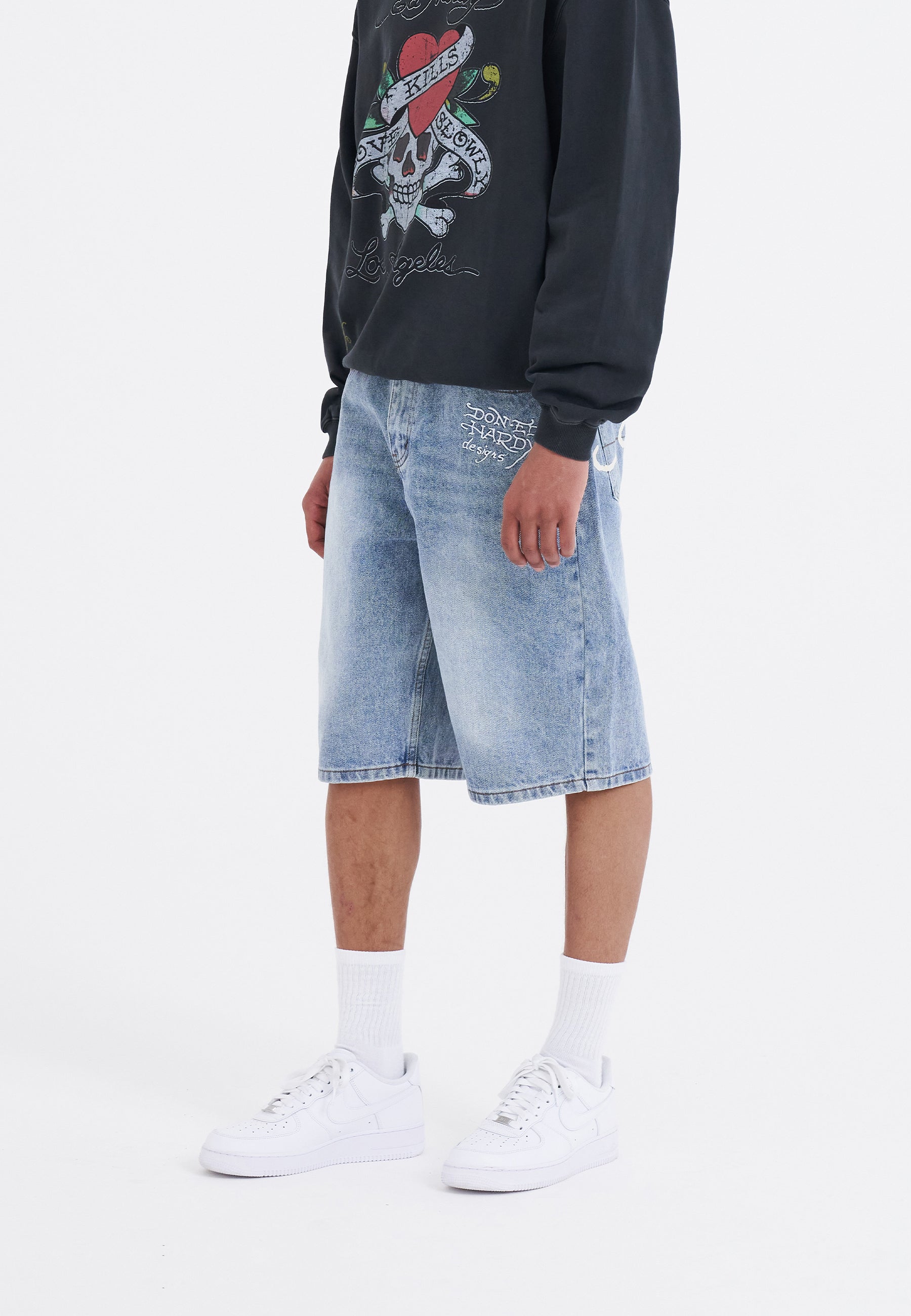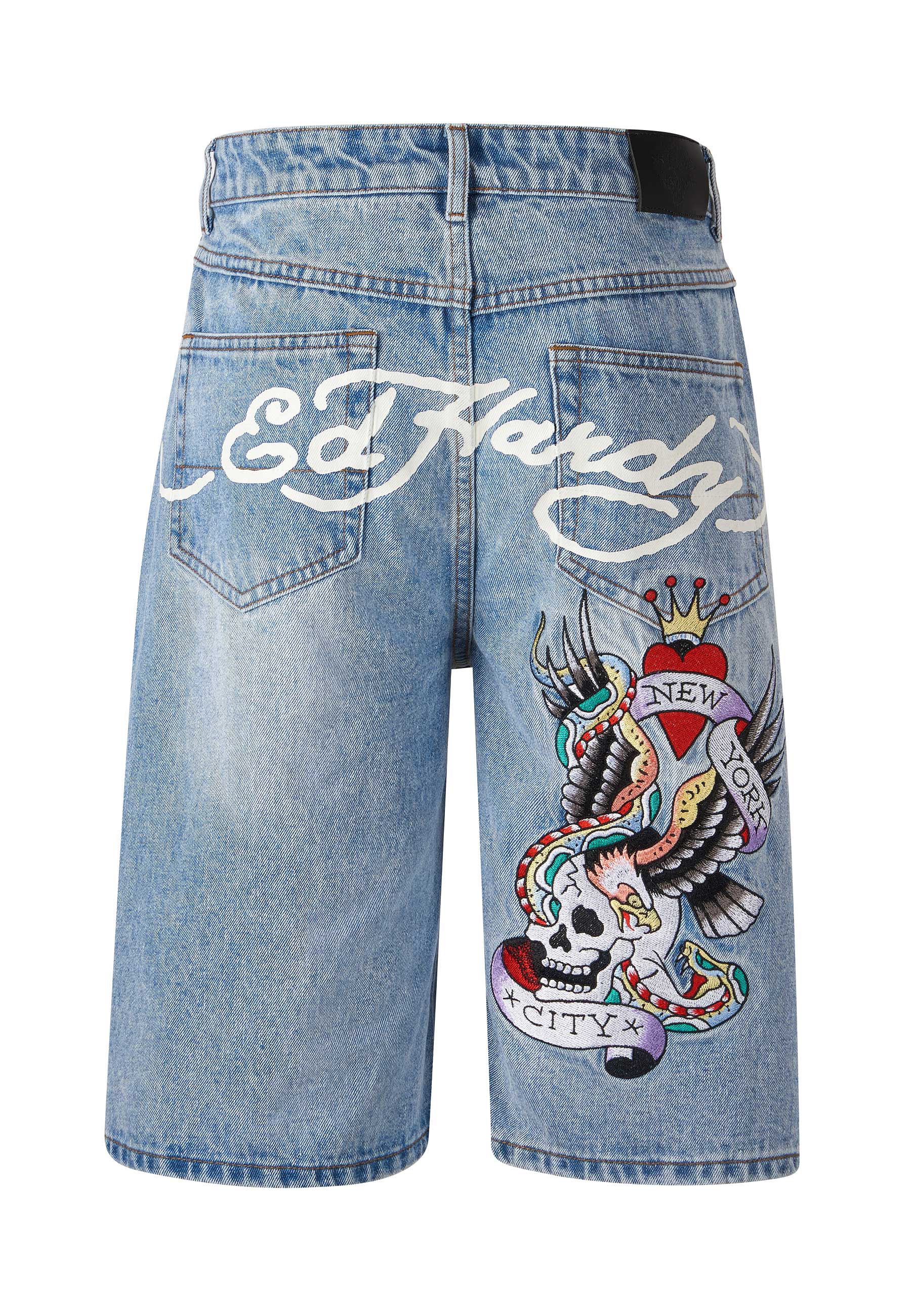 Mens Nyc Skull Denim Jorts Shorts - Bleach
