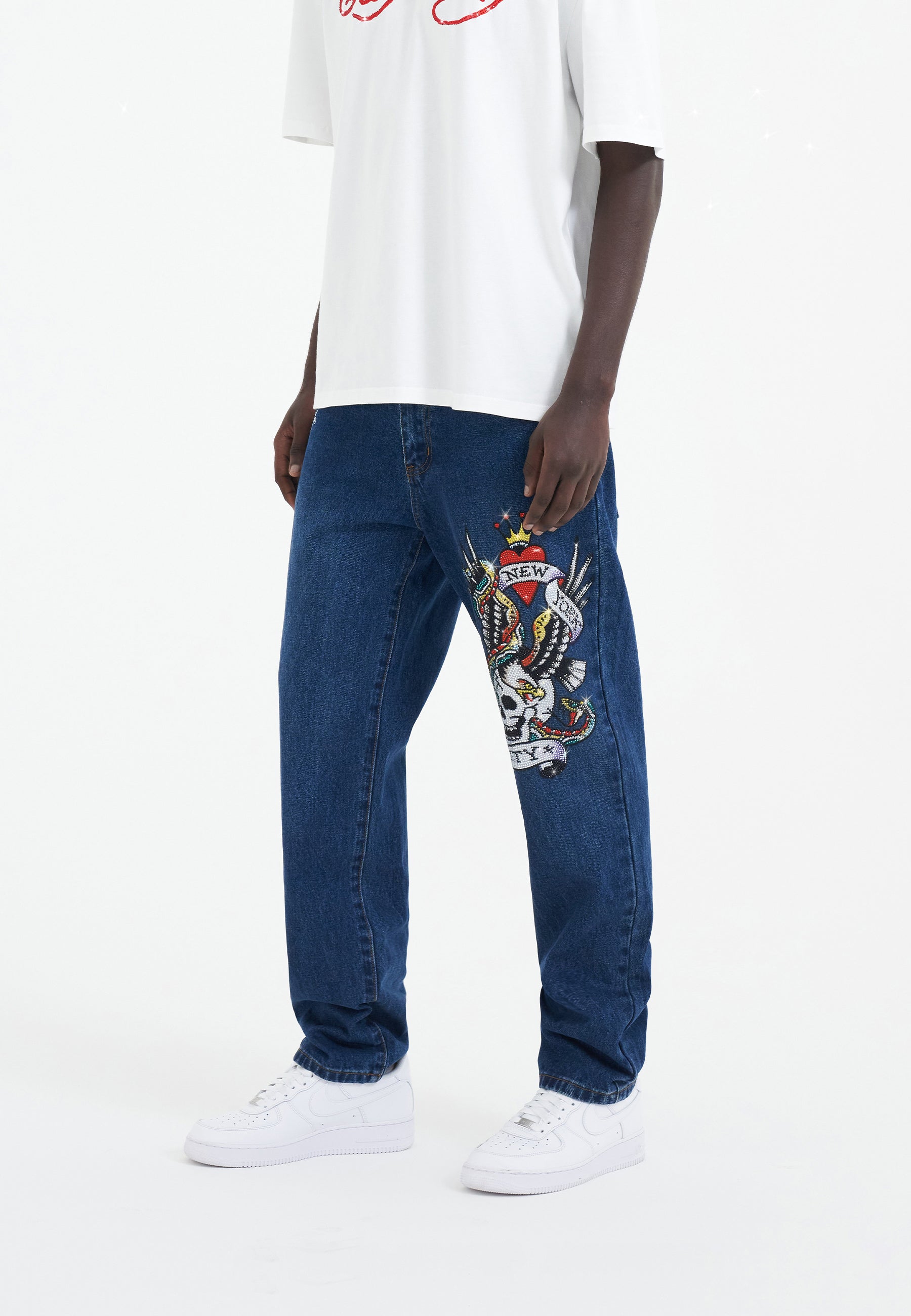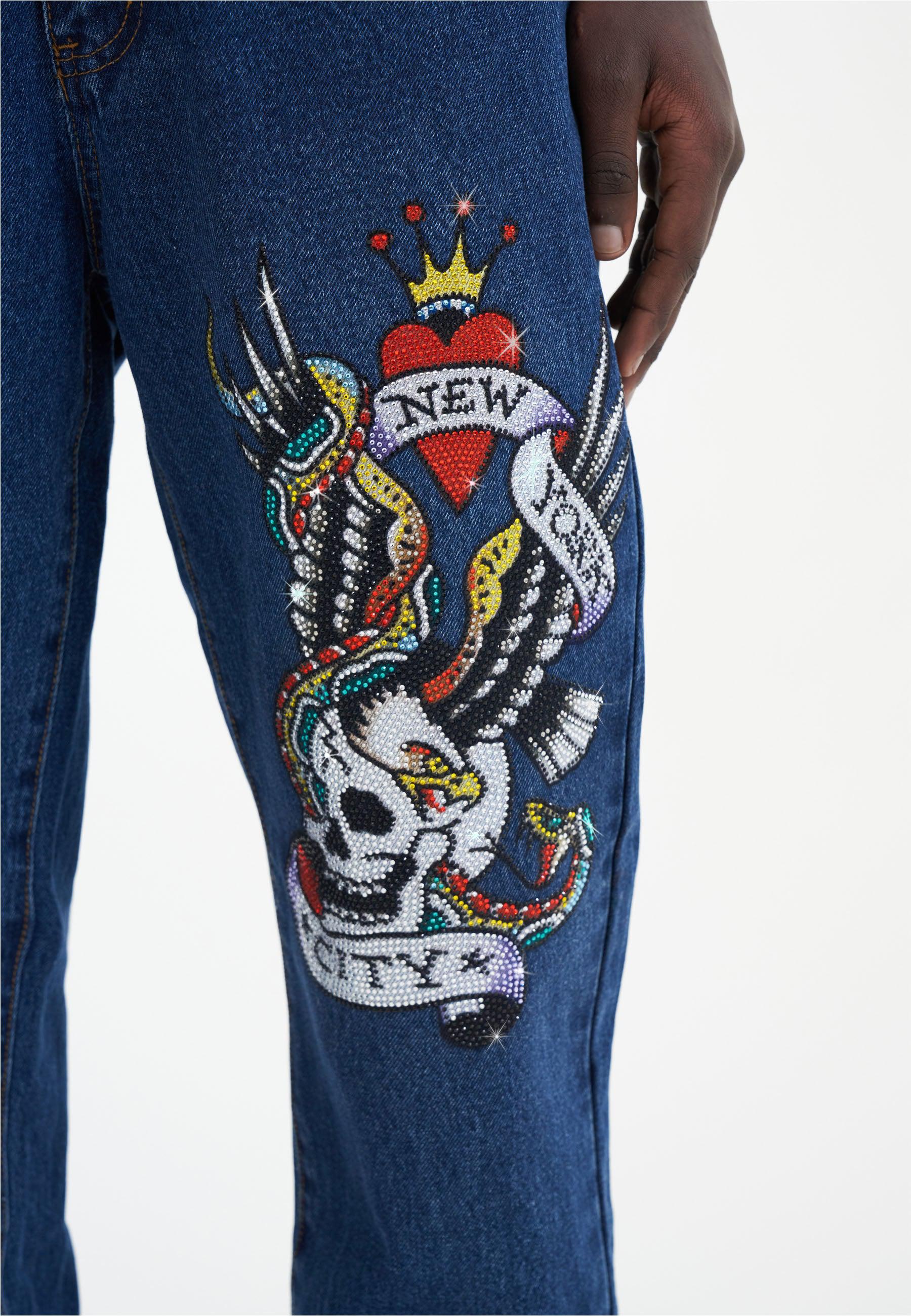 Mens Nyc-Skull Diamante Denim Trousers Jeans - Indigo