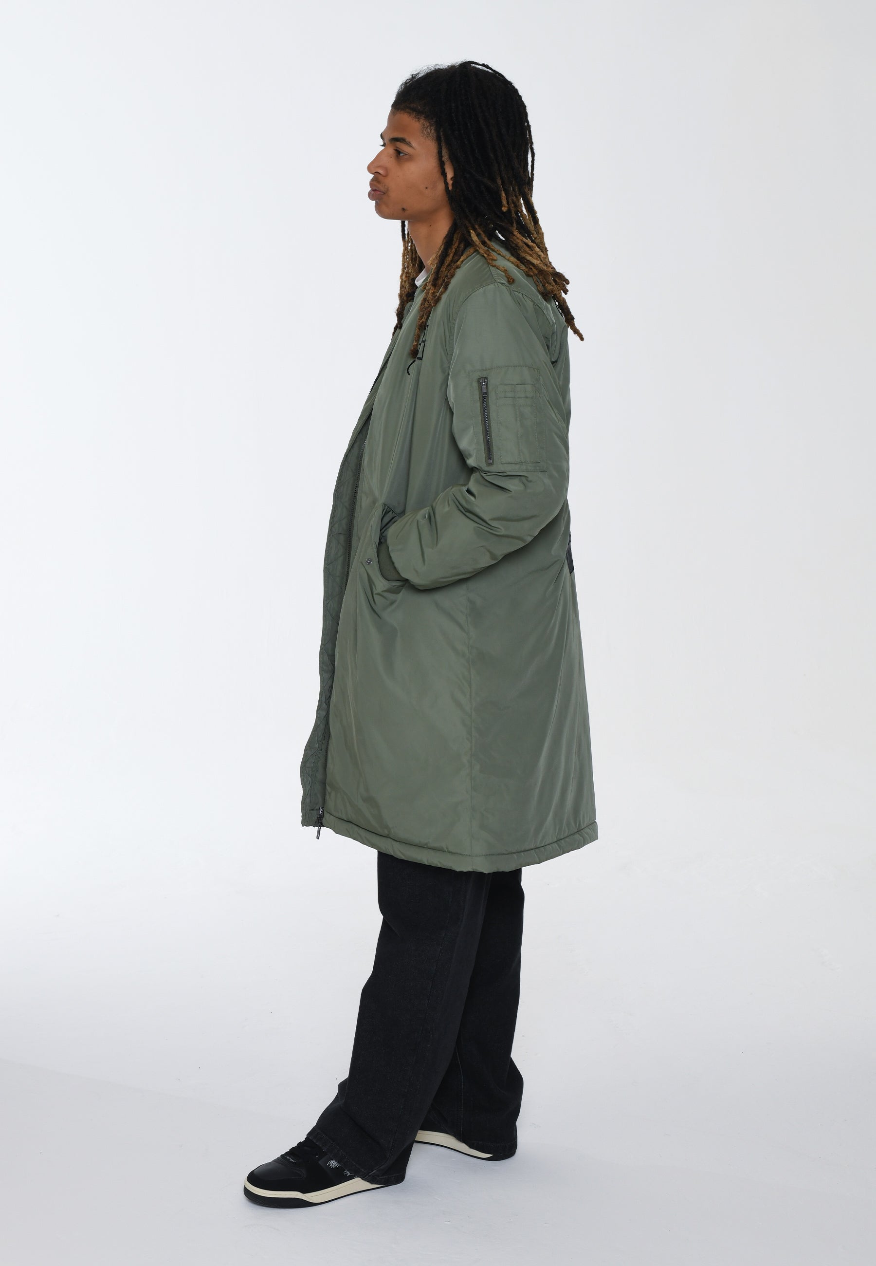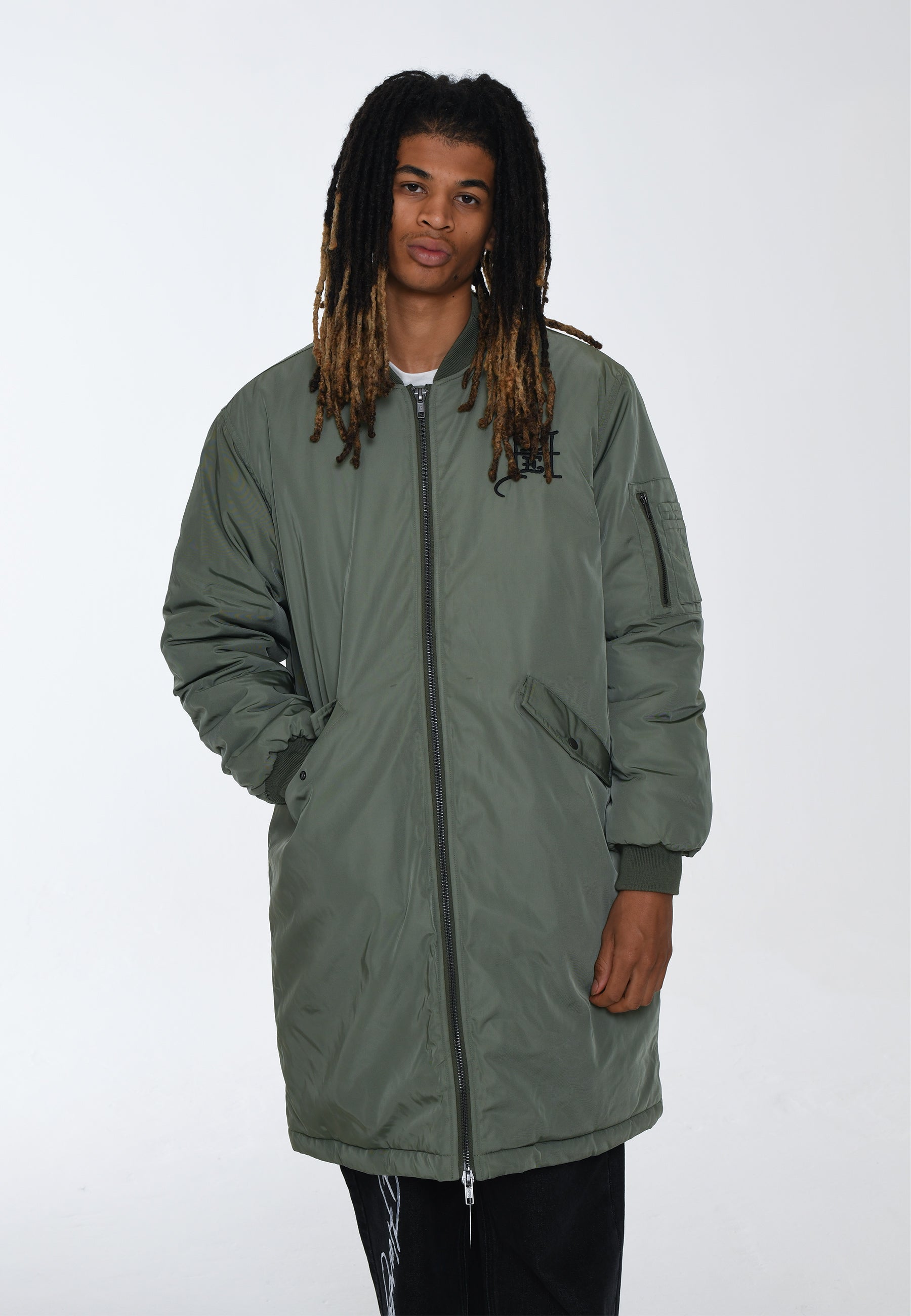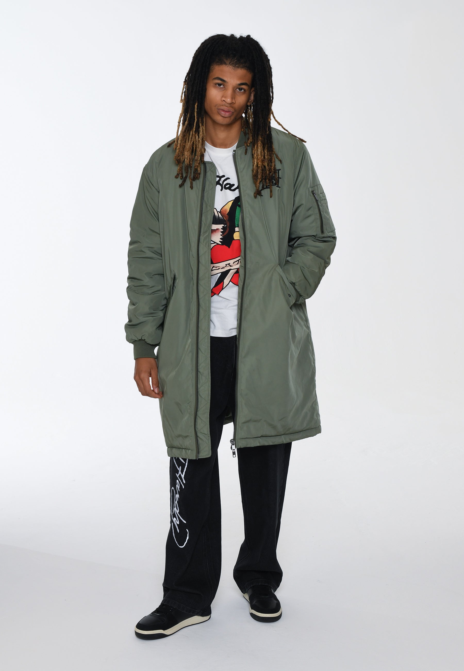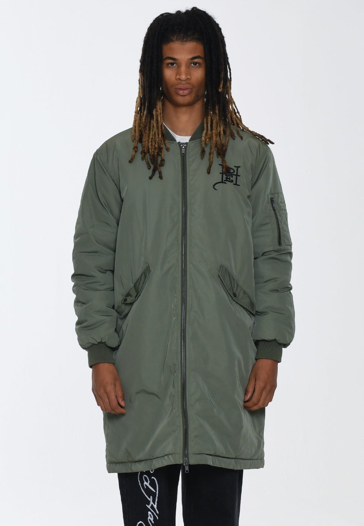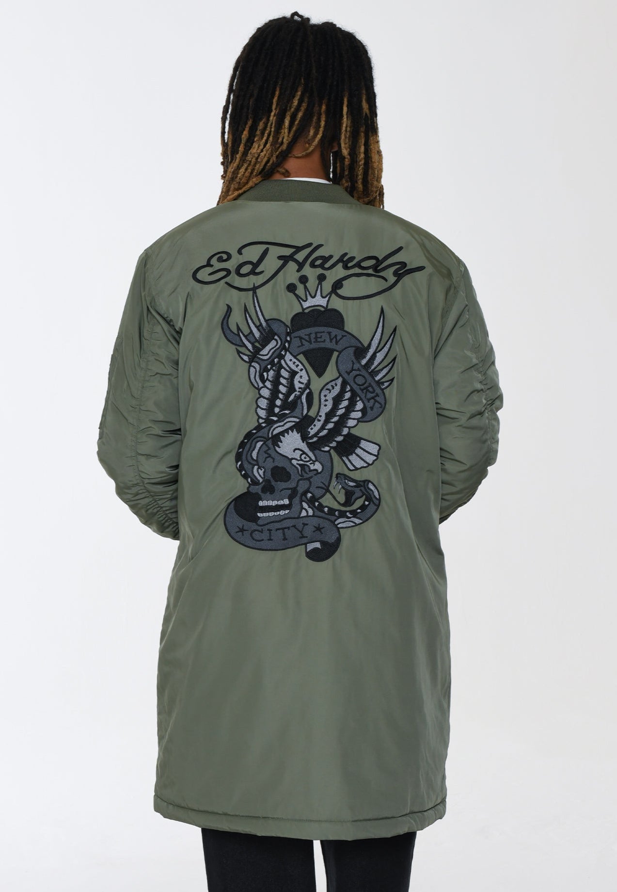 Mens Nyc Skull Longline Bomber Jacket - Khaki