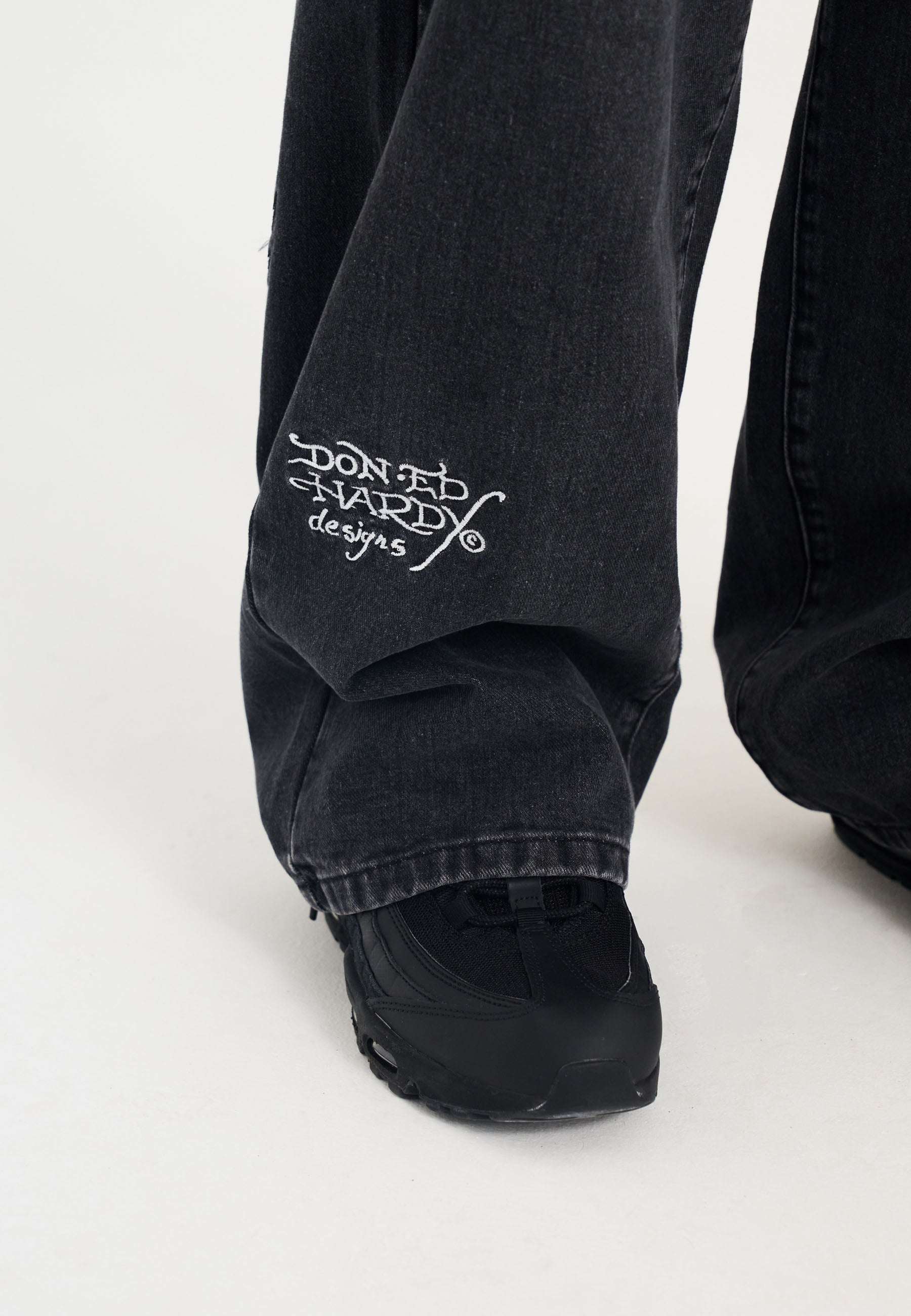 With an unapologetic extra, extra-wide silhouette, vintage wash, and vibrant full-colour embroidery, Ed's artwork returns for a new season.