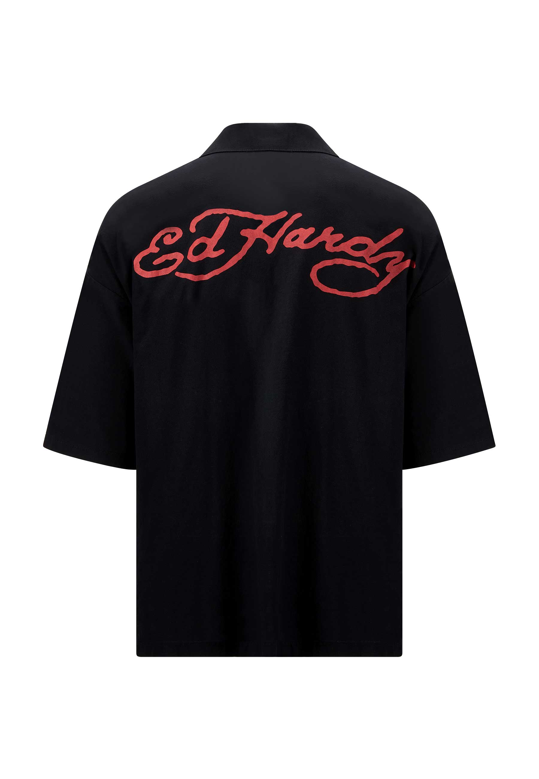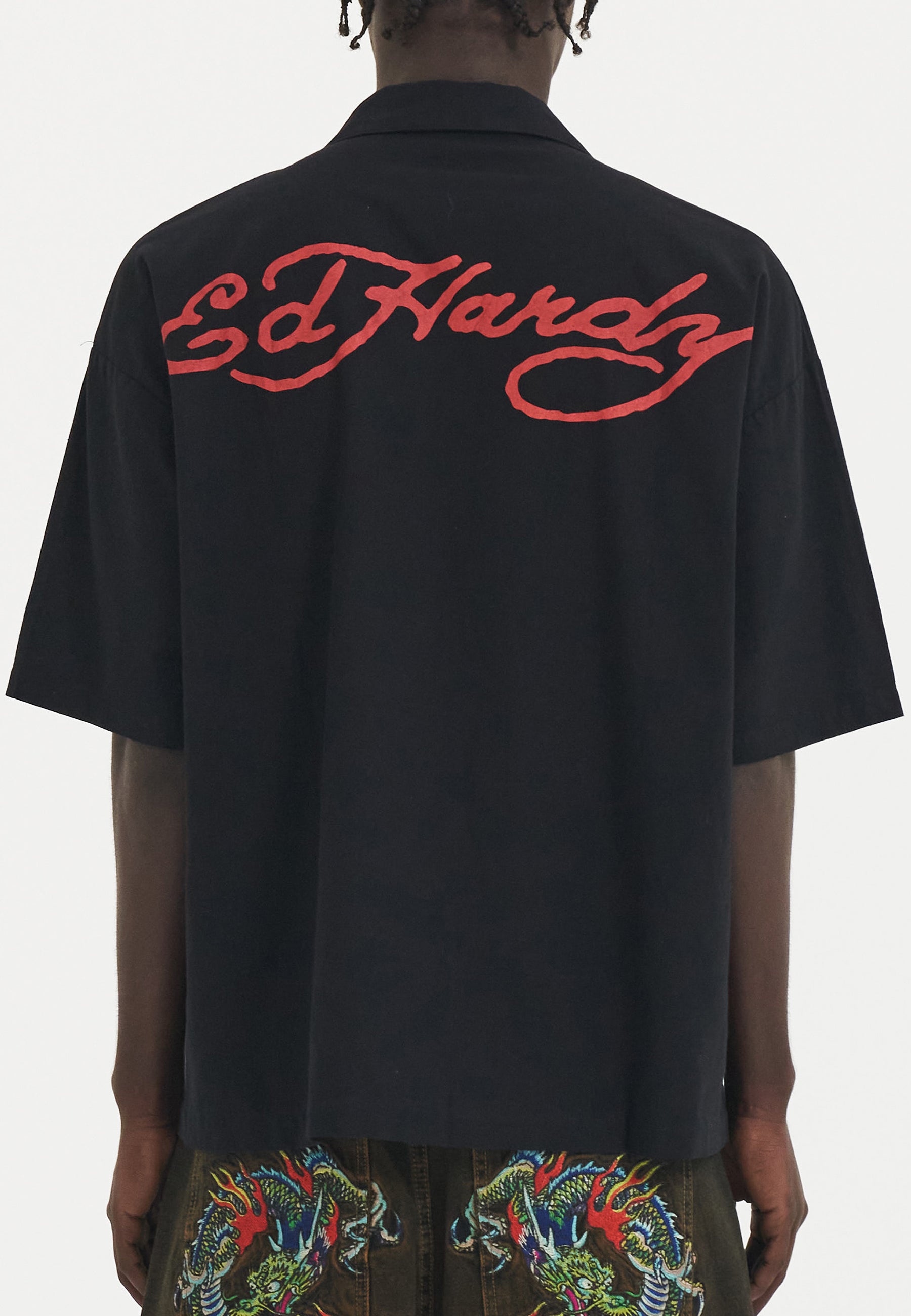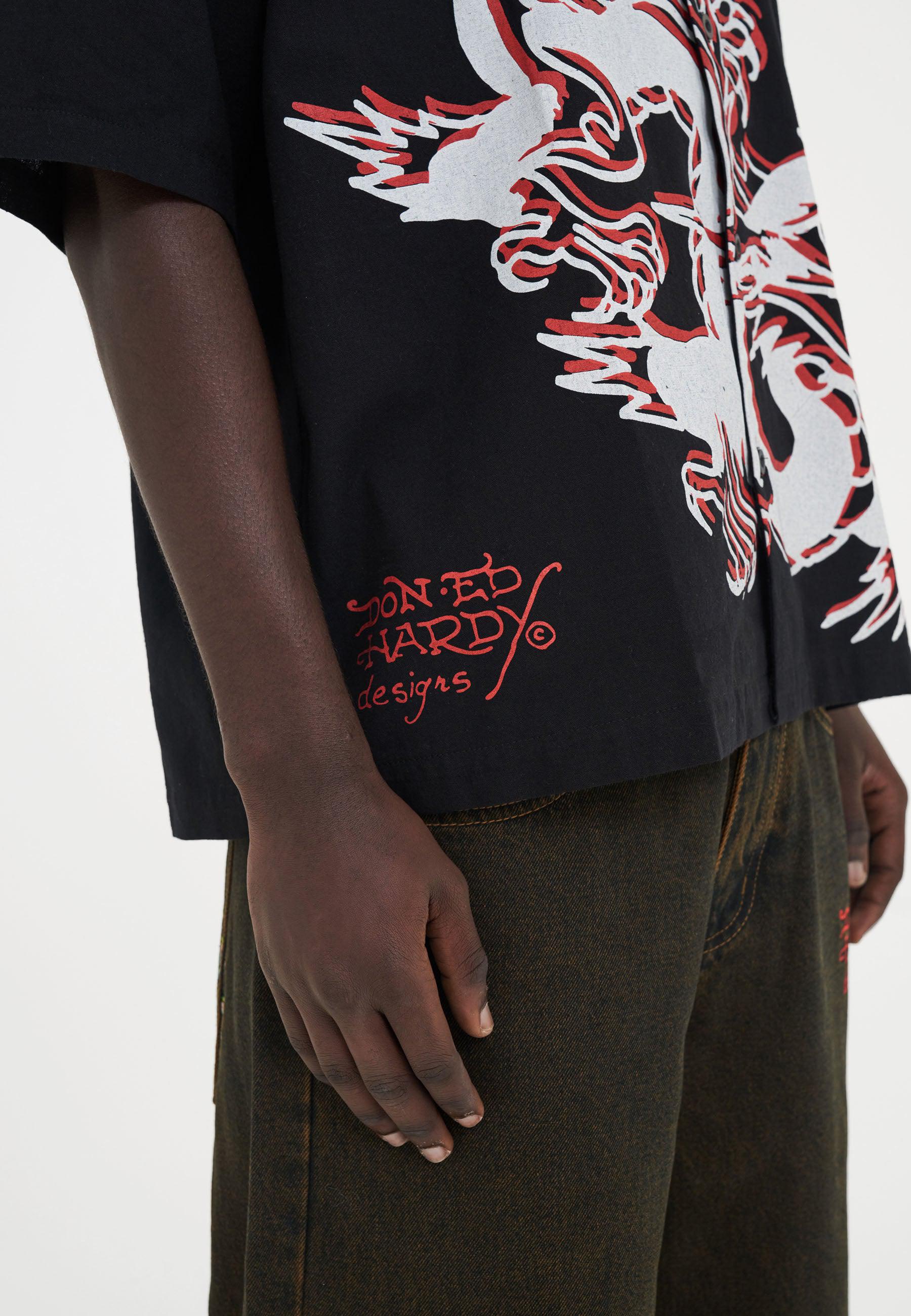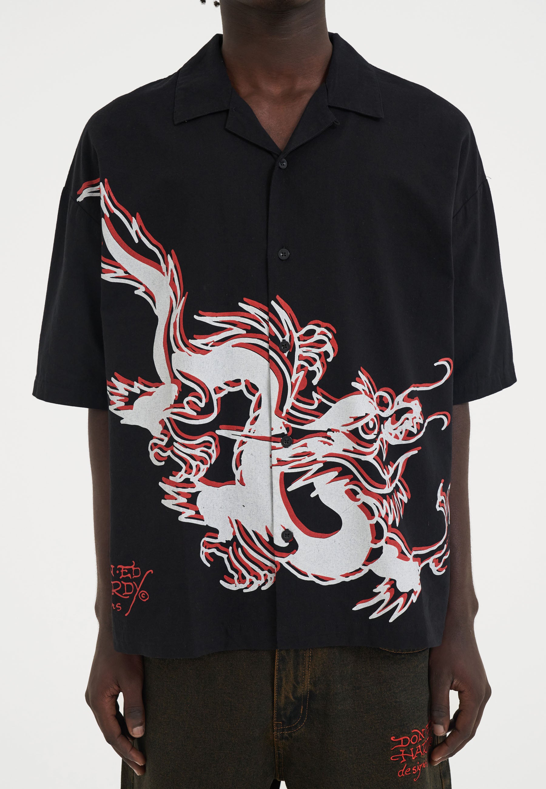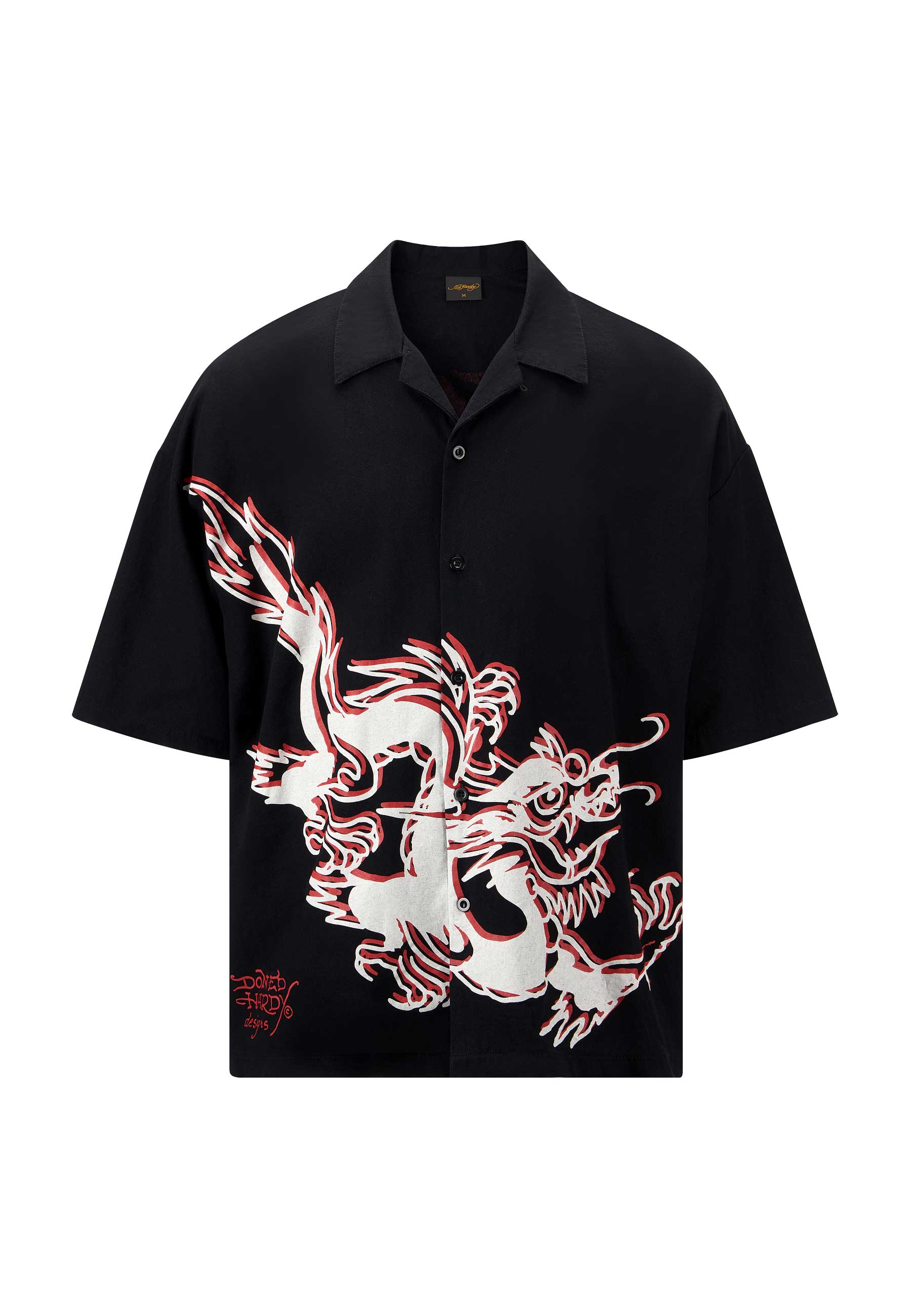 Mens Offset Dragon Camp Short Sleeve Shirt - Black