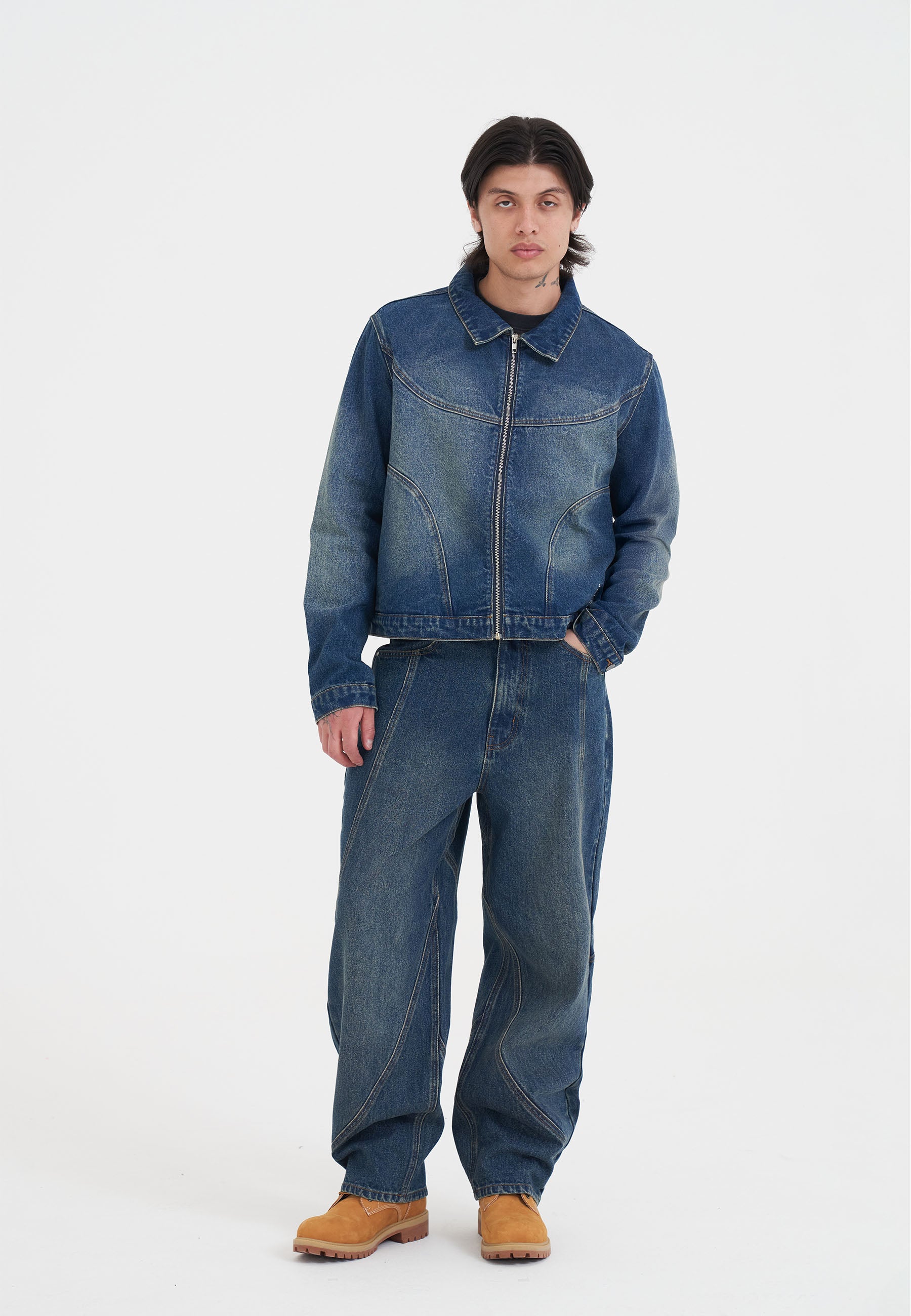 MENS RELAXED SEAM DETAIL JEANS in Indigo