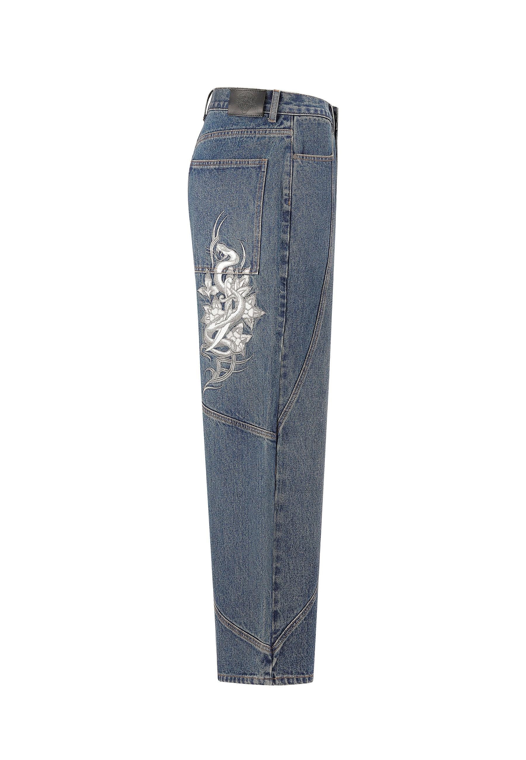 - TATTOO SNAKE EMBROIDERY AT BACK LEG
