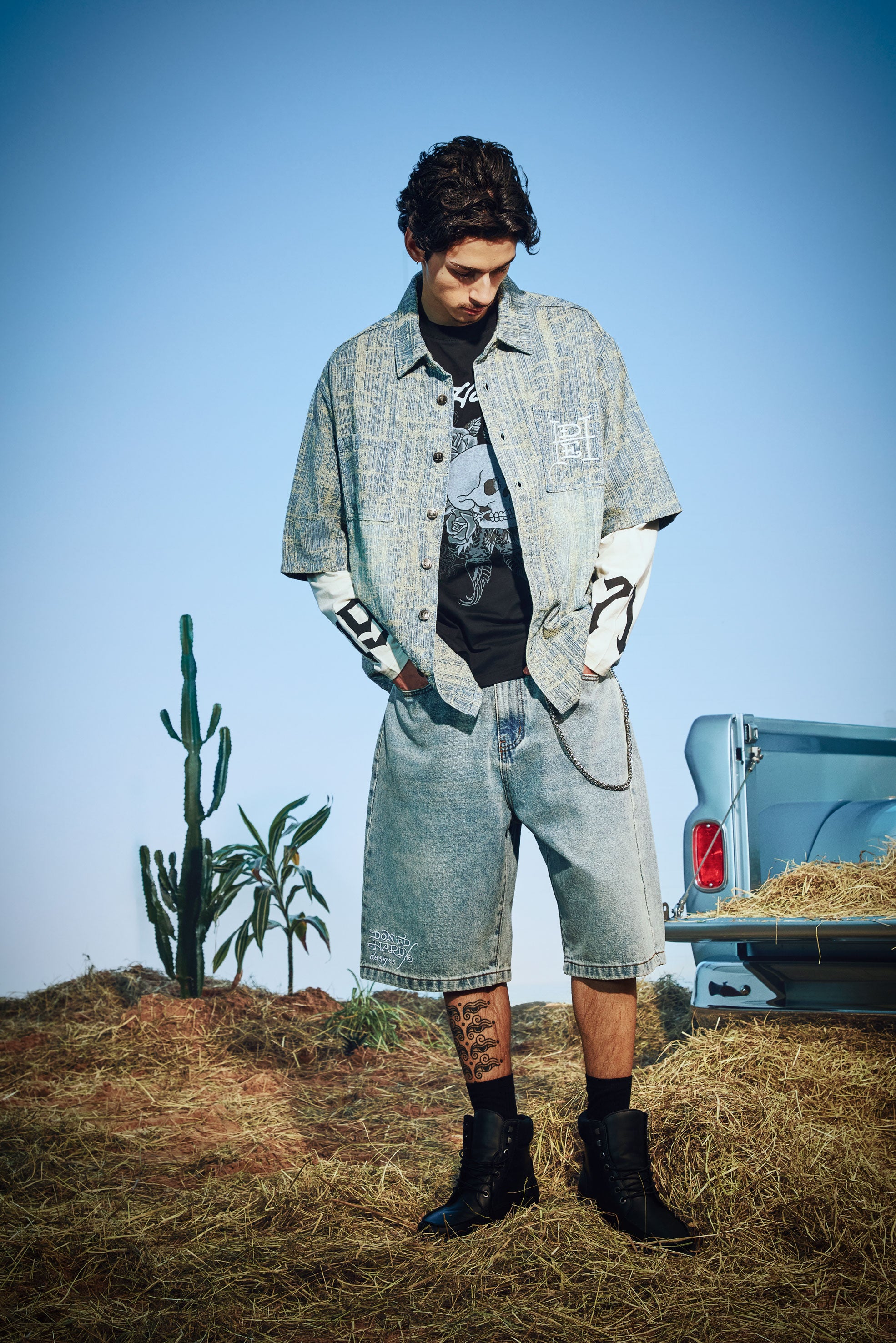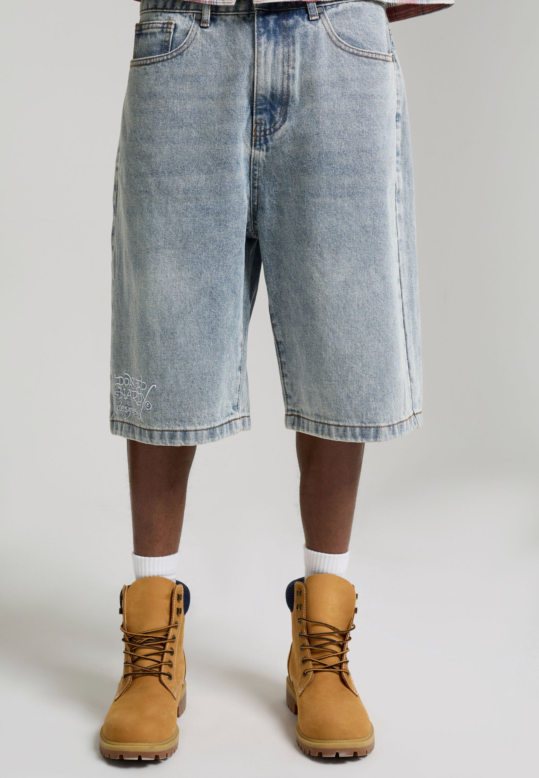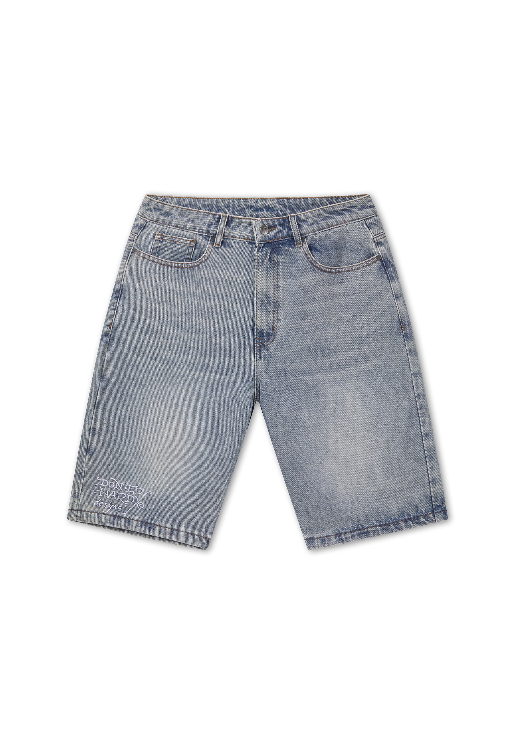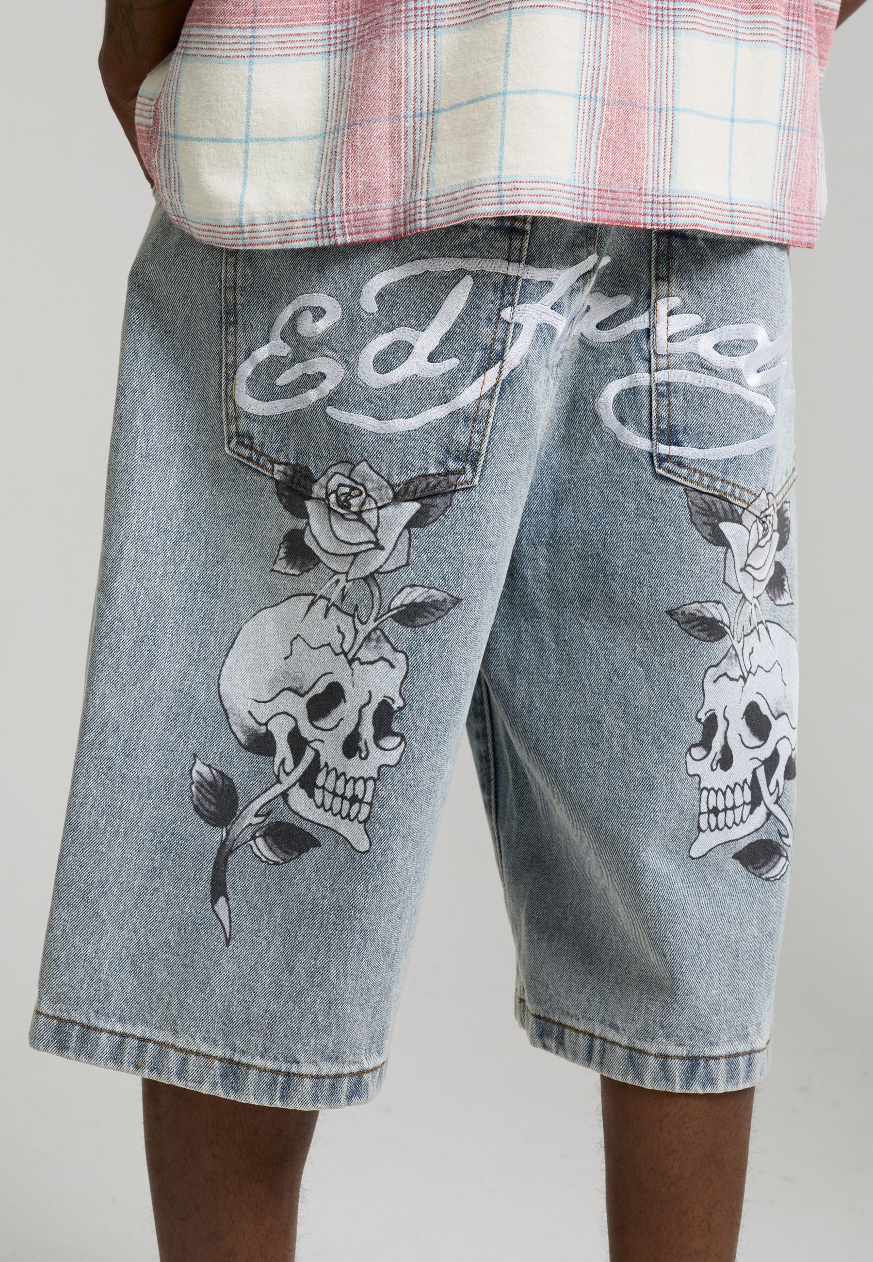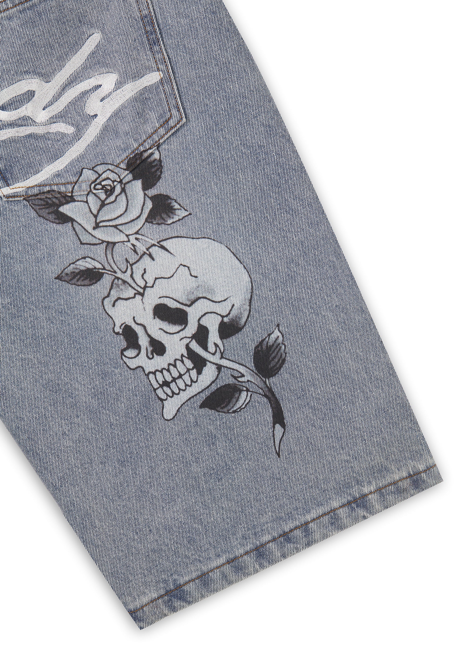 Mens Signature Skull Rose Relaxed Jort - Bleach