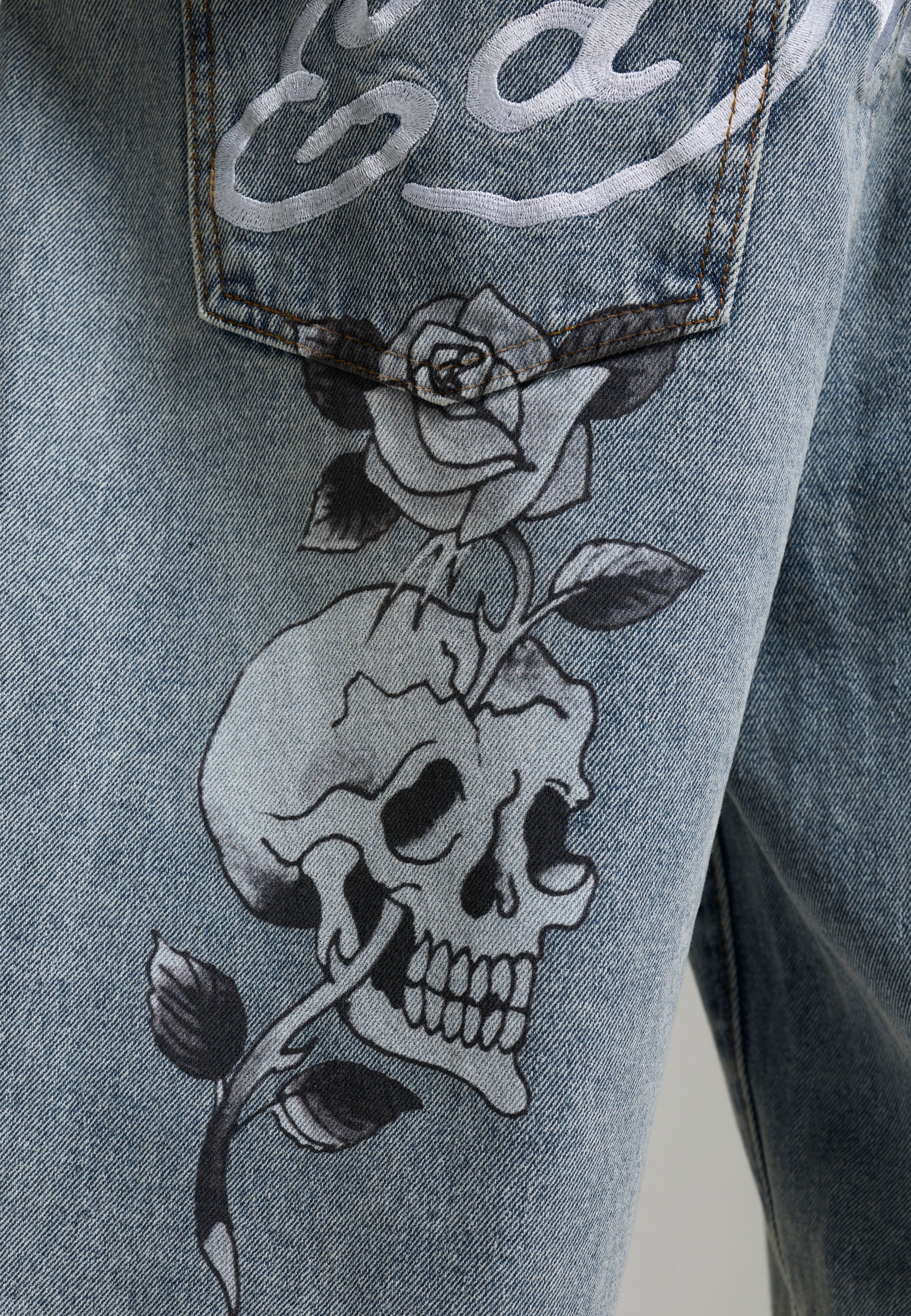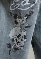100% COTTON RELAXED FIT ED HARDY EMBROIDERY SKULL ROSE GRAPHIC SOFTENER WASH
