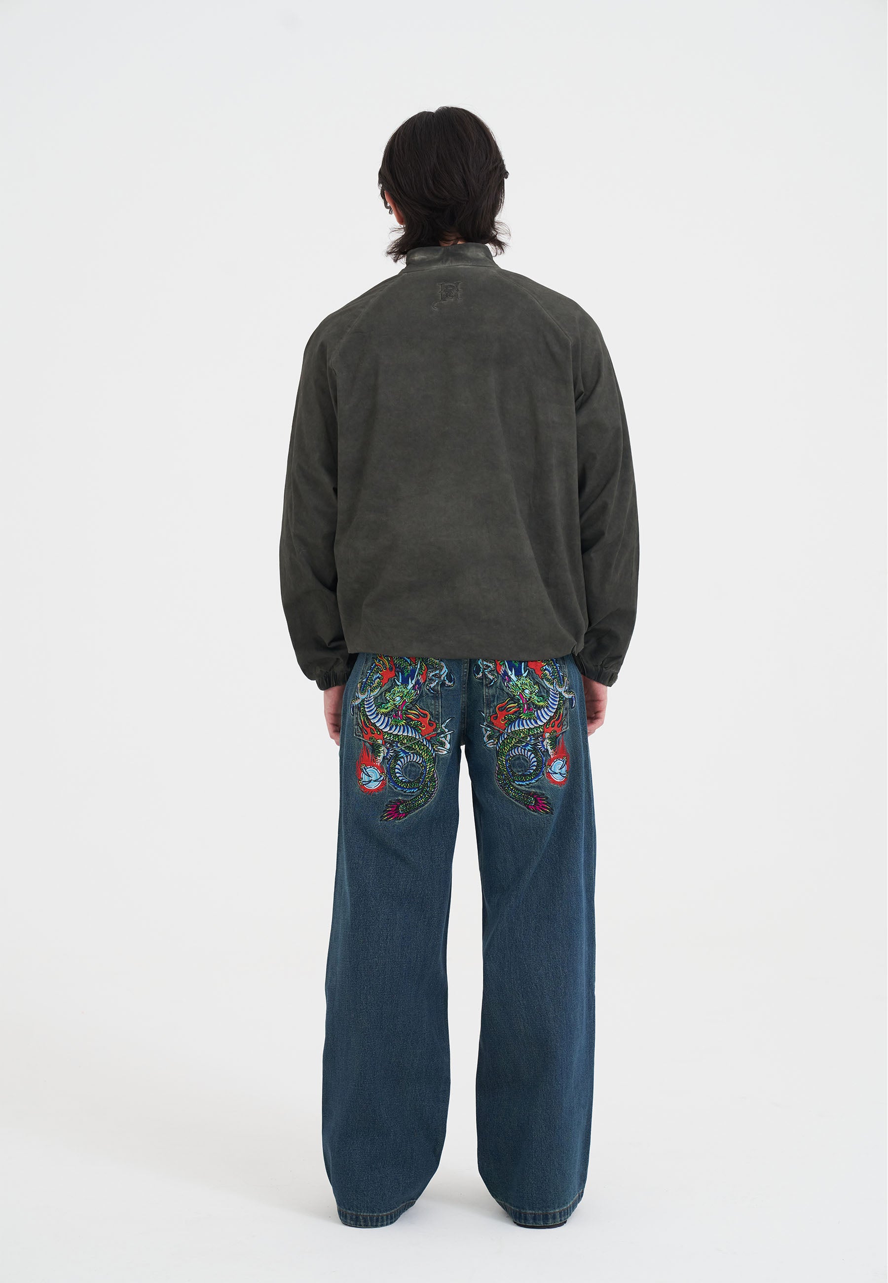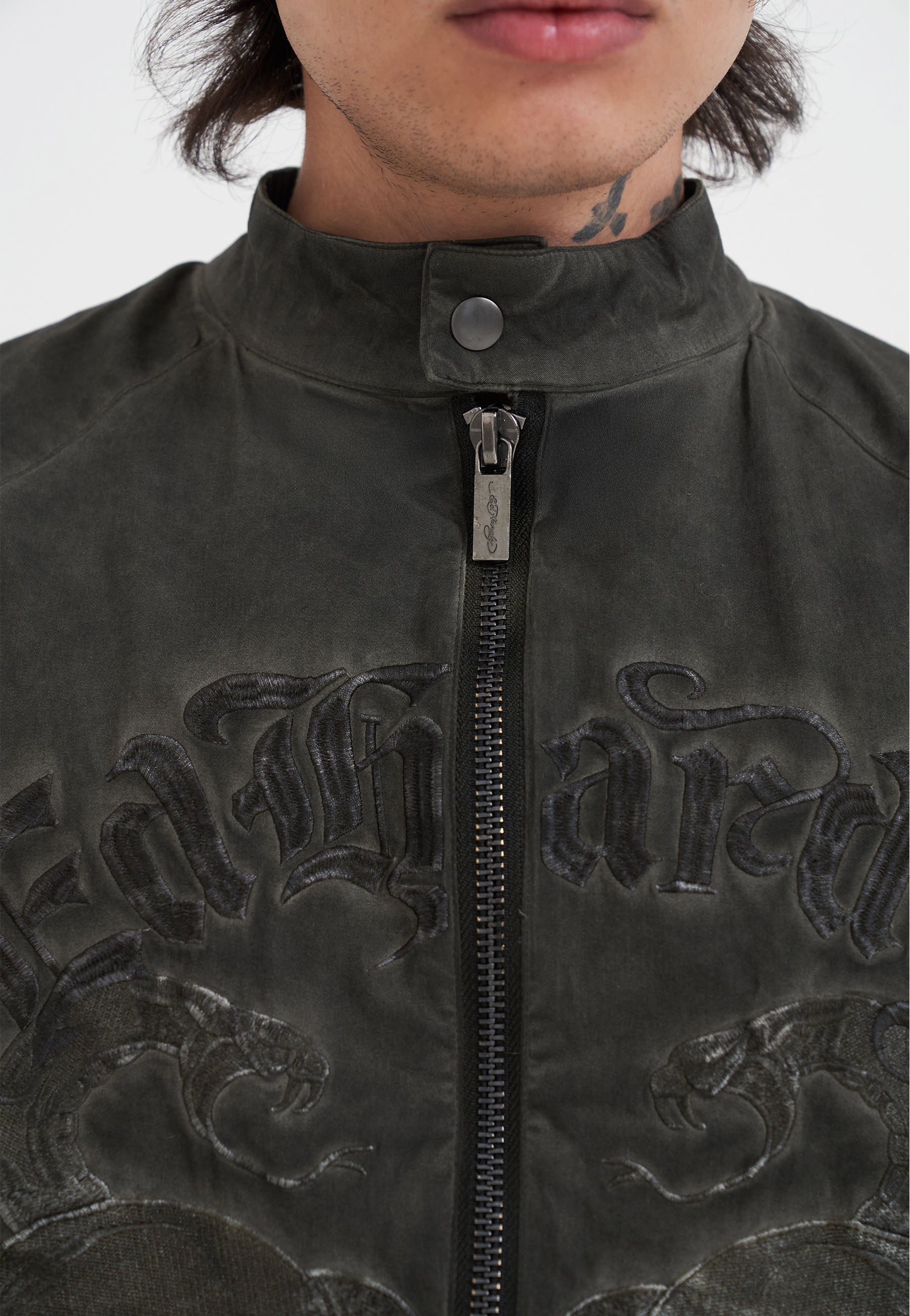 MENS SKULL AND SNAKE POLY JACKET in Green