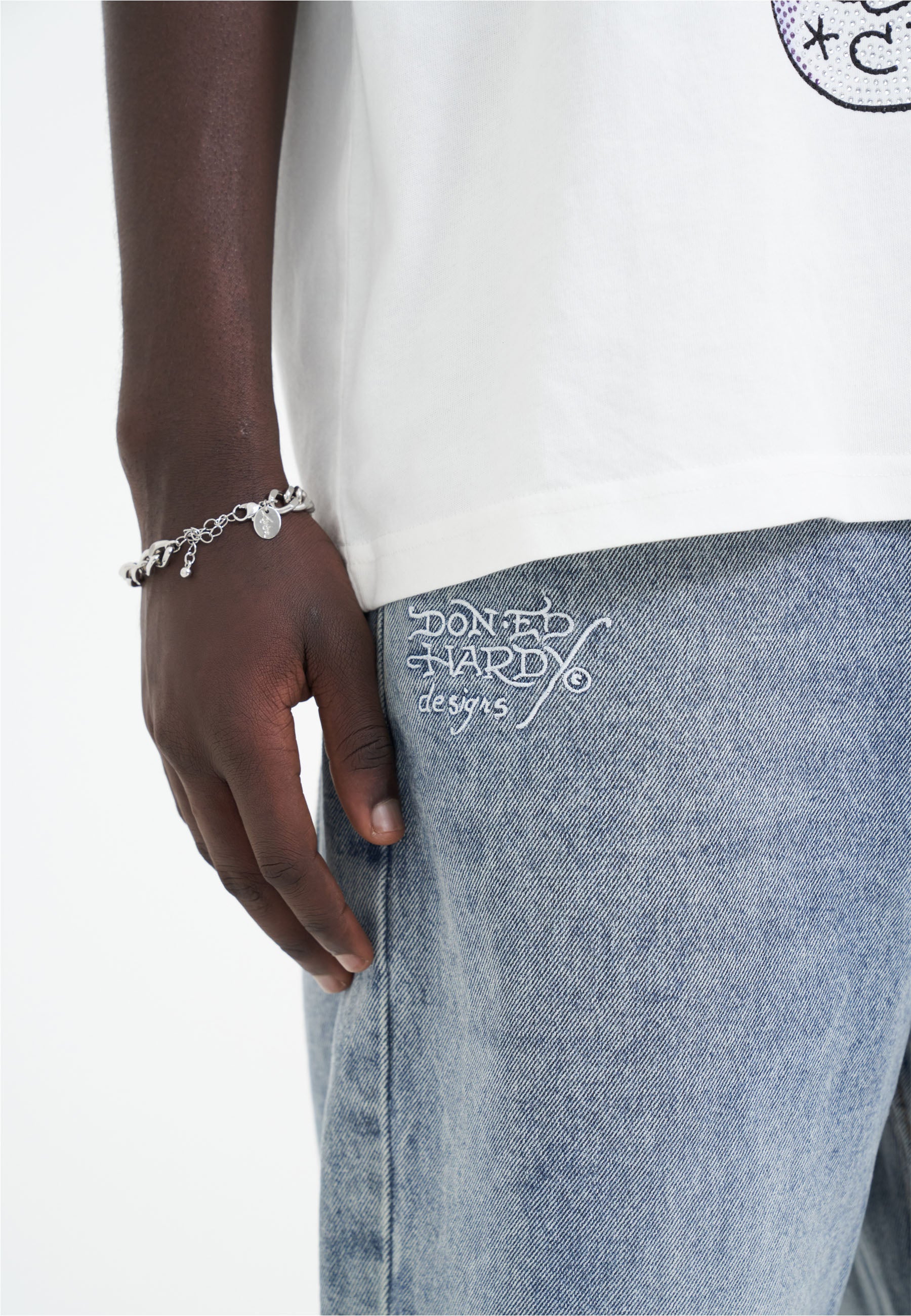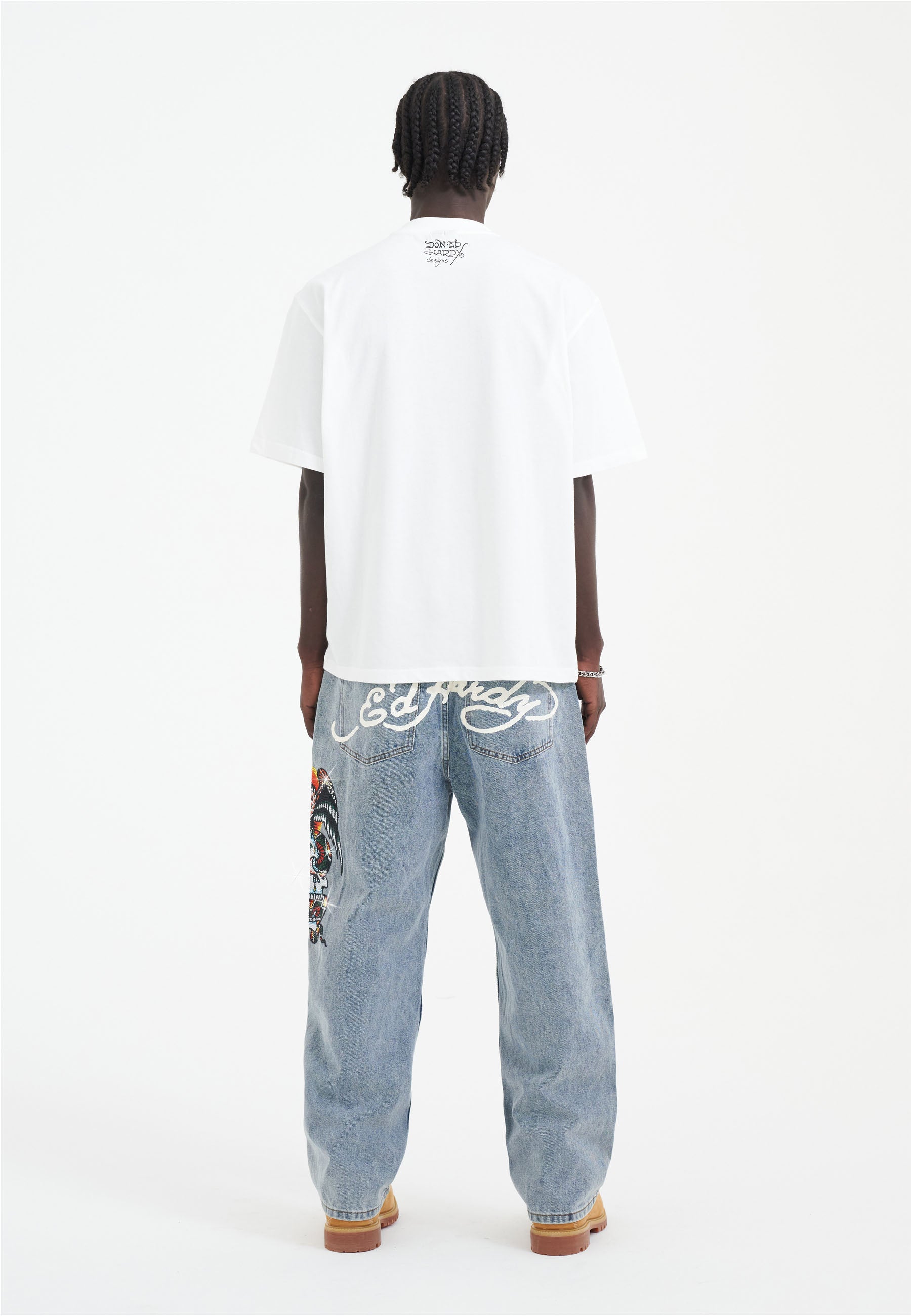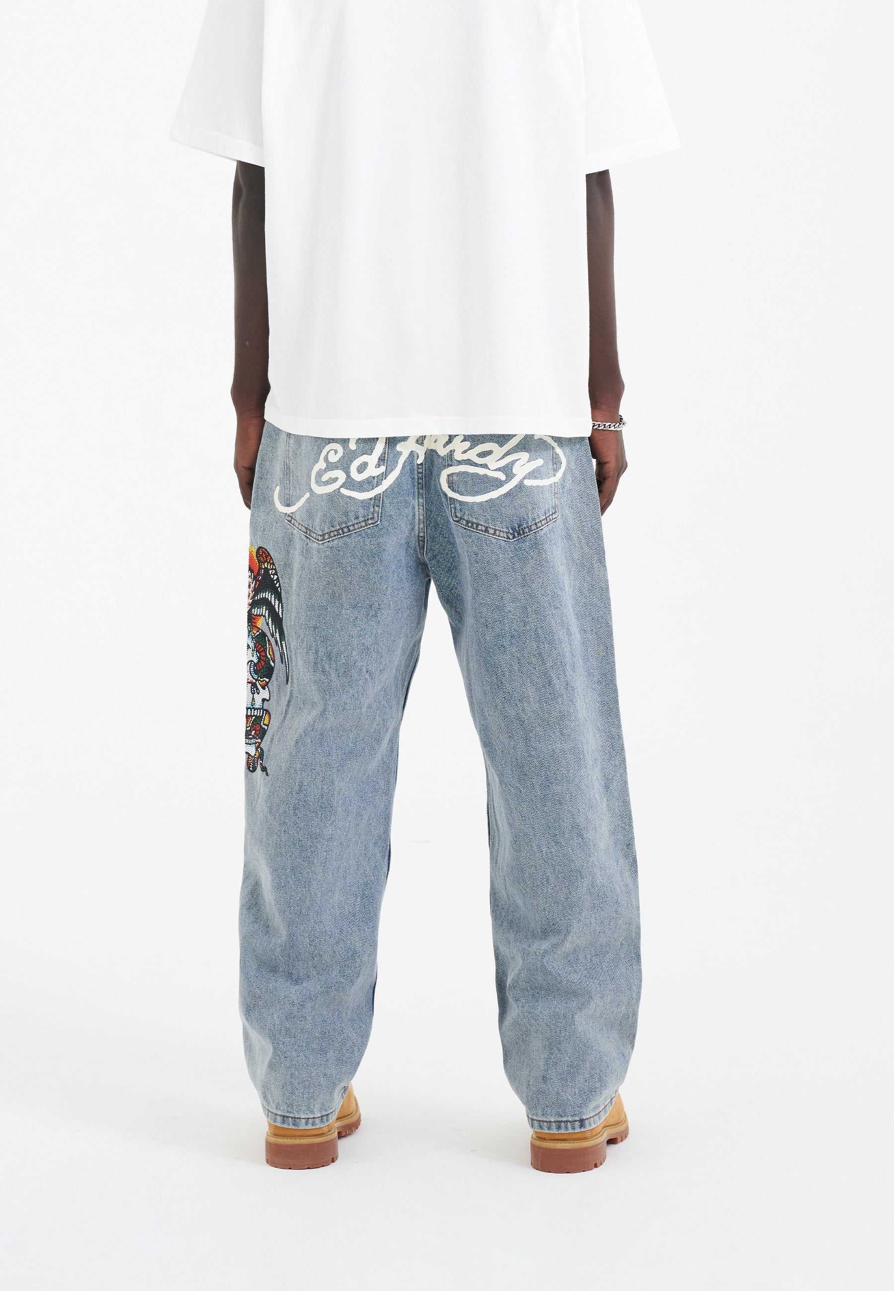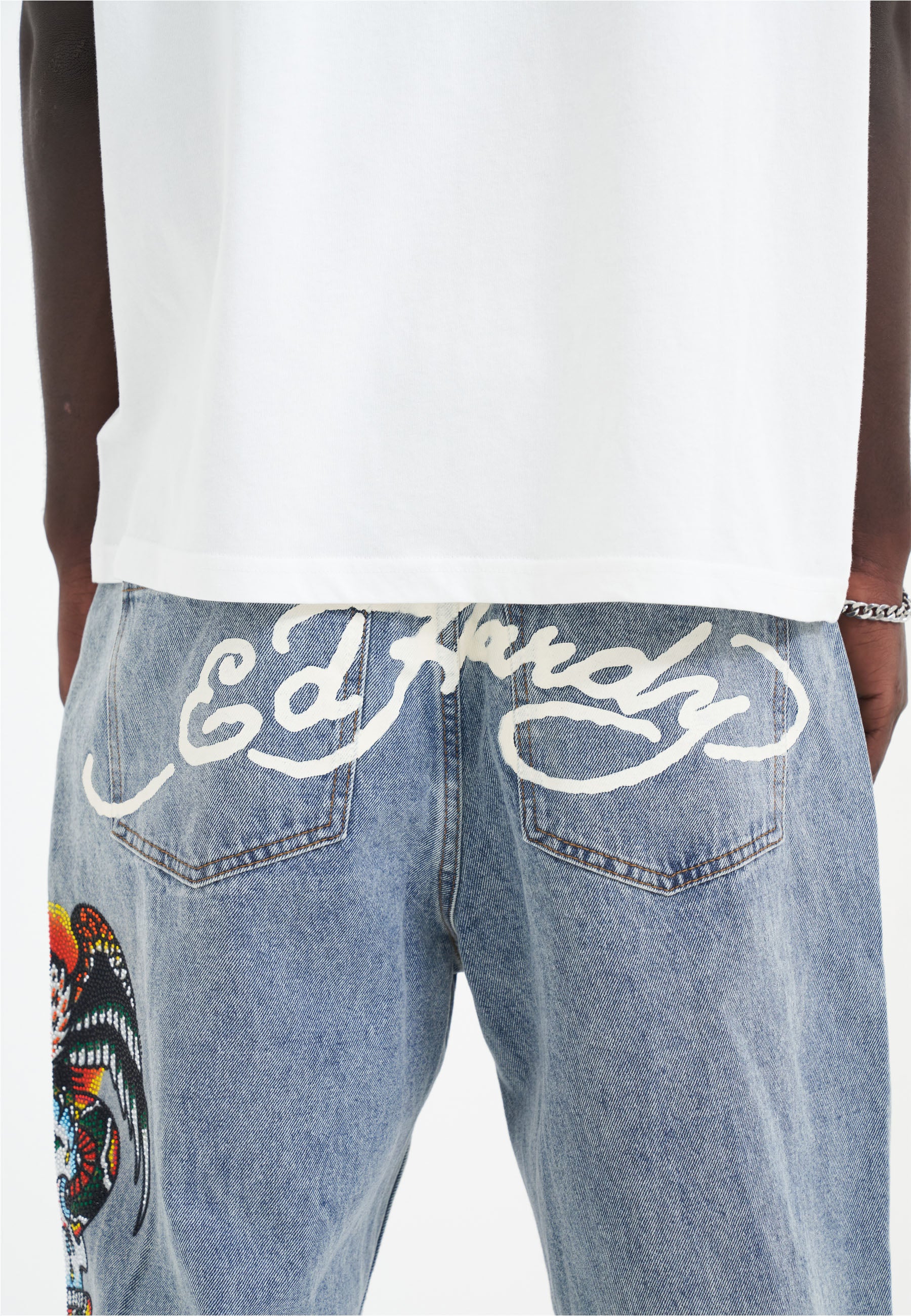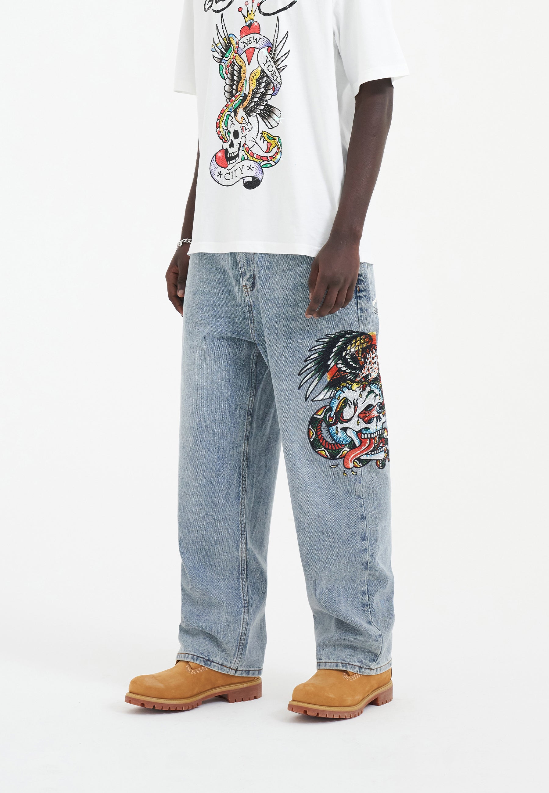 The Skull, Snake and Eagle Jean showcase Ed's legendary graphics reimagined in vibrant full-colour diamante patches on the leg and back logo placement.