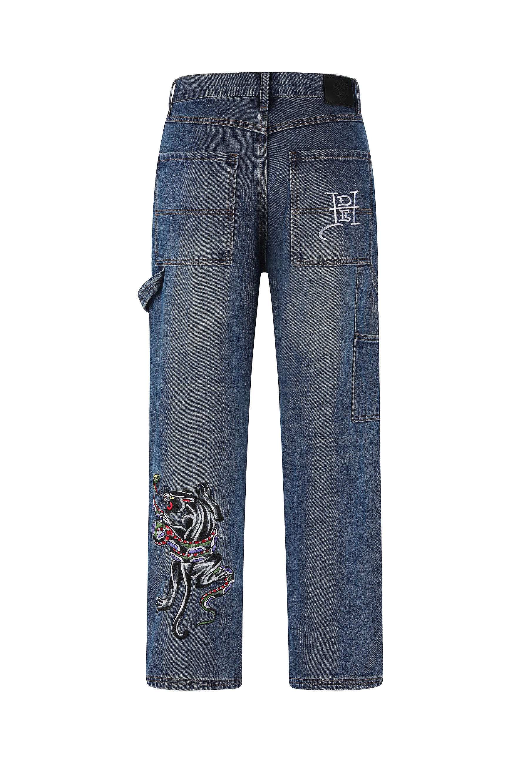 Mens Snake & Panther Carpenter Denim Trousers Jeans - Indigo