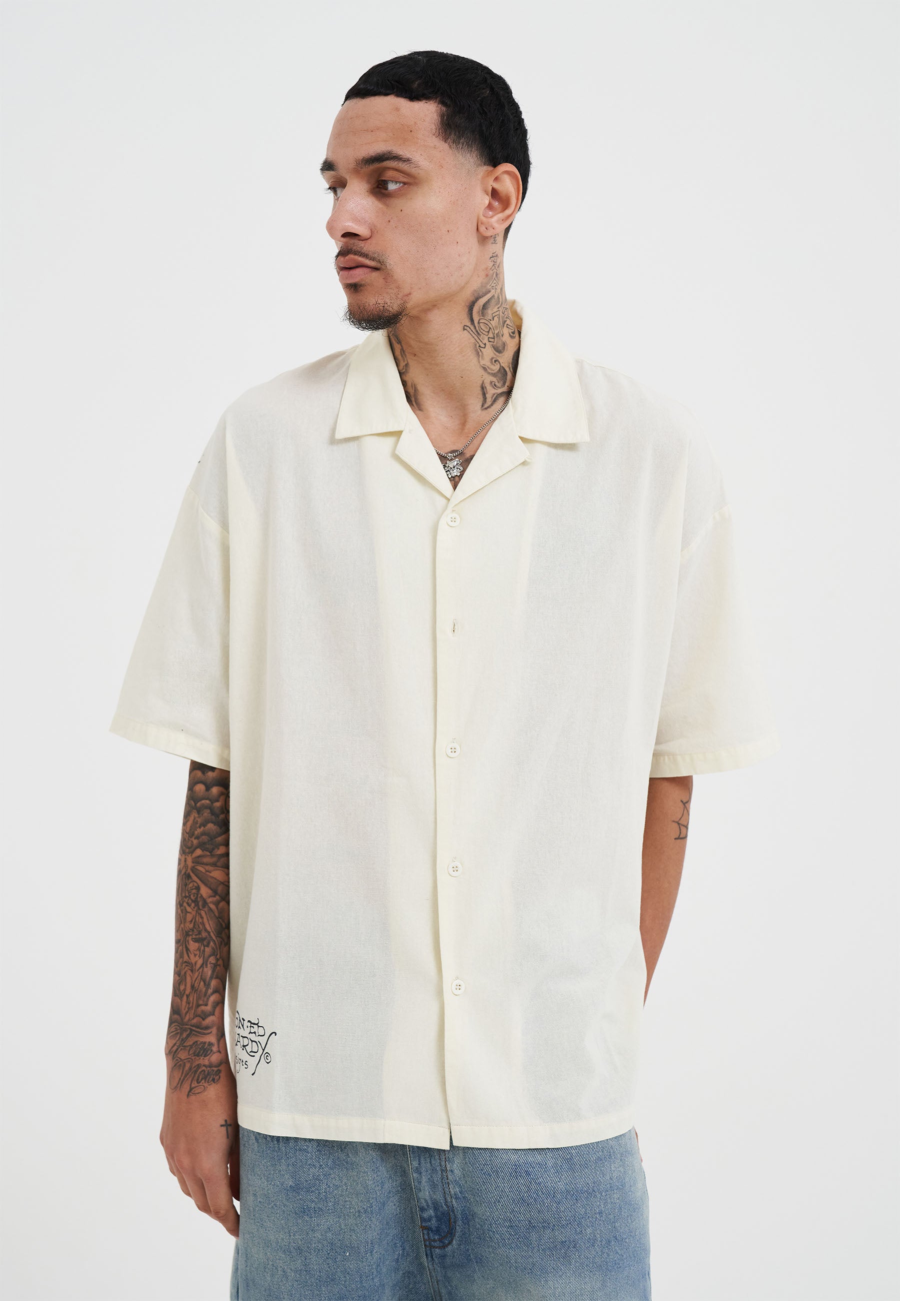 Mens Snakes And Skull Flames Printed Camp Shirt - Beige