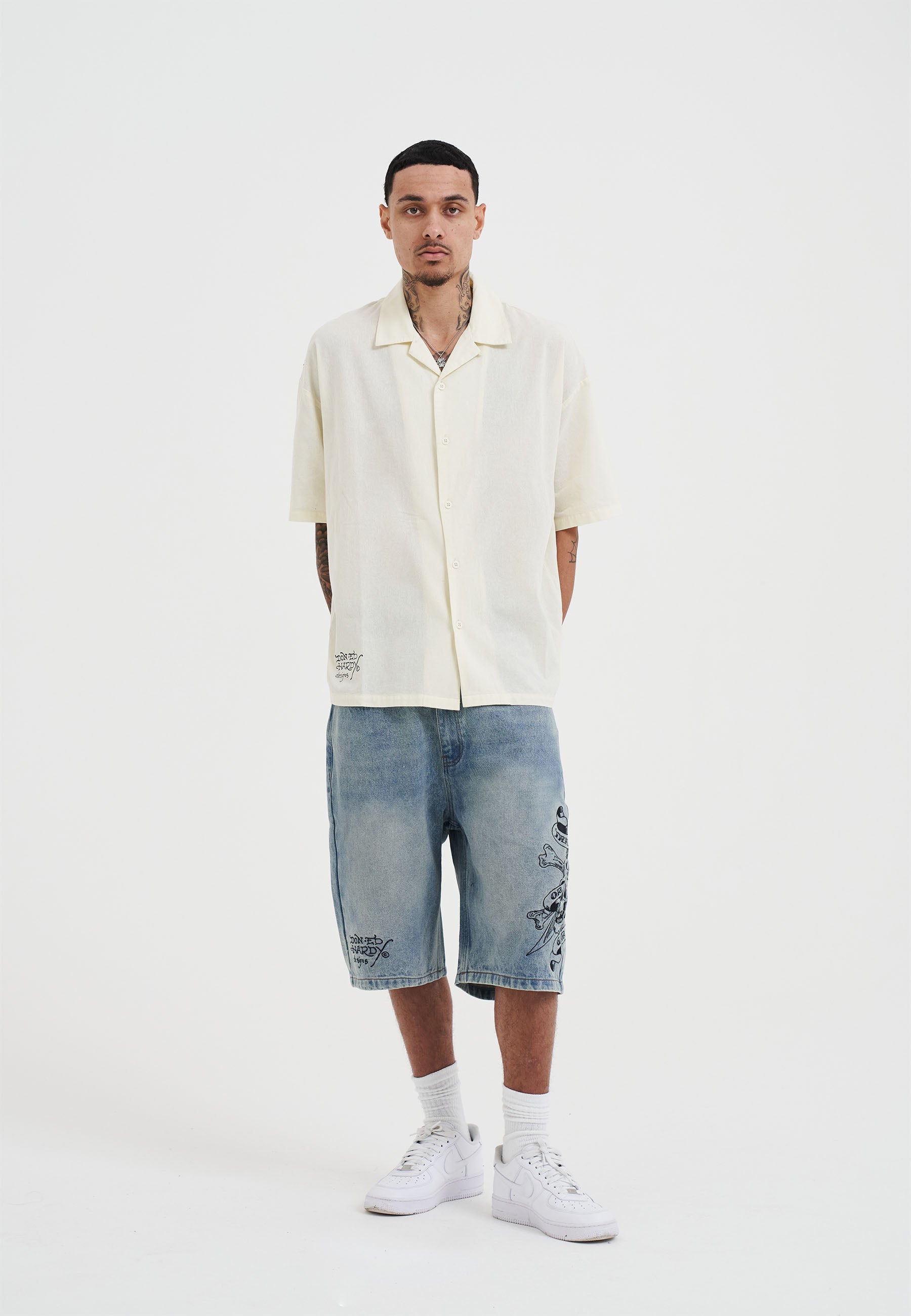 SNAKES AND SKULL FLAMES PRINTED CAMP SHIRT
