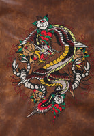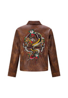 Mens Soaring Snake Circle Zip Thru Vegan Leather Jacket - Brown
