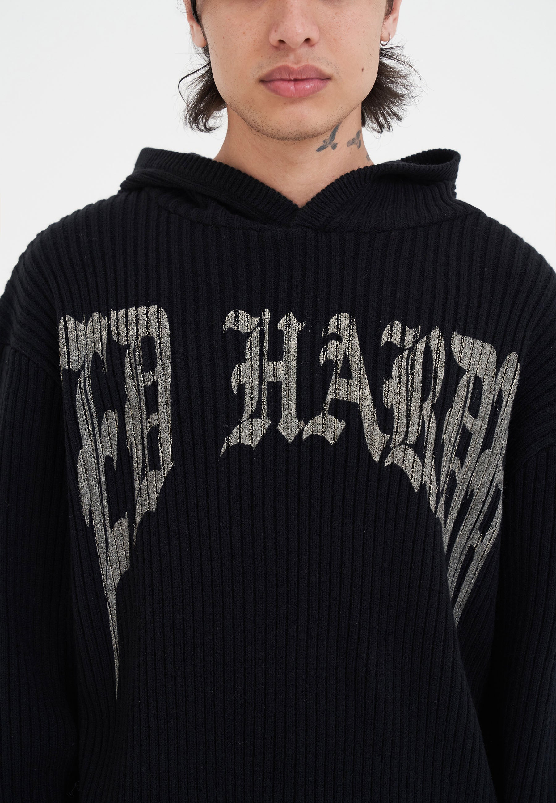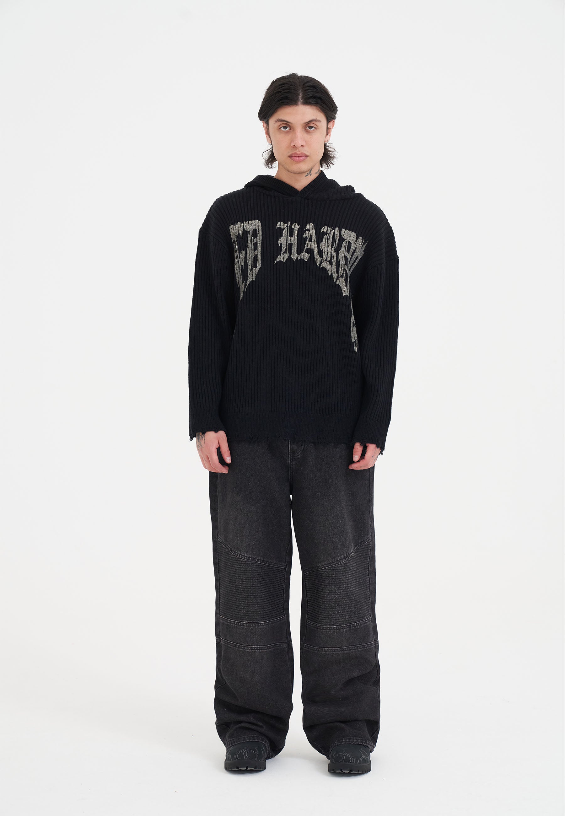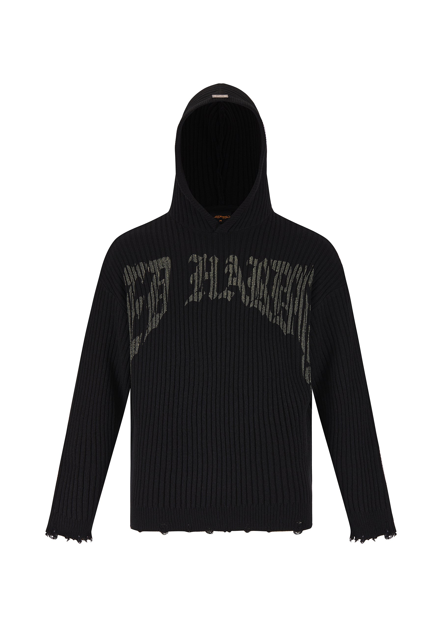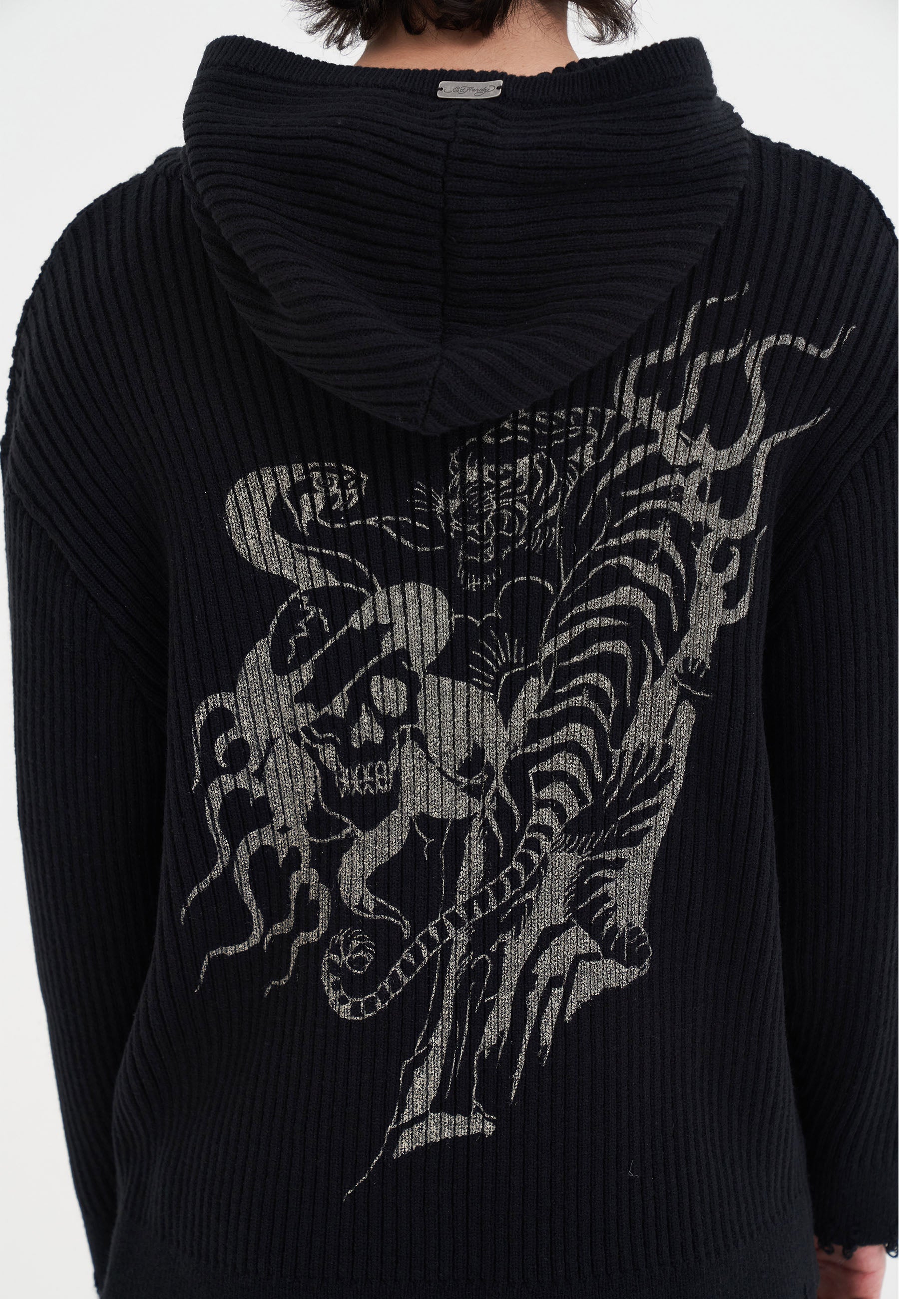 MENS TIGER AND SNAKE IN FLAMES KNITTED HOODIE in Black