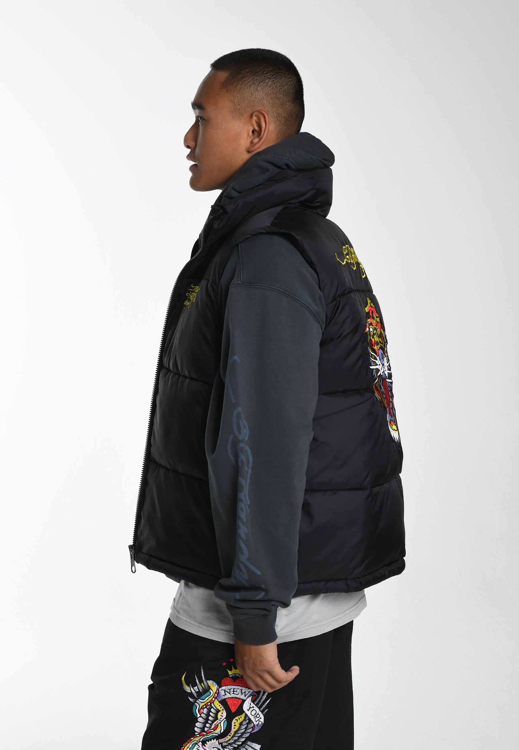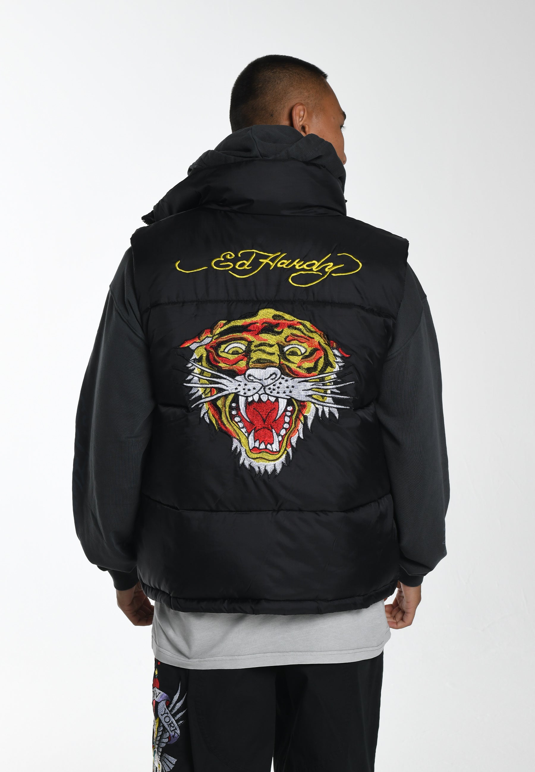 Mens Tiger-Head-Gillet Puffer Jacket - Black