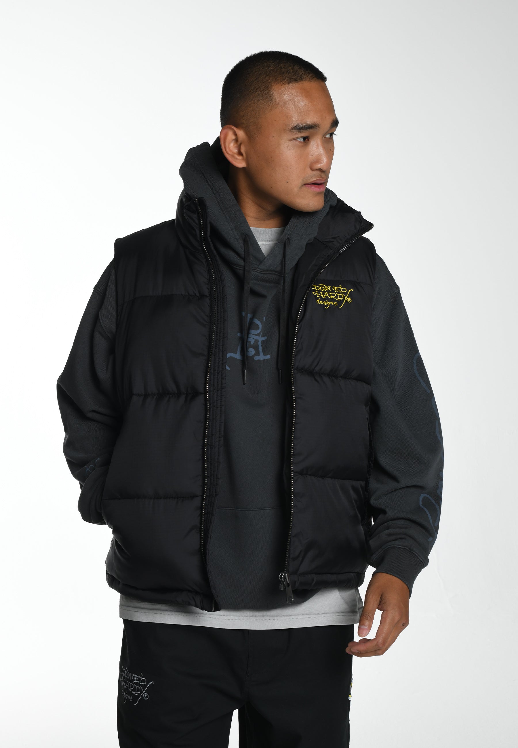 A new-season essential, The Tiger Head Gillet Puffer Jacket offers superior comfort in 100% Nylon, featuring a full colour, striking embroidered graphic on the back and a subtle Ed Hardy monogram on the chest.