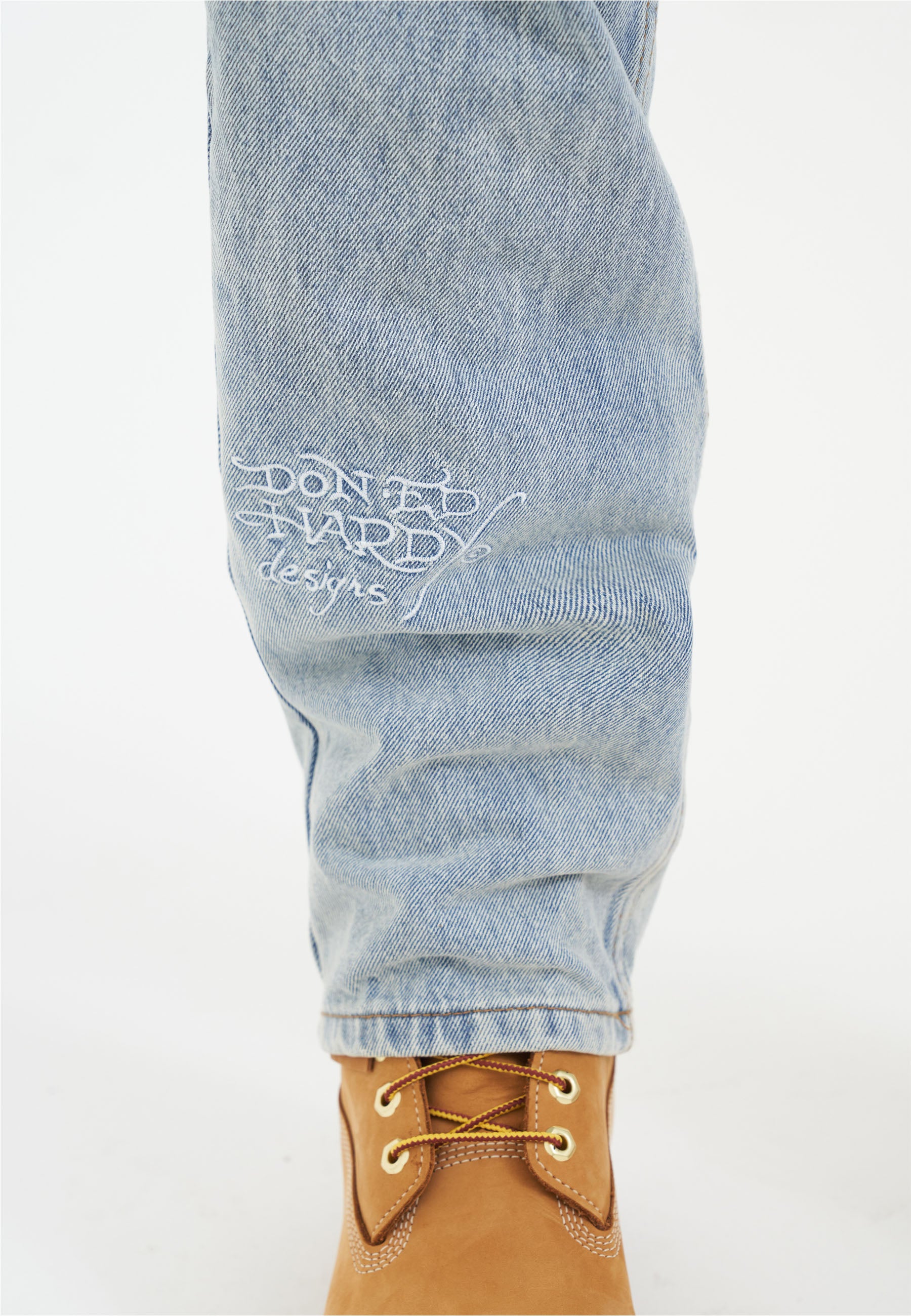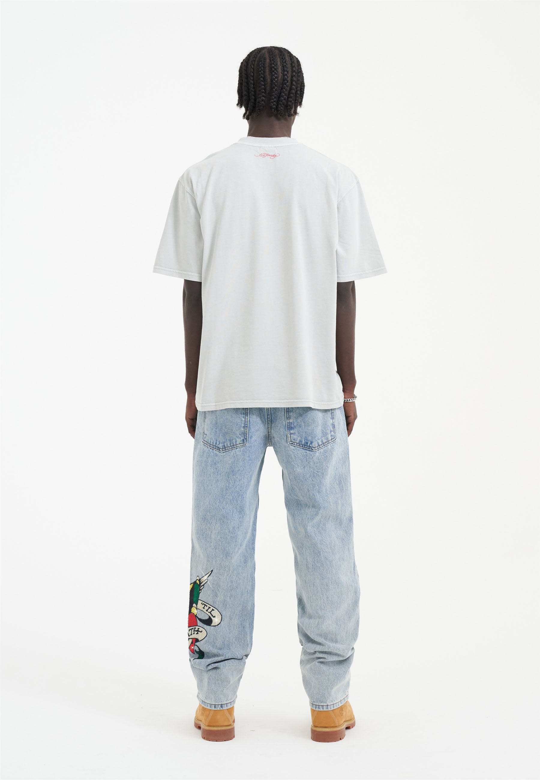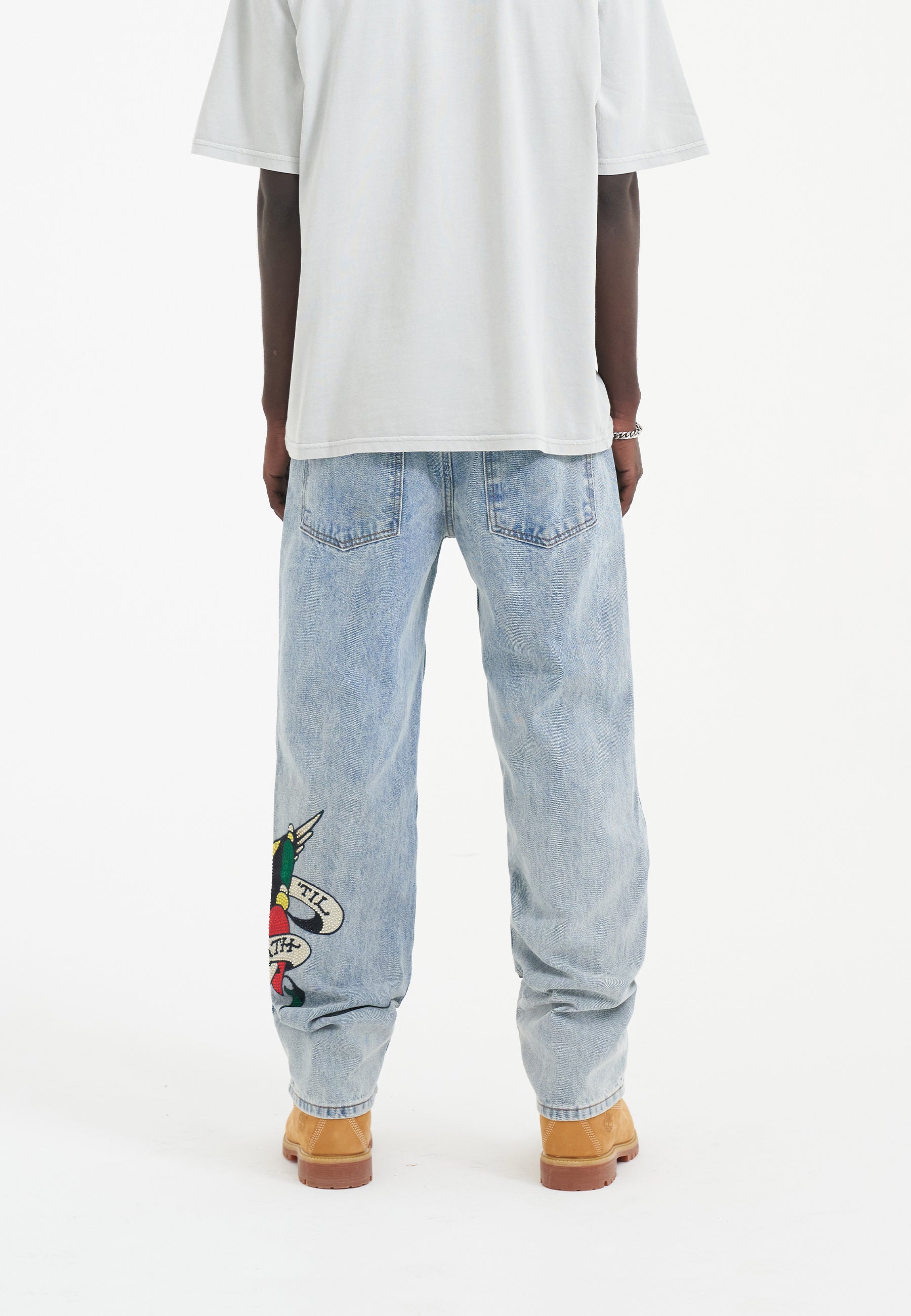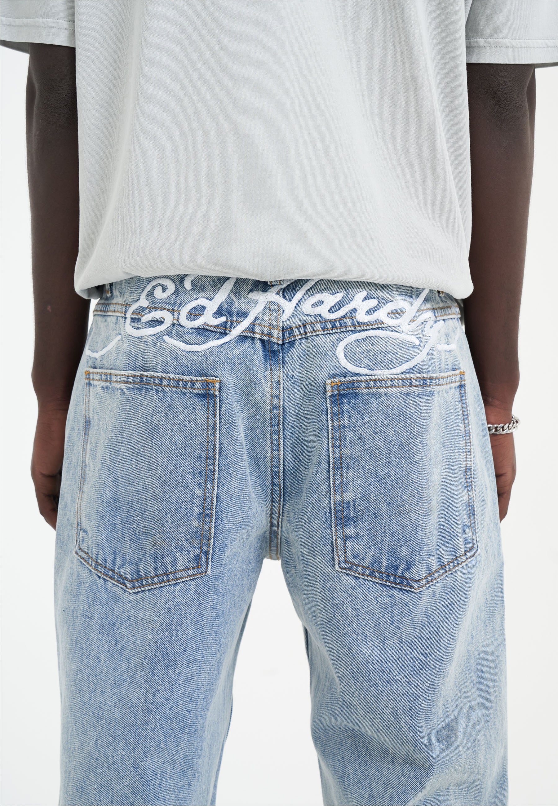 Mens True-Till-Death Diamante Denim Trousers Jeans - Bleach