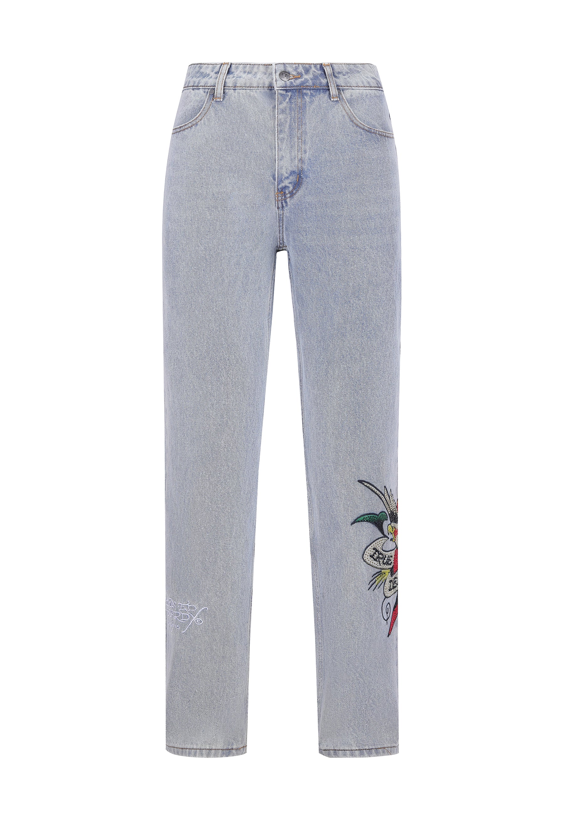 New for SS24, Ed transforms heavy denim into works of art with modern embellishments.