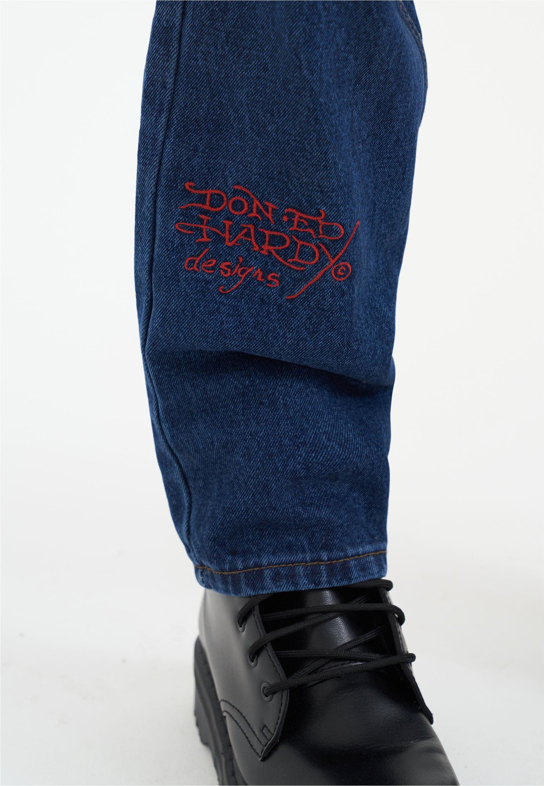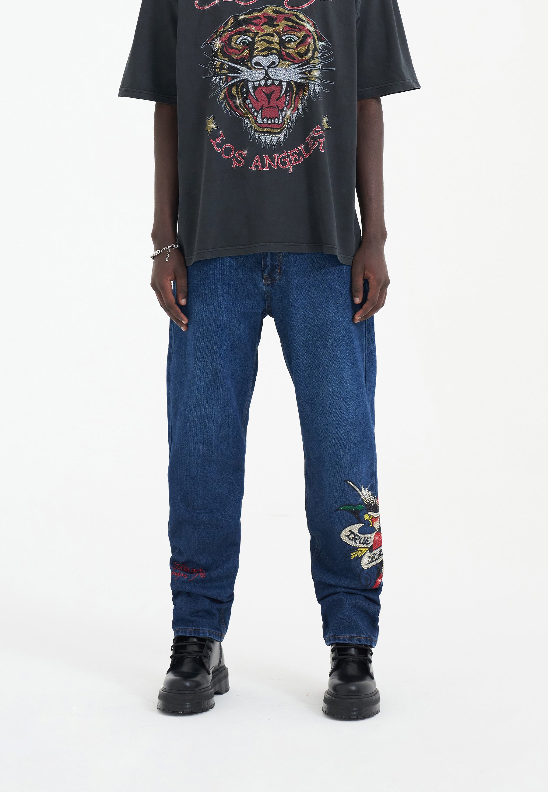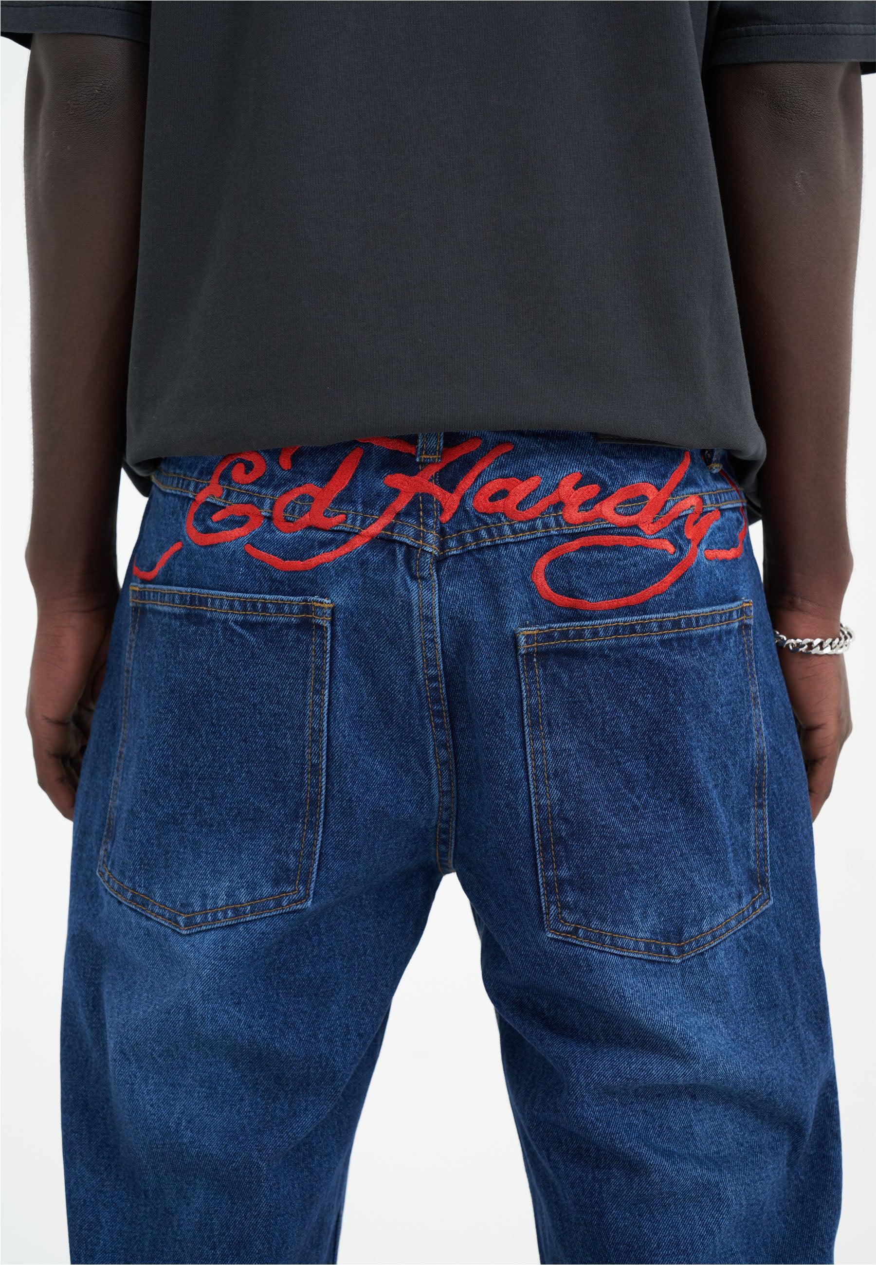 The True Til Death Jean features a full-colour diamante graphic along the front leg and the iconic Ed Hardy signature logo across the reverse.