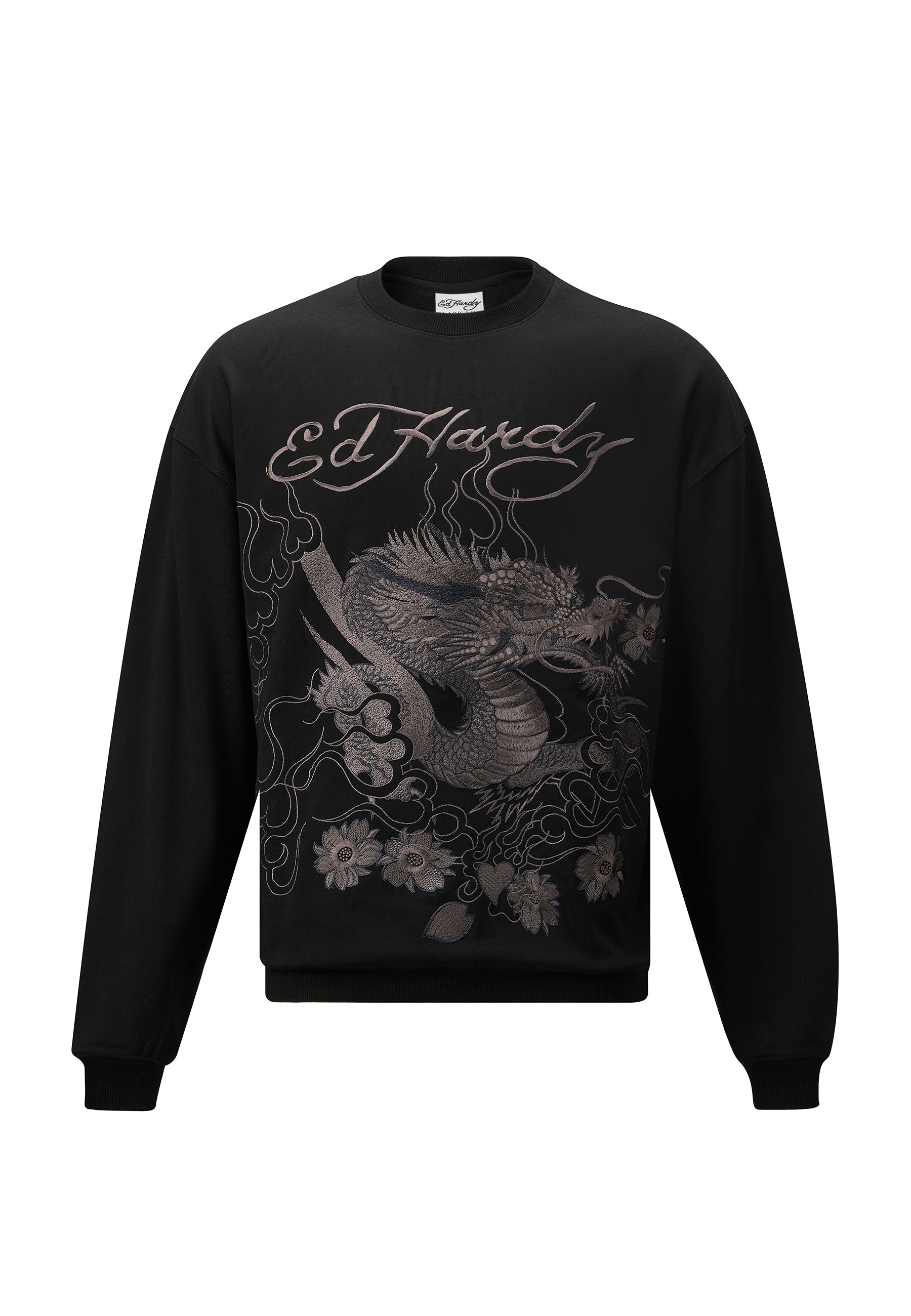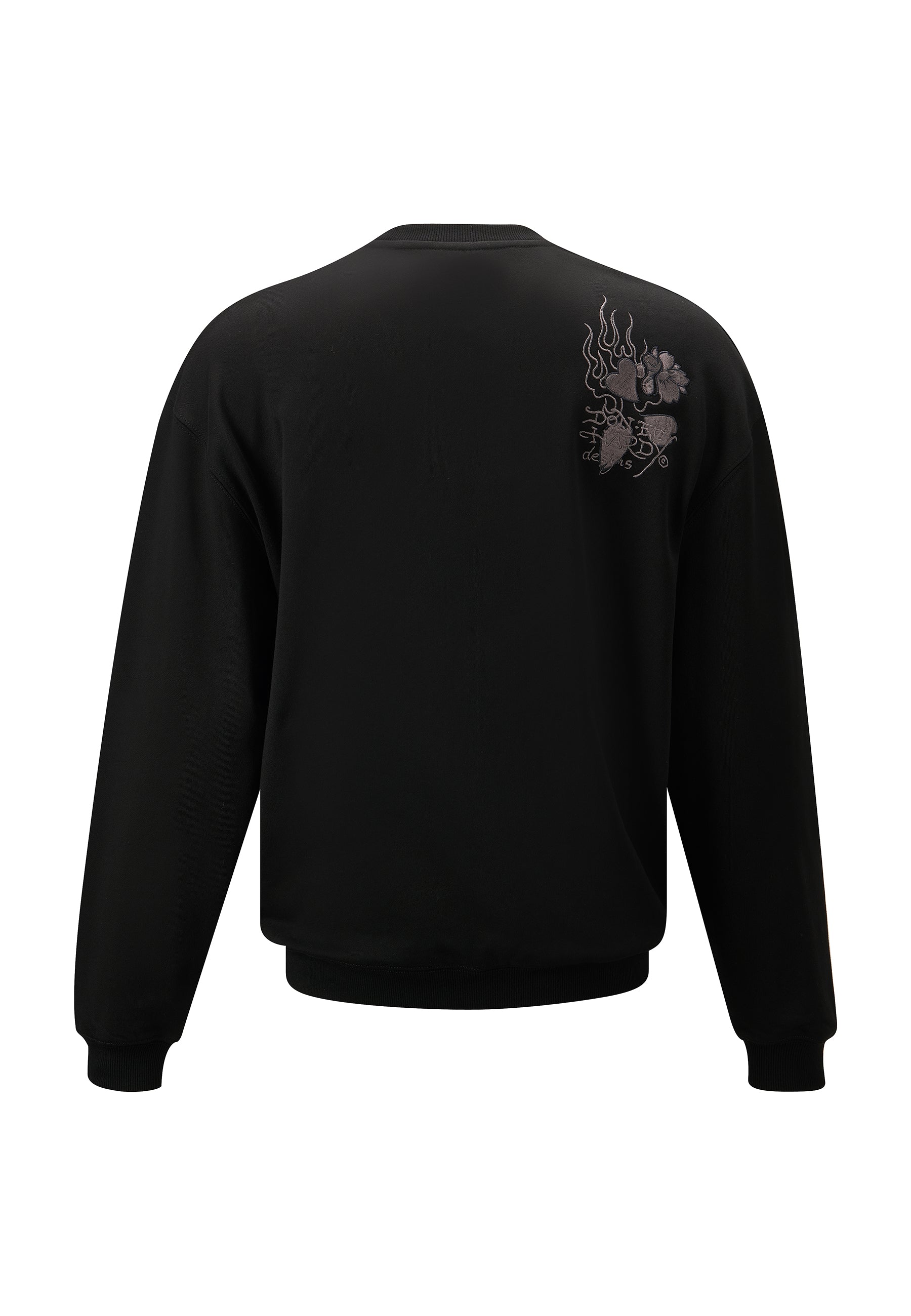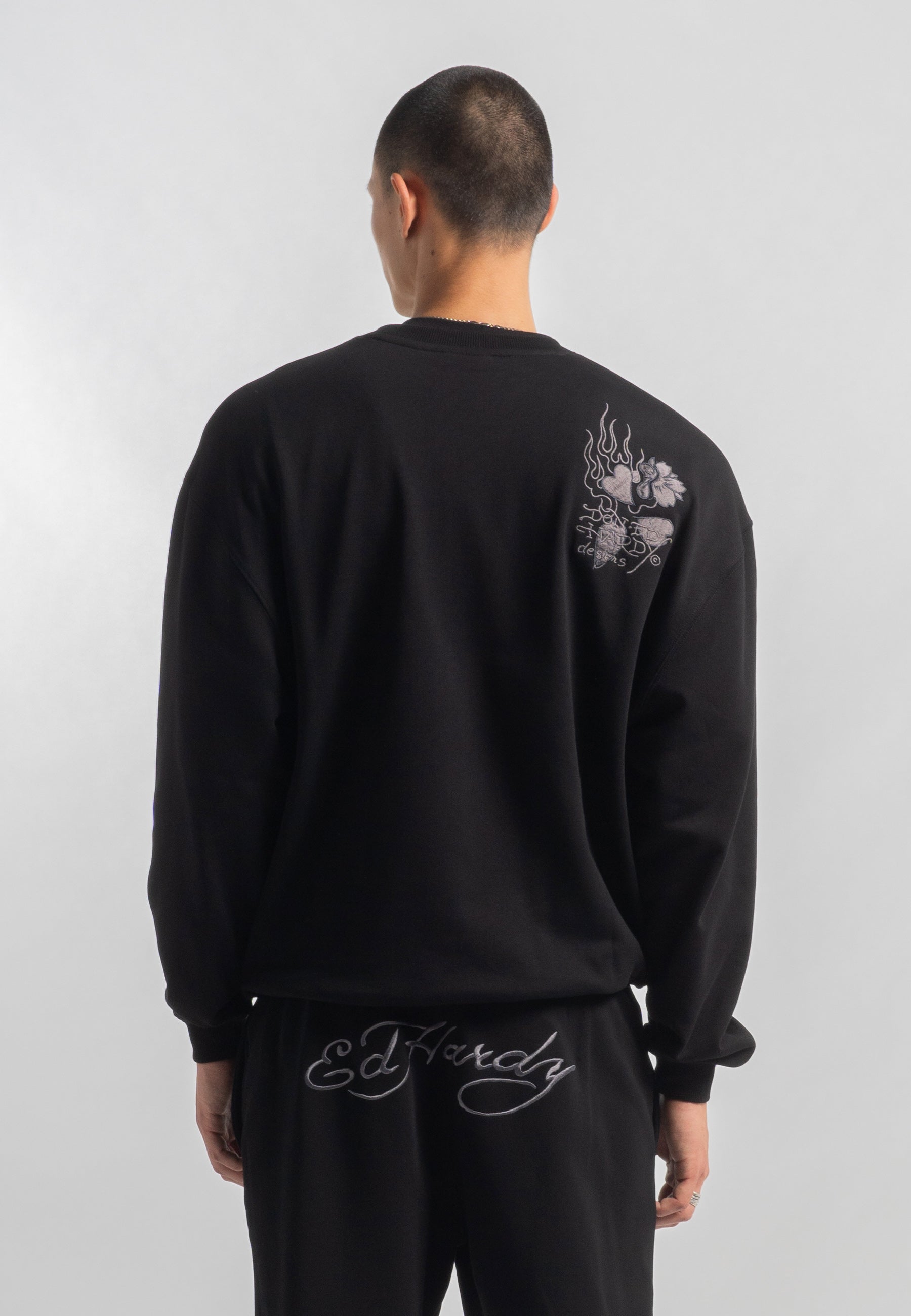 This jumper, featuring vintage-inspired tonal embroidery, pays homage to Ed Hardy's iconic designs.
