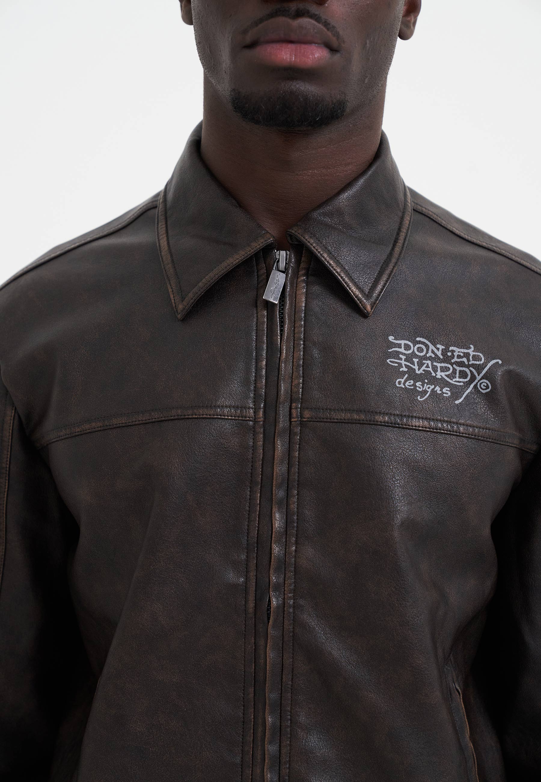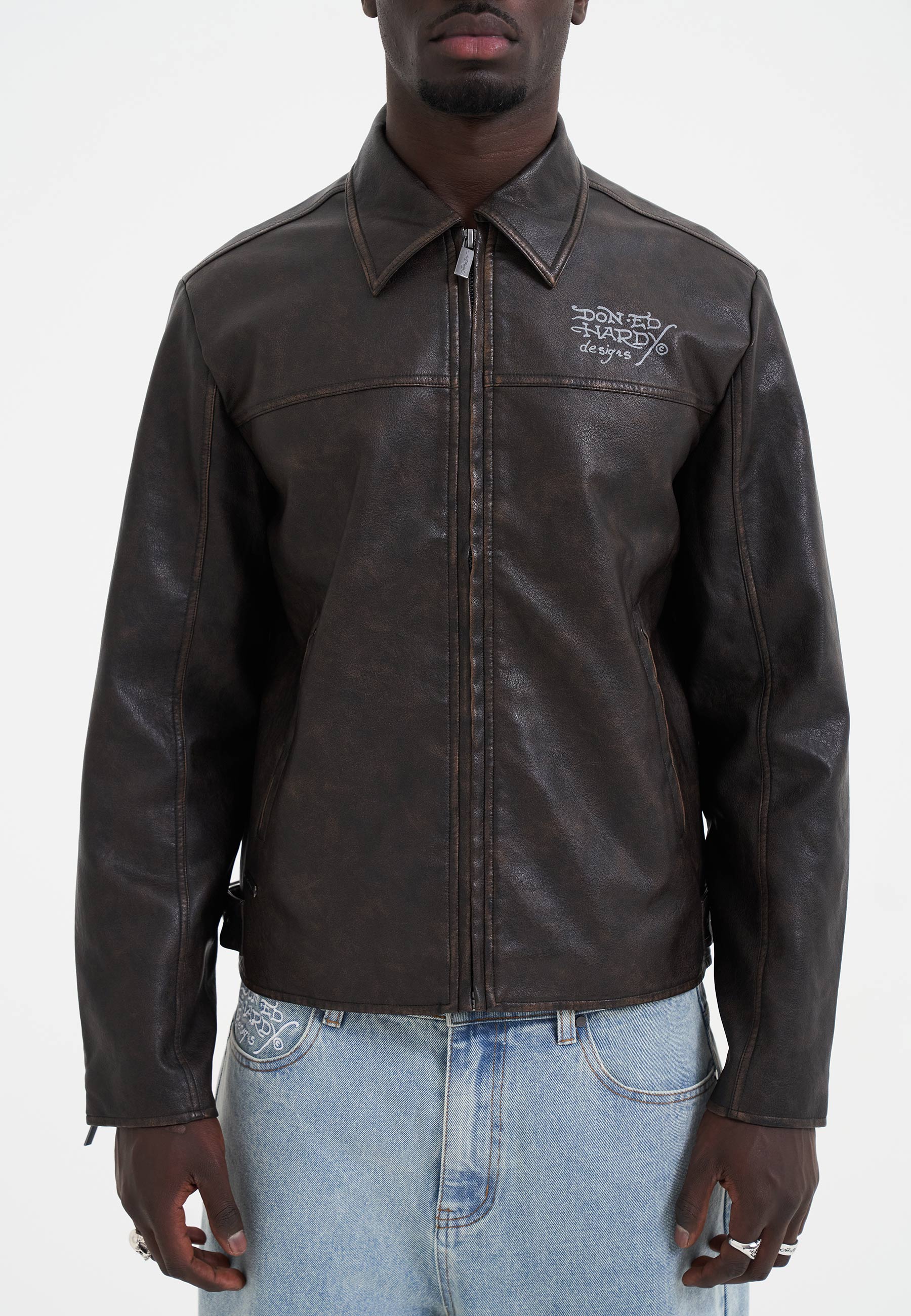Mens Vintage Washed Vegan Leather Motocross Jacket - Brown