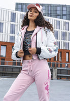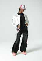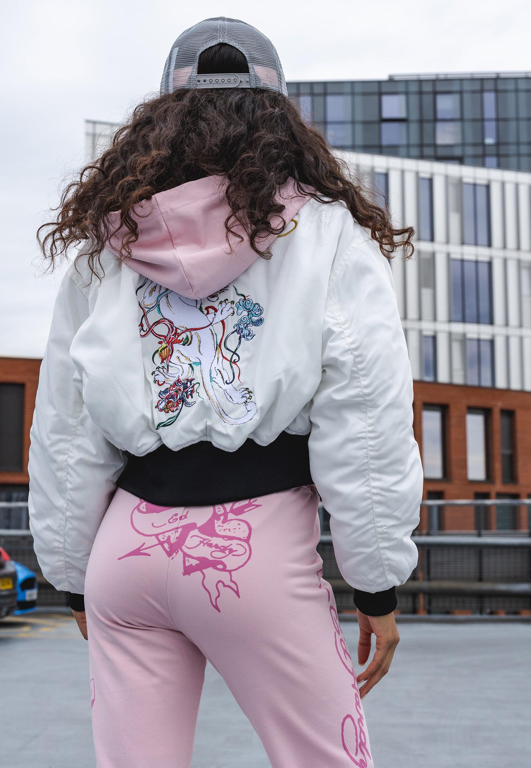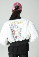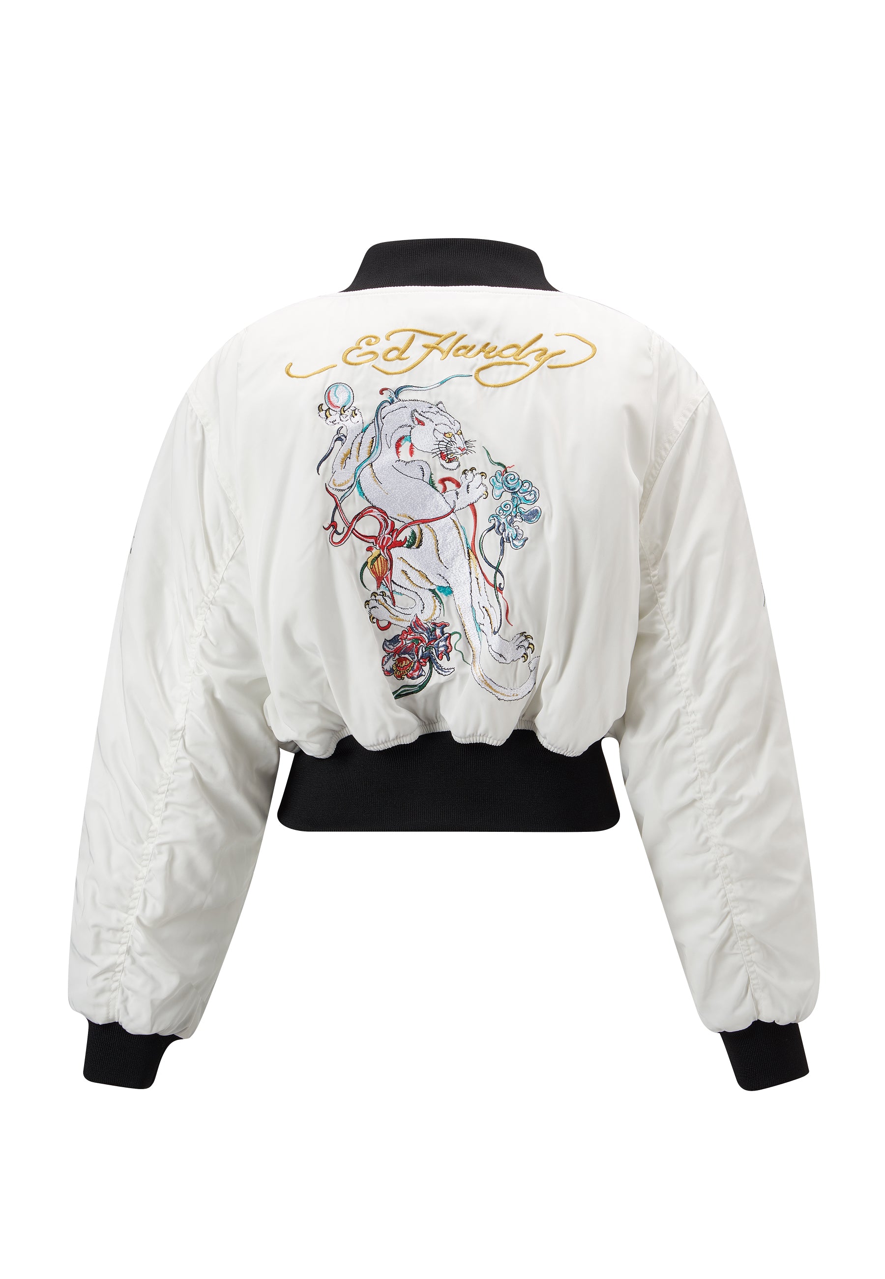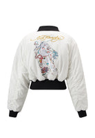 Womens Mystic-Panther Cropped Bomber Jacket - White
