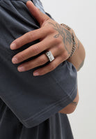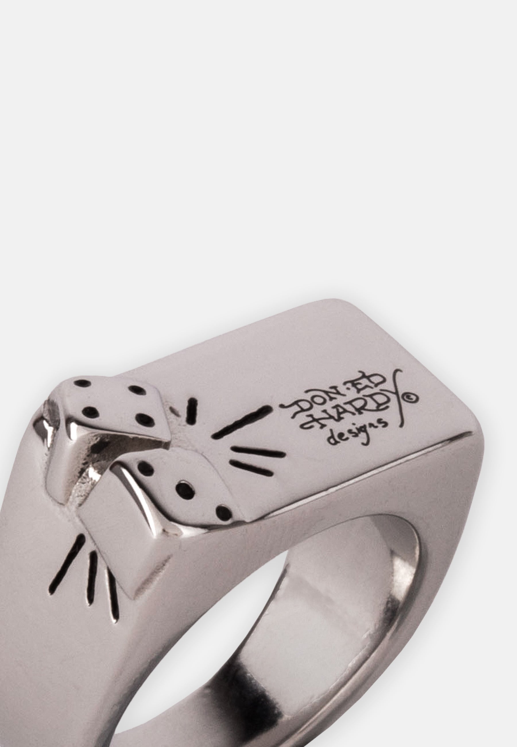 Stainless Steel Rectangular faced signet ring with dice motif and Don Ed hardy Designs logo in a silver finish.
