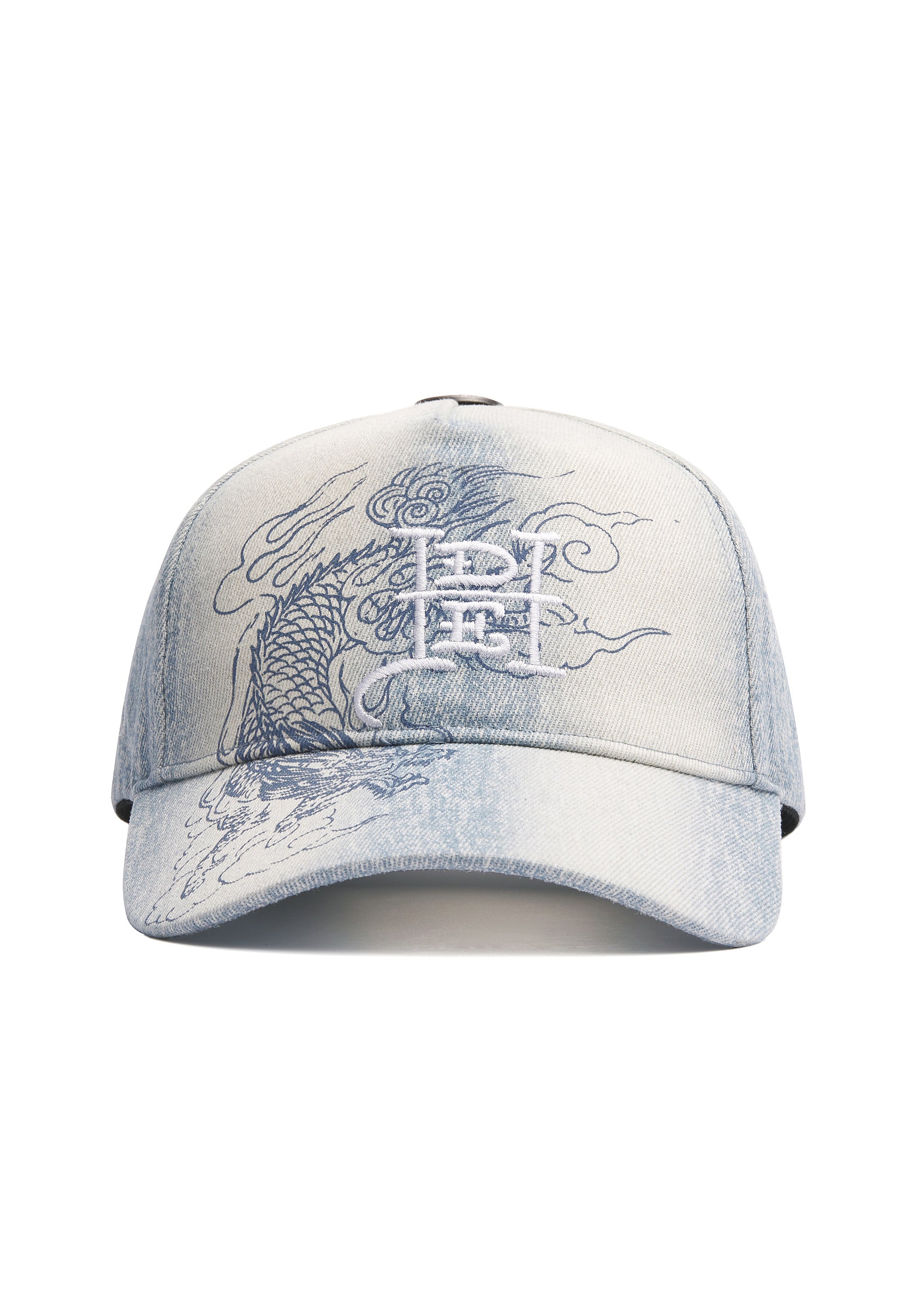 Unisex Crawling Dragon Washed Denim 5 Panel Cap in Bleach