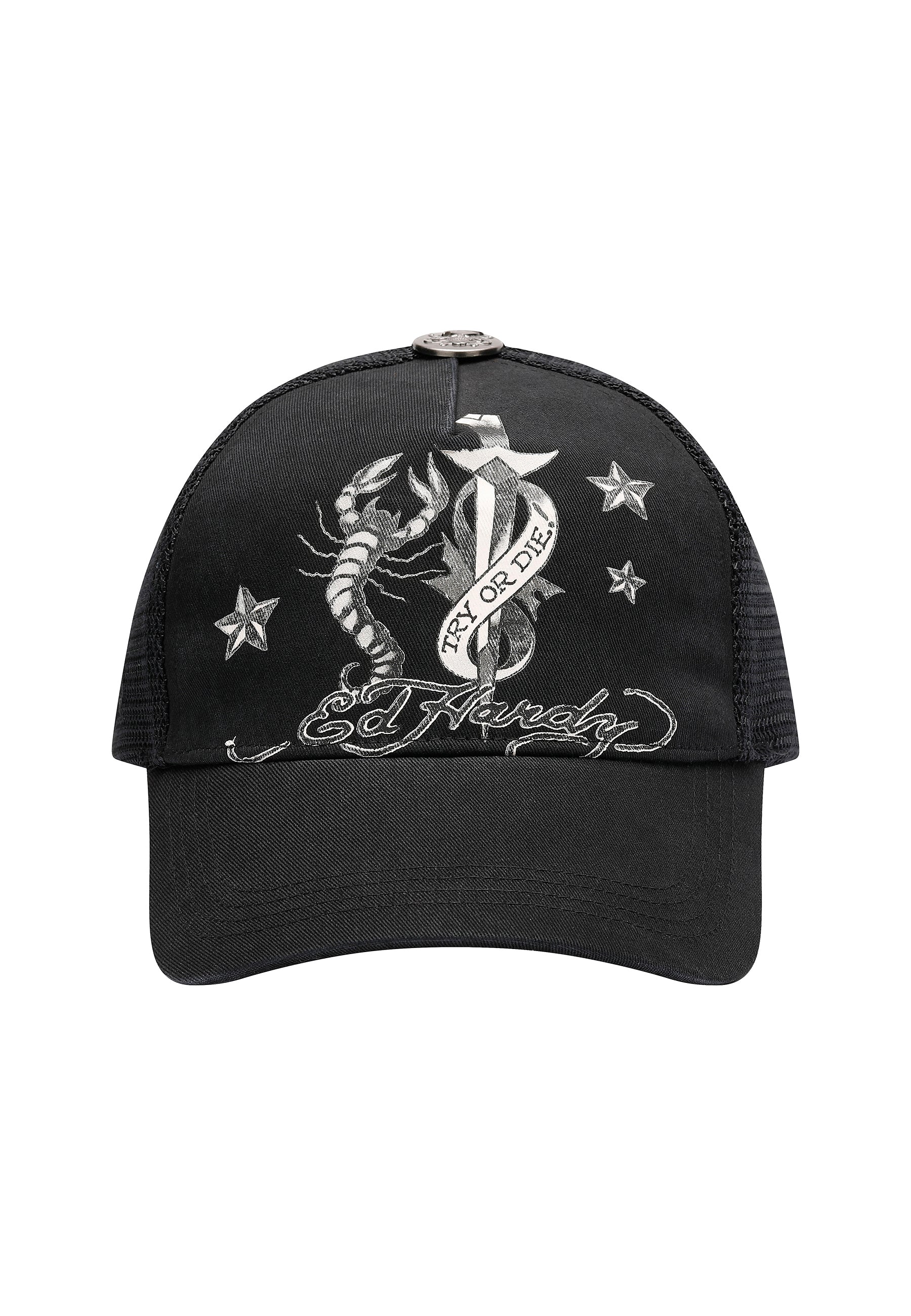 Unisex Dagger Scorpion 5 Panel Trucker Cap - Black