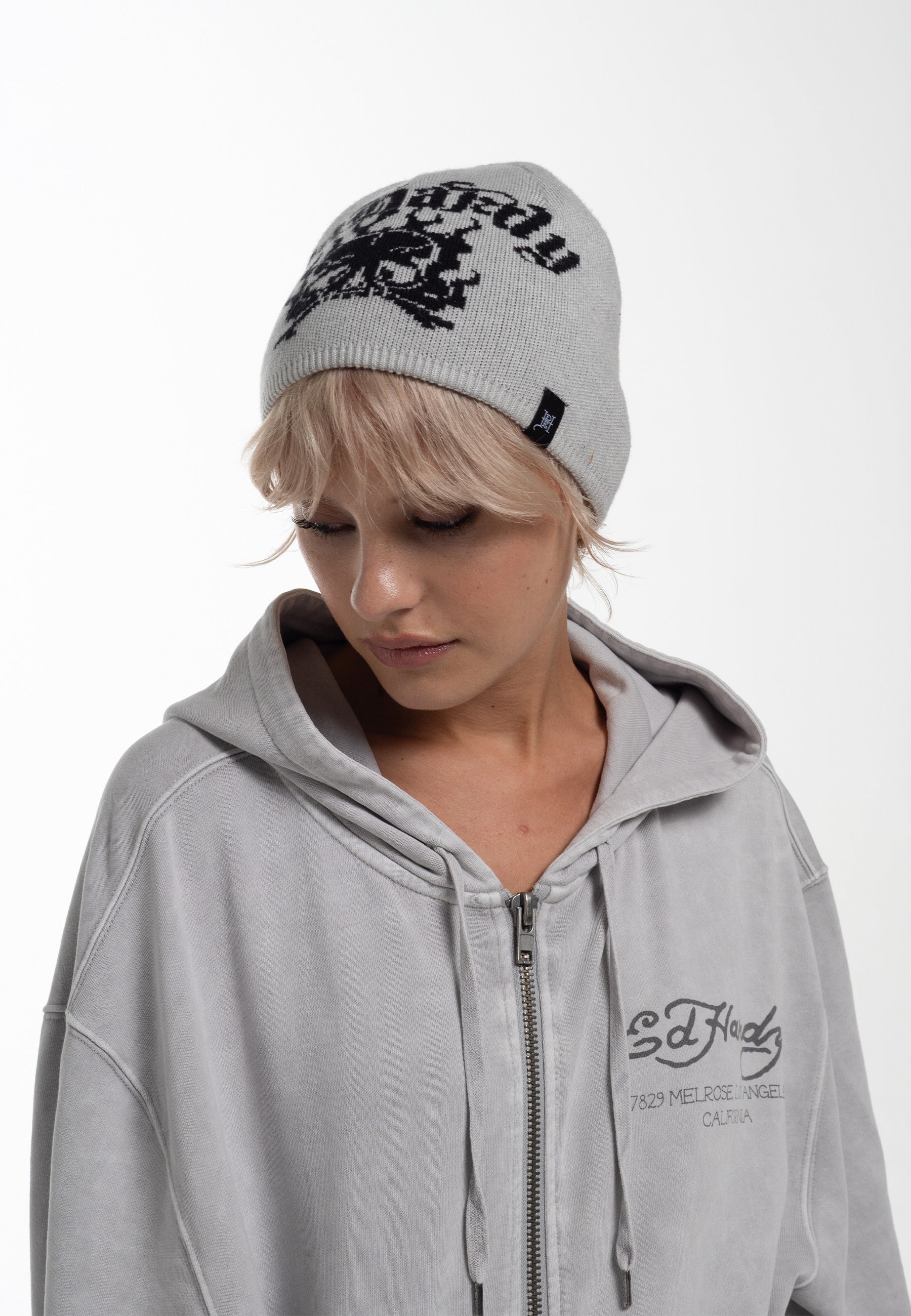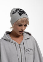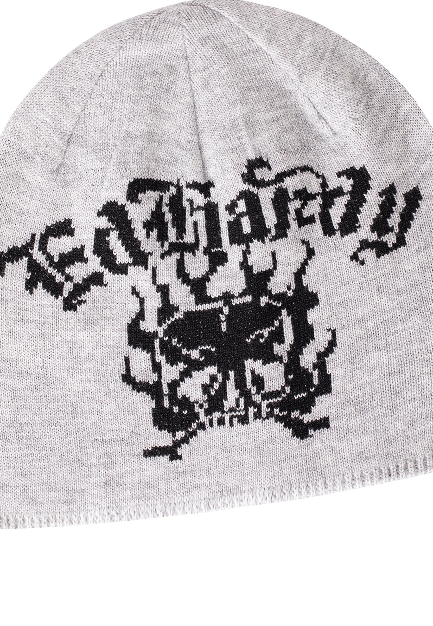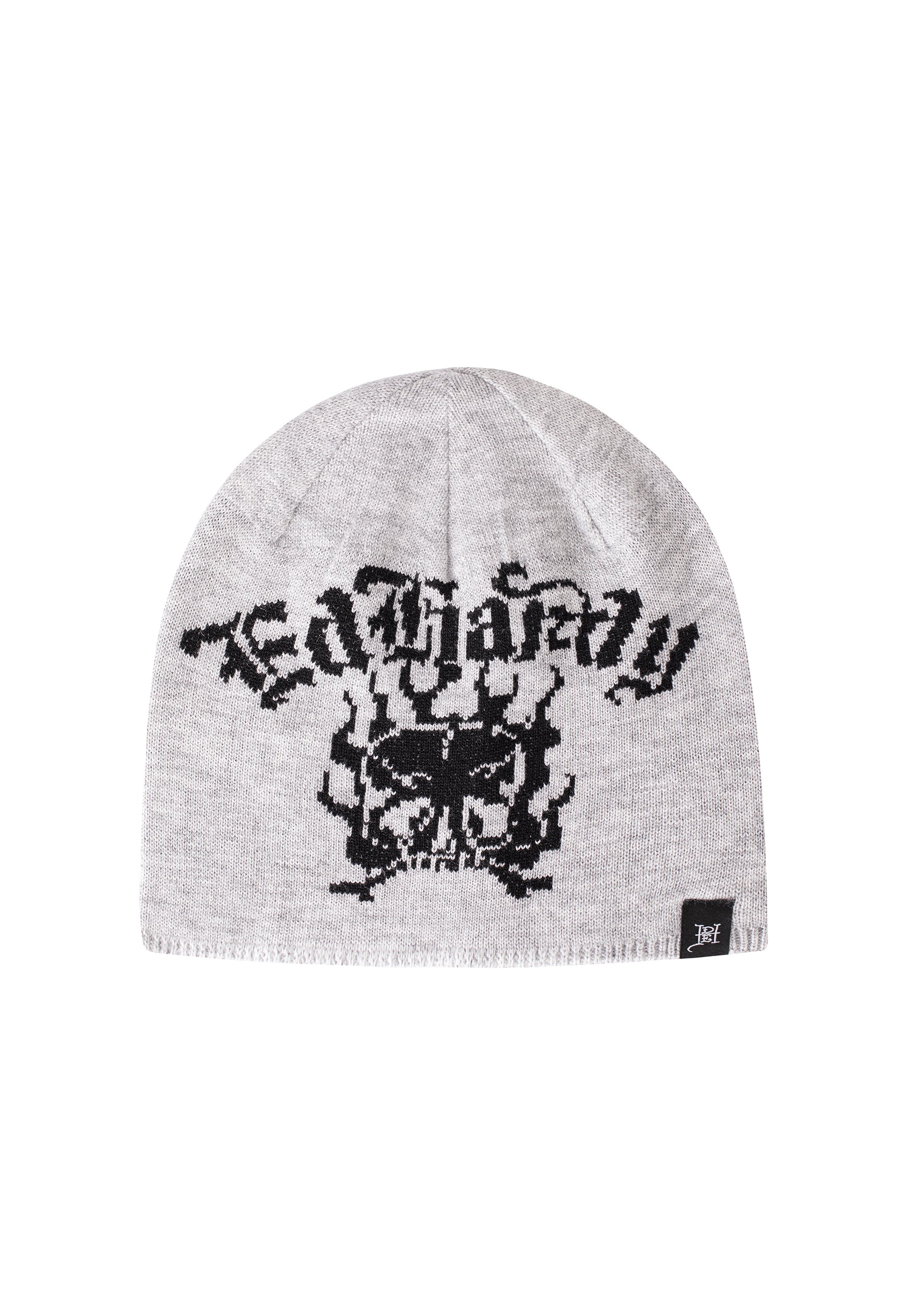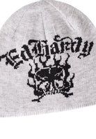 Unisex Gothic Skull In Flames Beanie Hat - Grey Marl