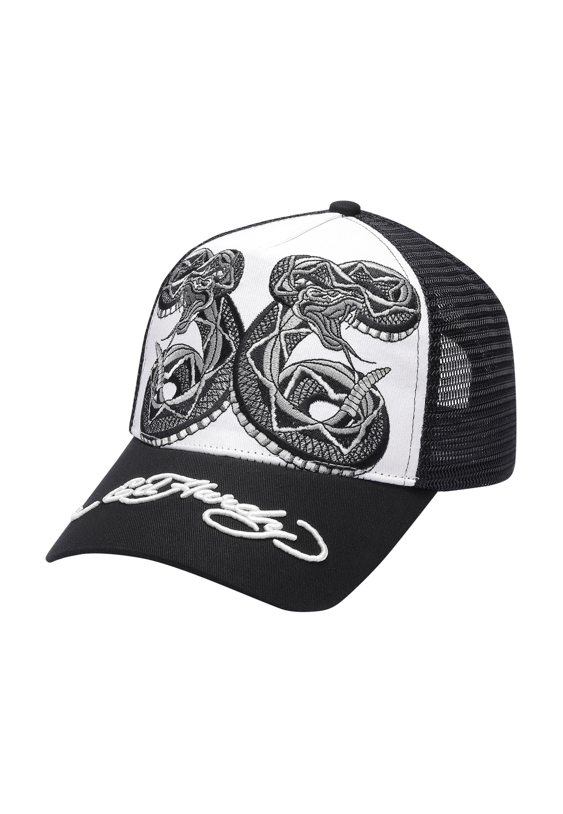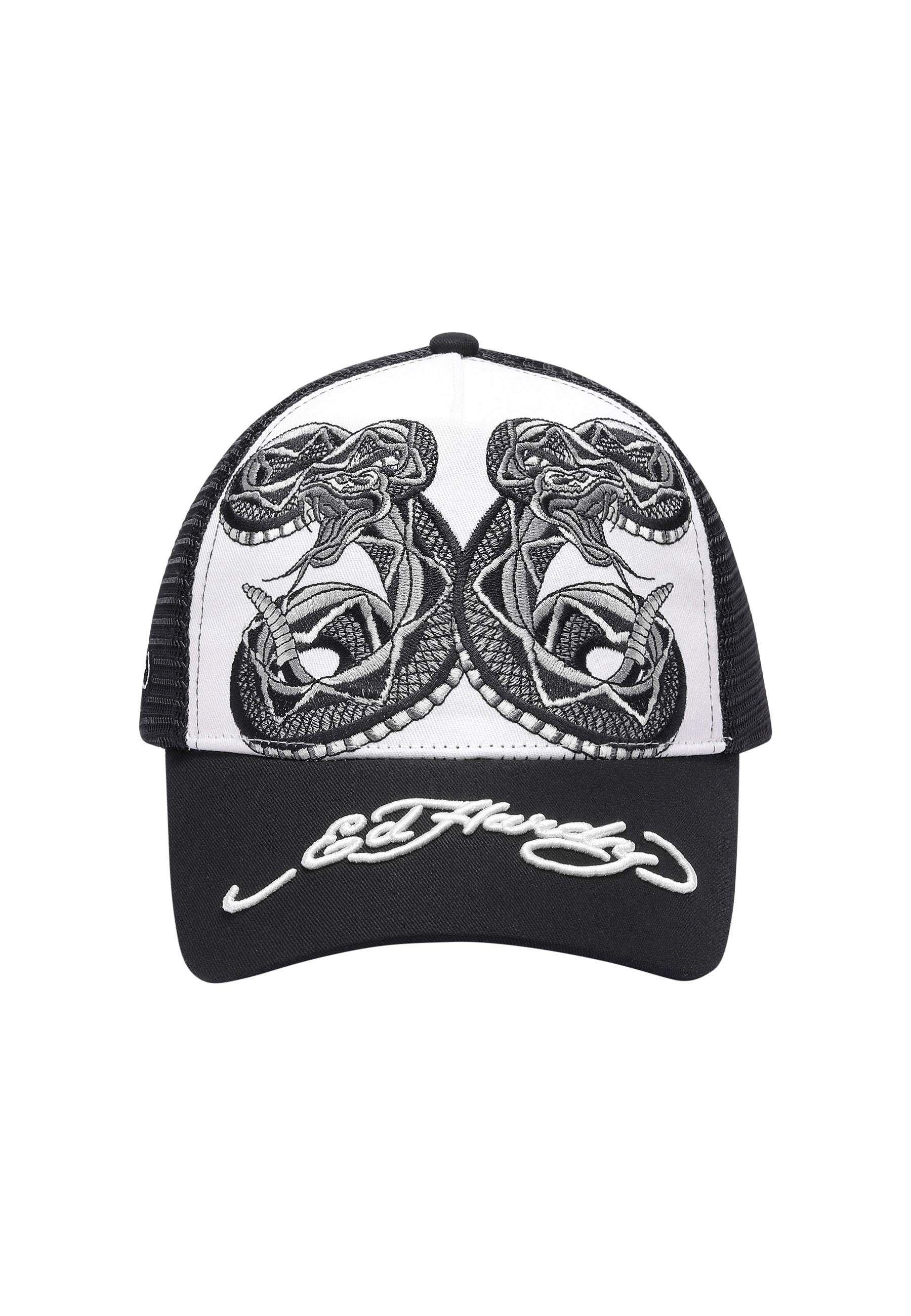 The Duo Black Snake Mesh Trucker Hat is this season’s must-have statement.