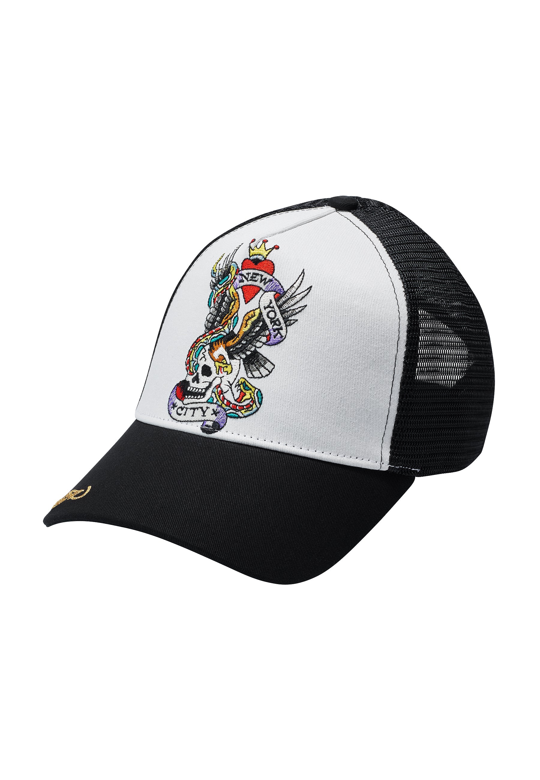 Unisex Nyc Twill Front Mesh Trucker Cap - White/Black