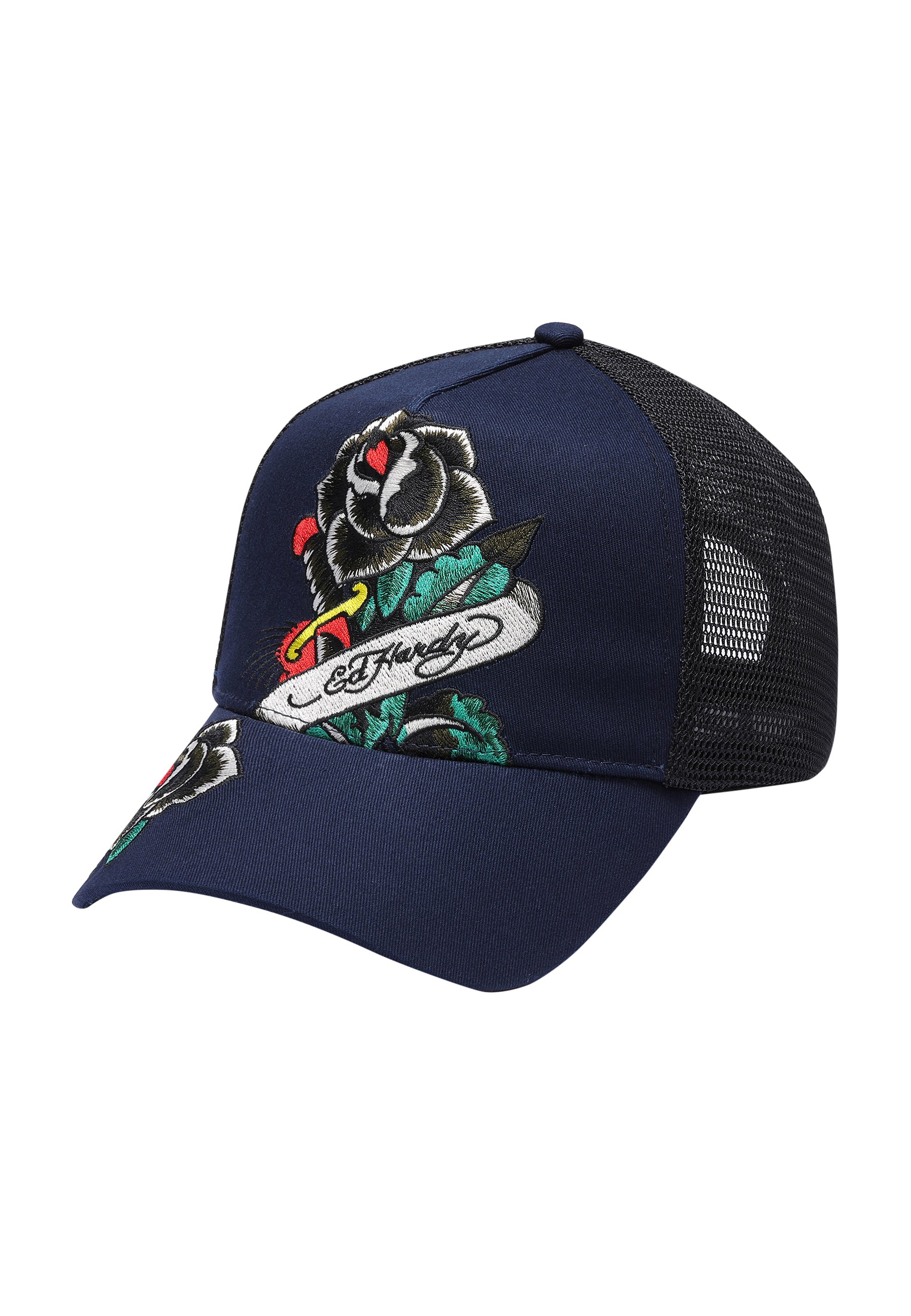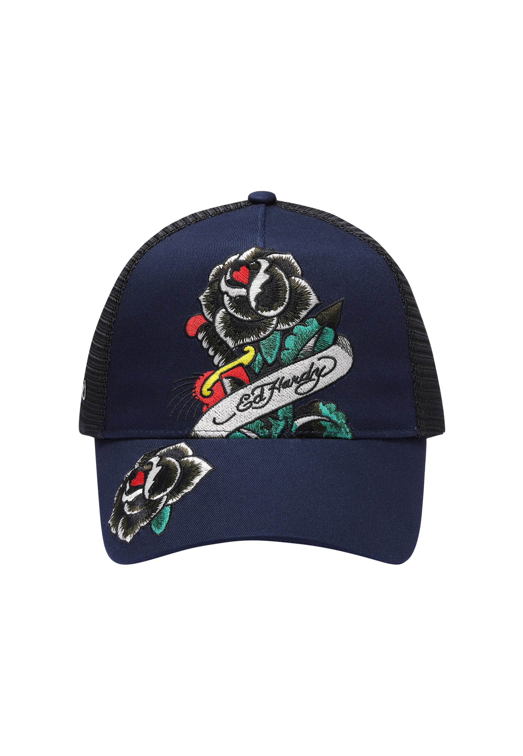 Featuring full-colour embroidery, The Corpse Twill Front Mesh Trucker is a bold statement piece that embodies Ed Hardy’s commitment to pushing fashion boundaries.