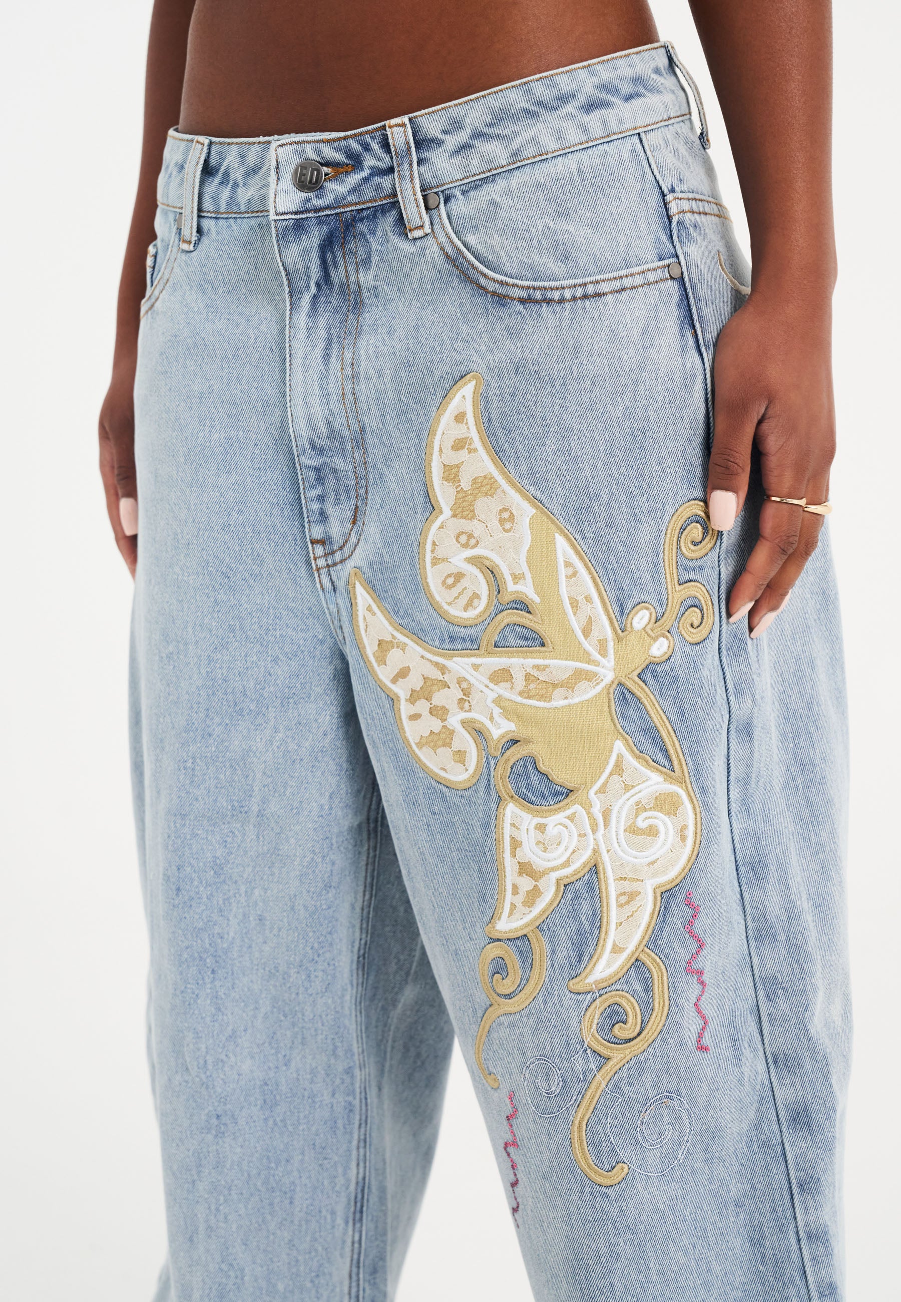 Womens Antique Butterfly Xtra Denim Trousers Jeans - Mid Blue