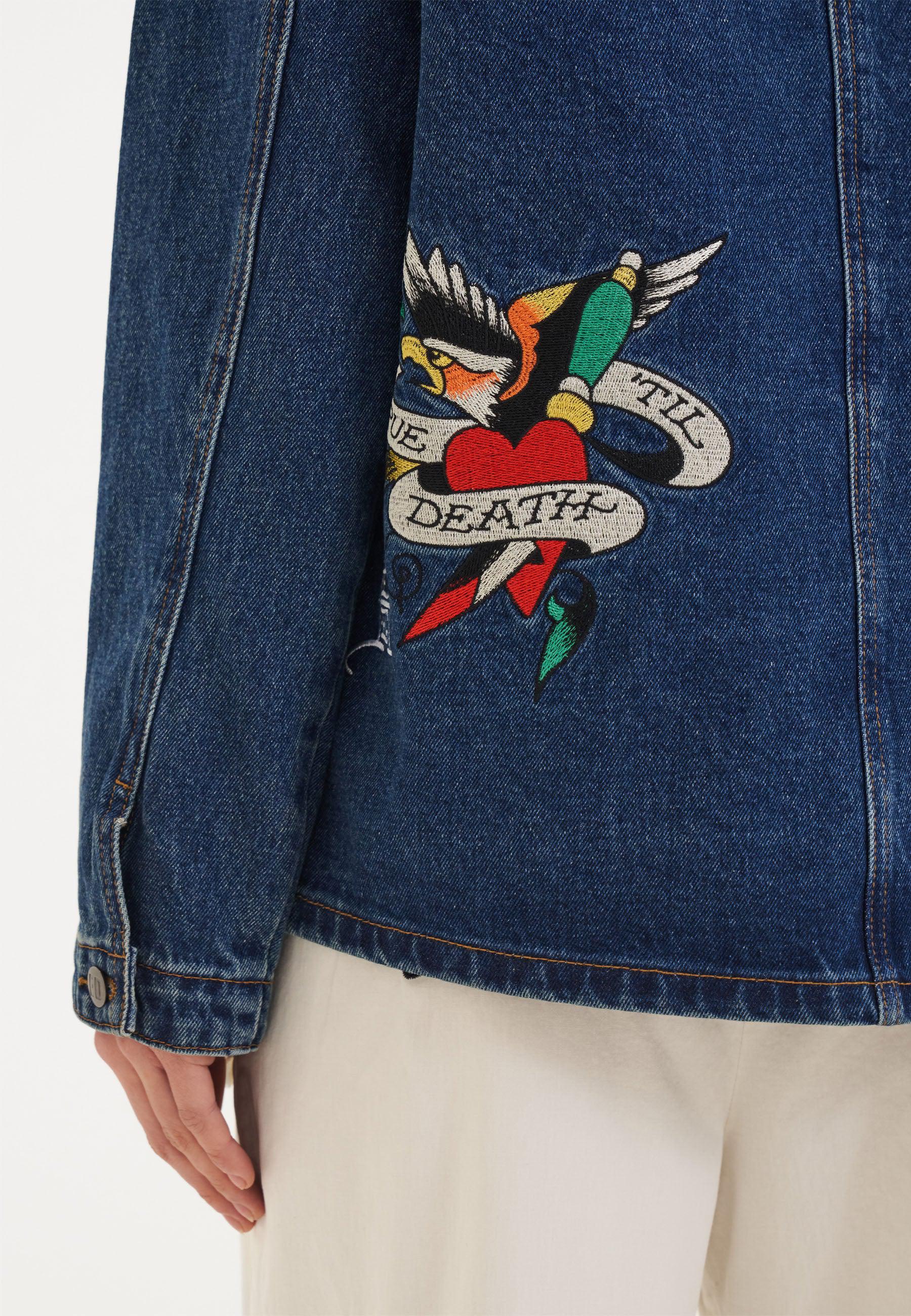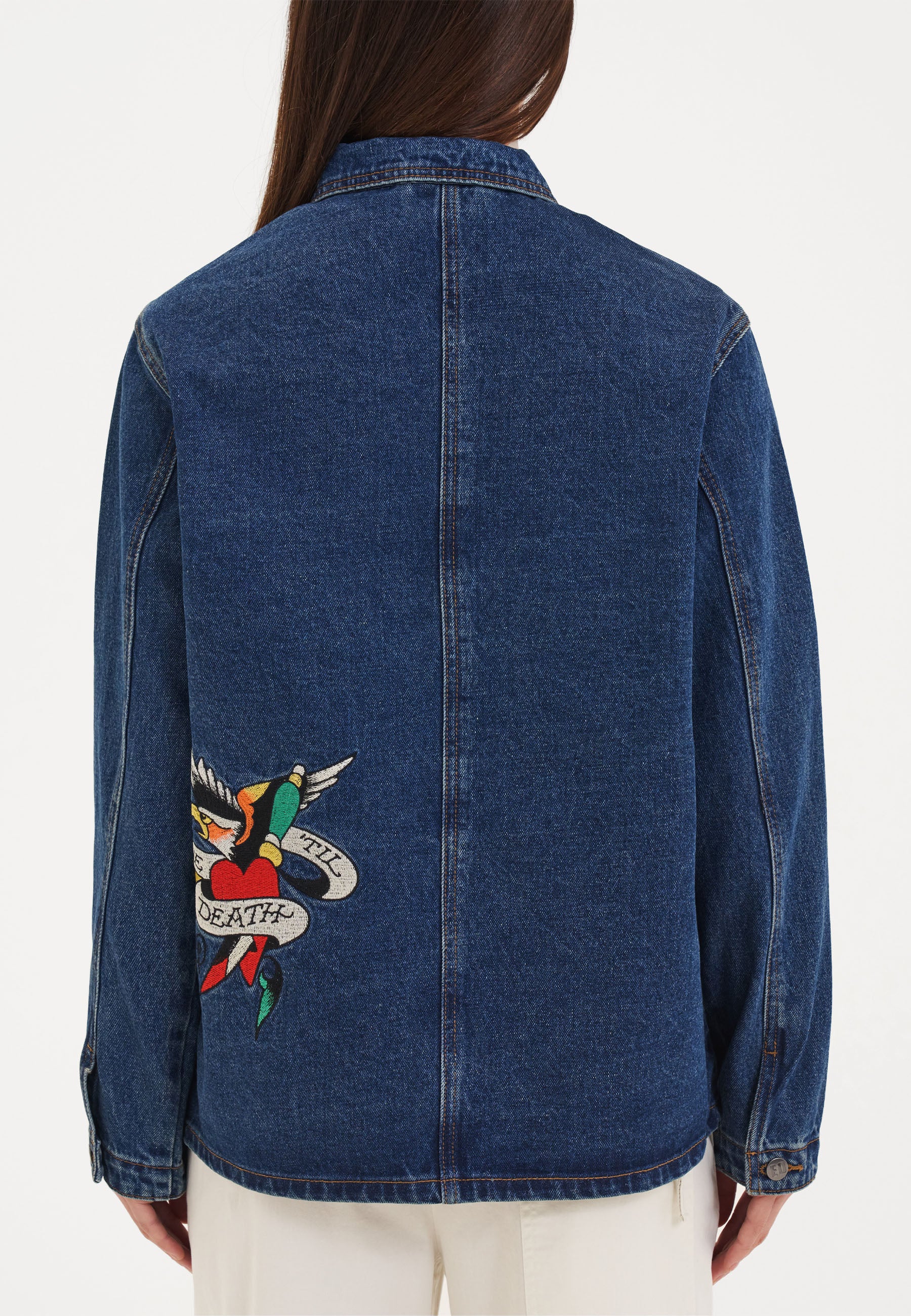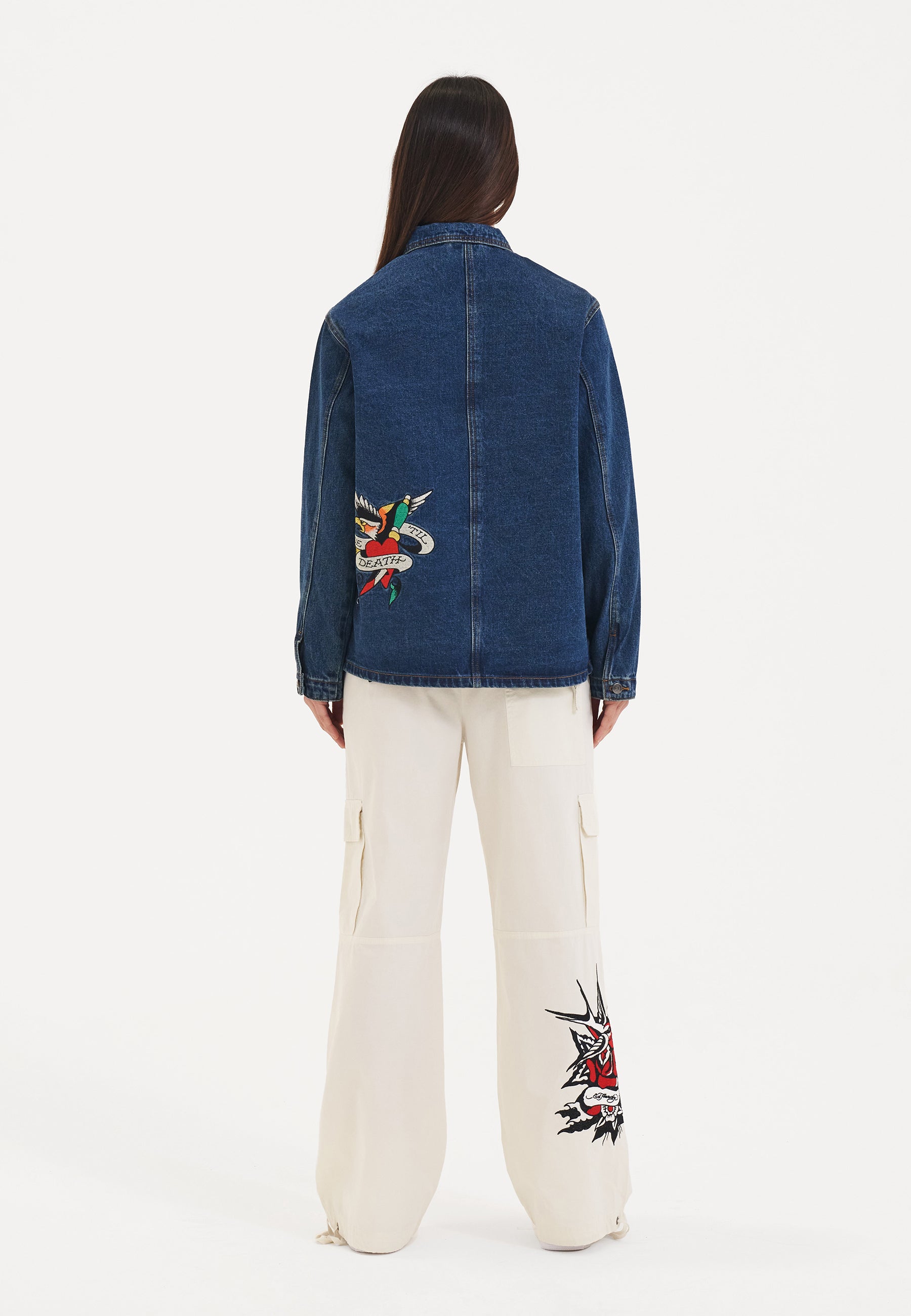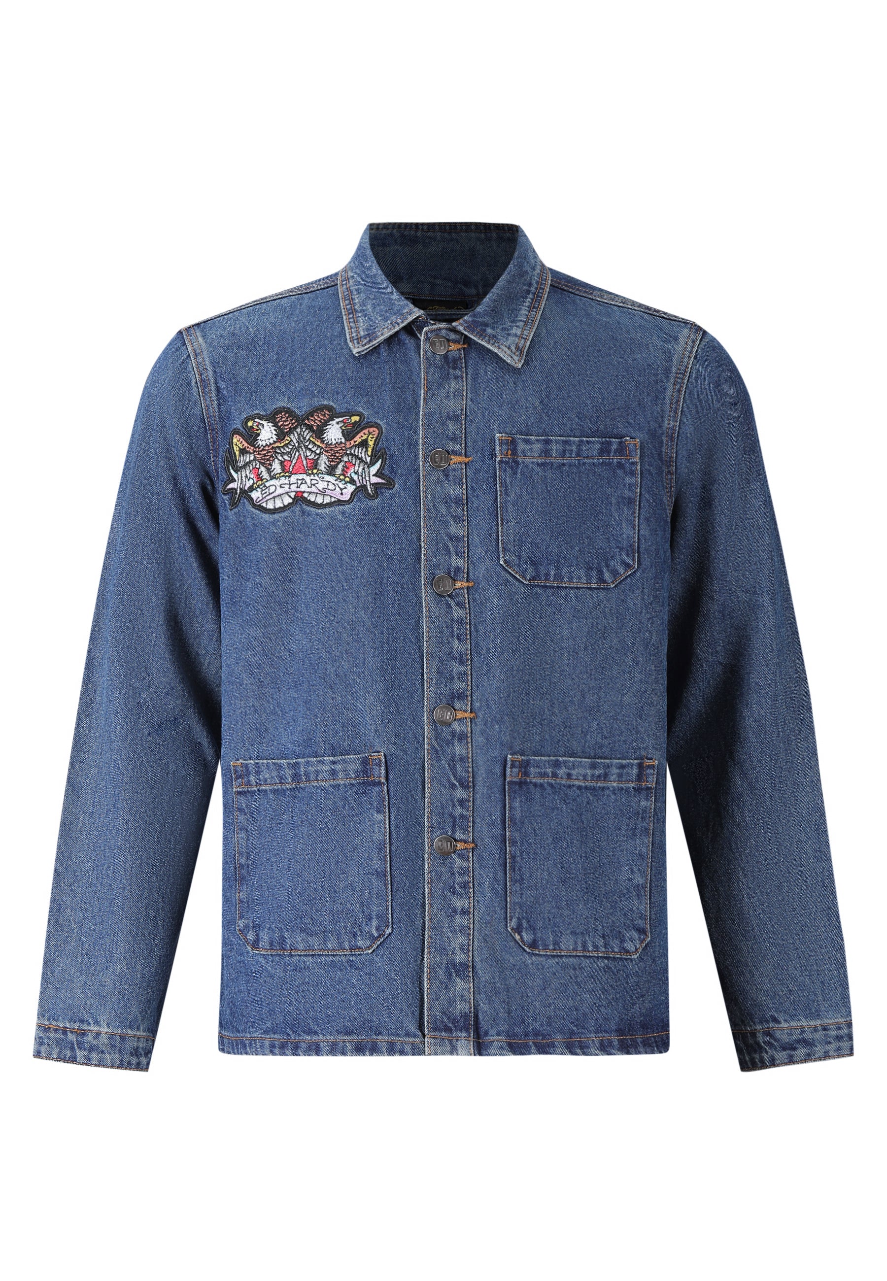 The new-season Battle of Eagles Denim Chore Jacket is a lightweight, premium jacket, perfect for layering this AW. Unveiling Ed Hardy's iconic tattoo designs once again in full-colour embroidery.