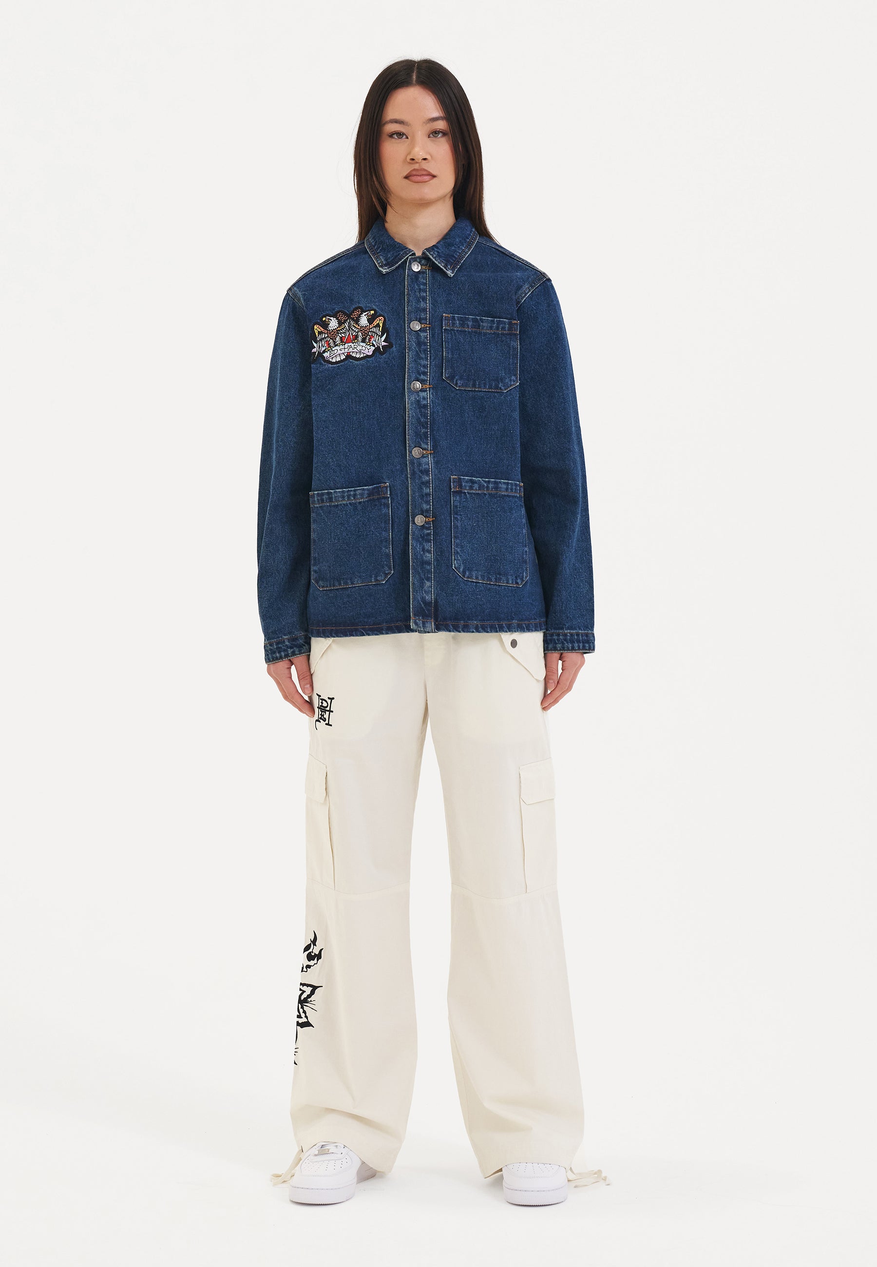 Womens Battle Of Eagles Denim Chore Jacket - Indigo