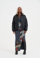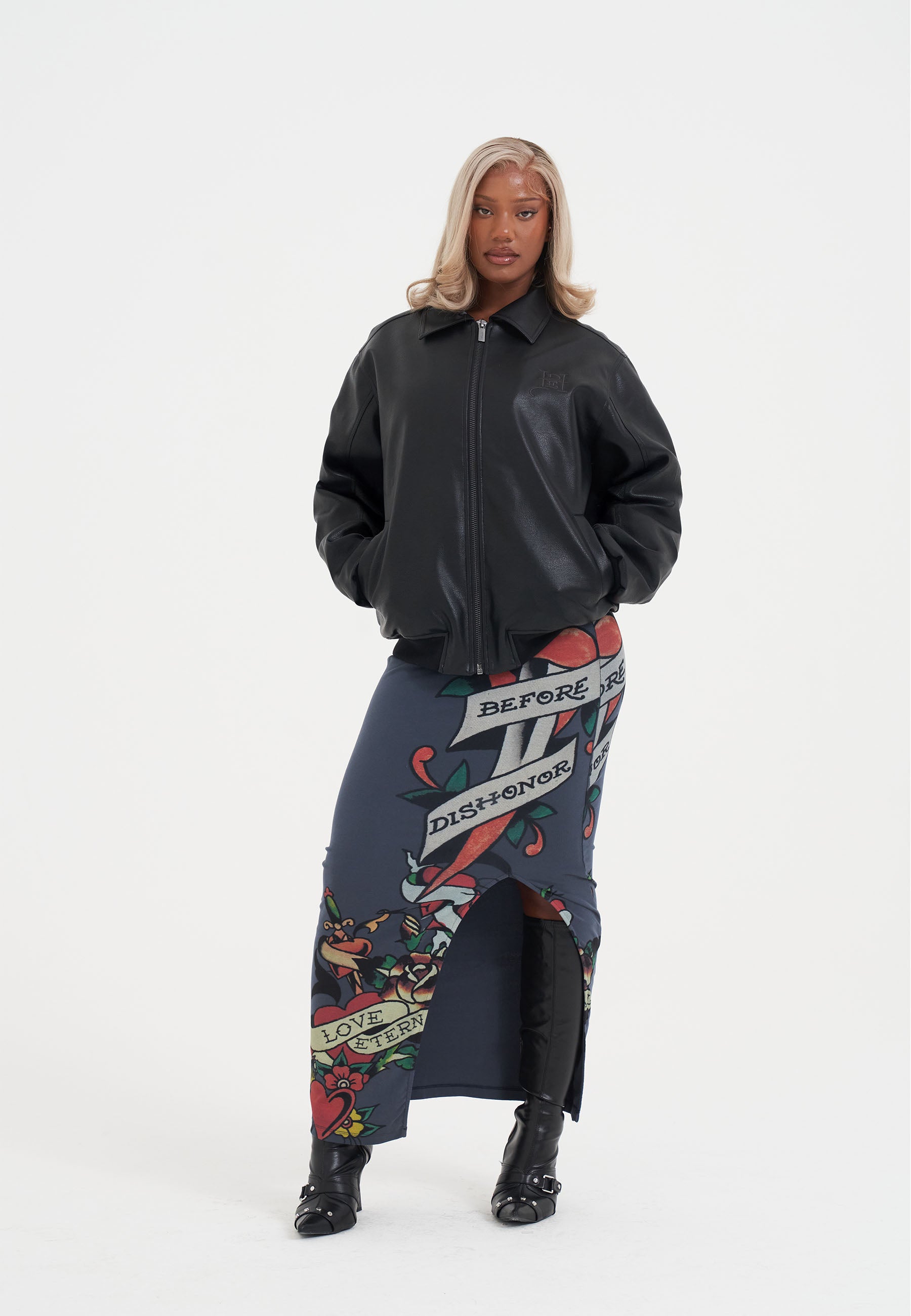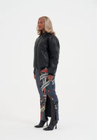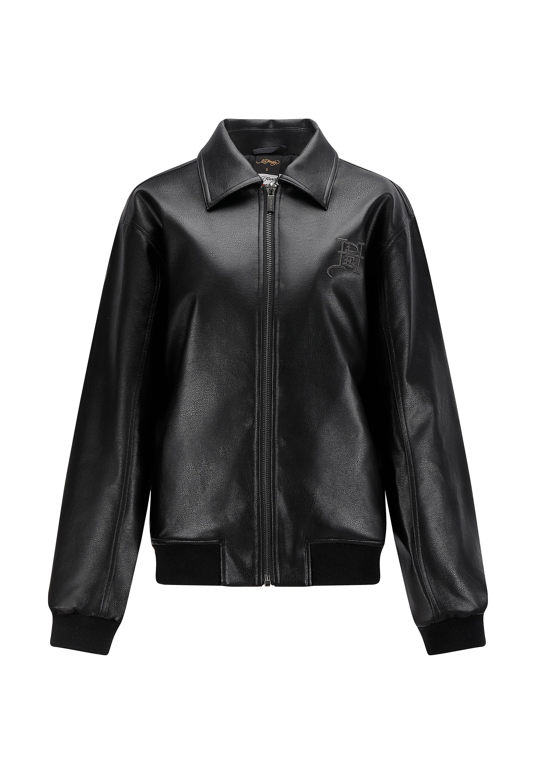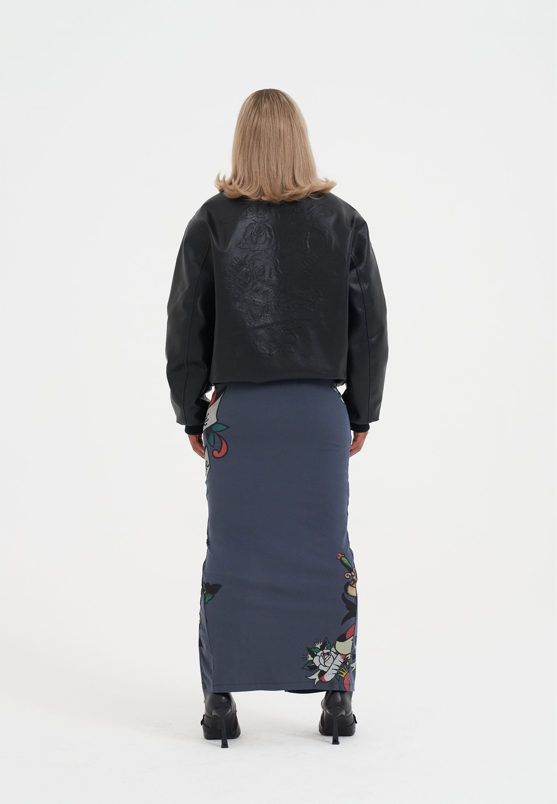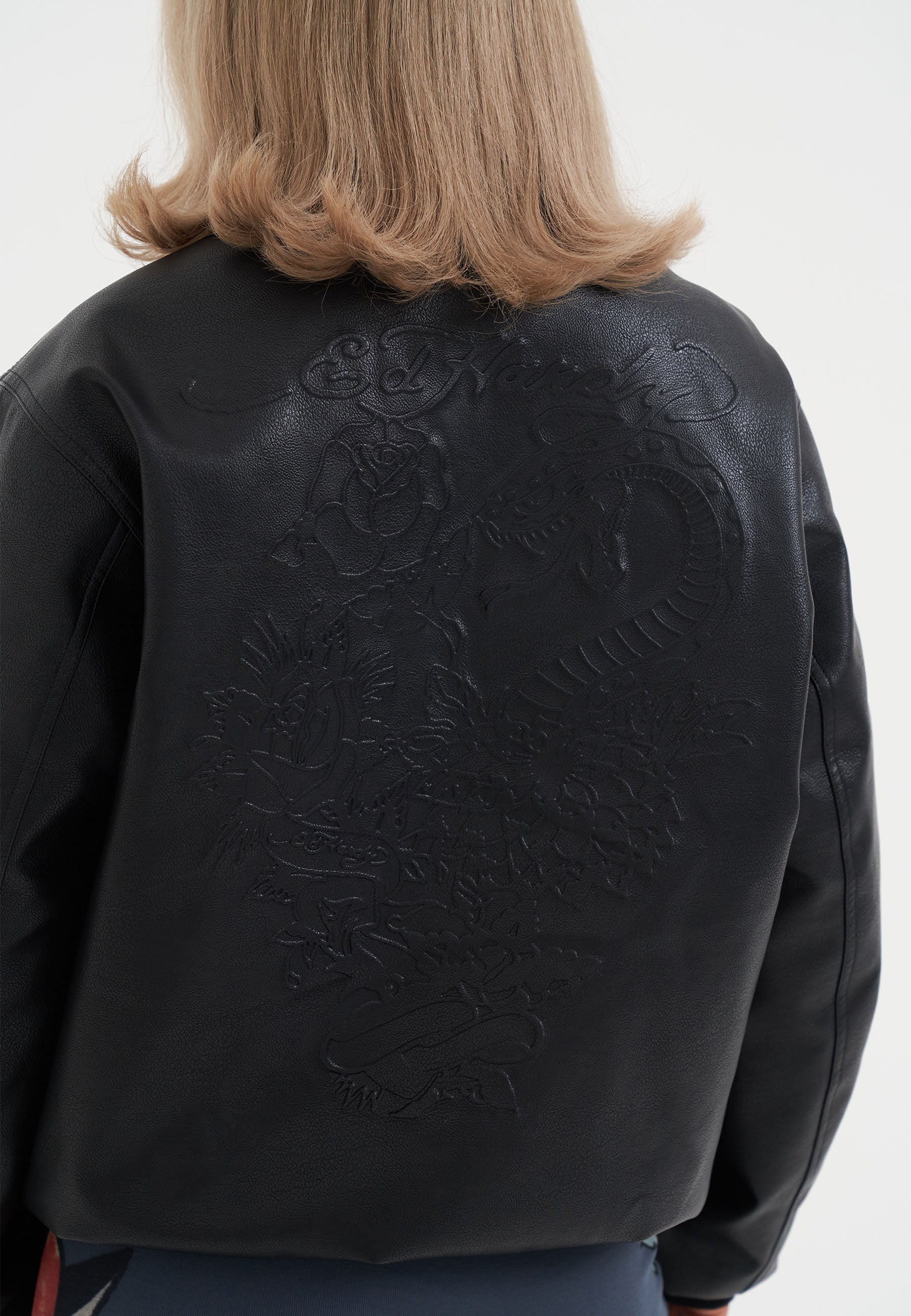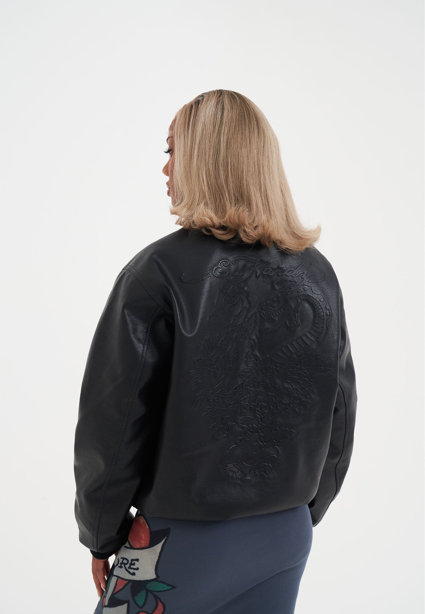 WOMENS BLACK COBRA EMBOSSED VEGAN LEATHER JACKET in Black