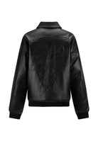 Womens Black Cobra Embossed Vegan Leather Jacket - Black
