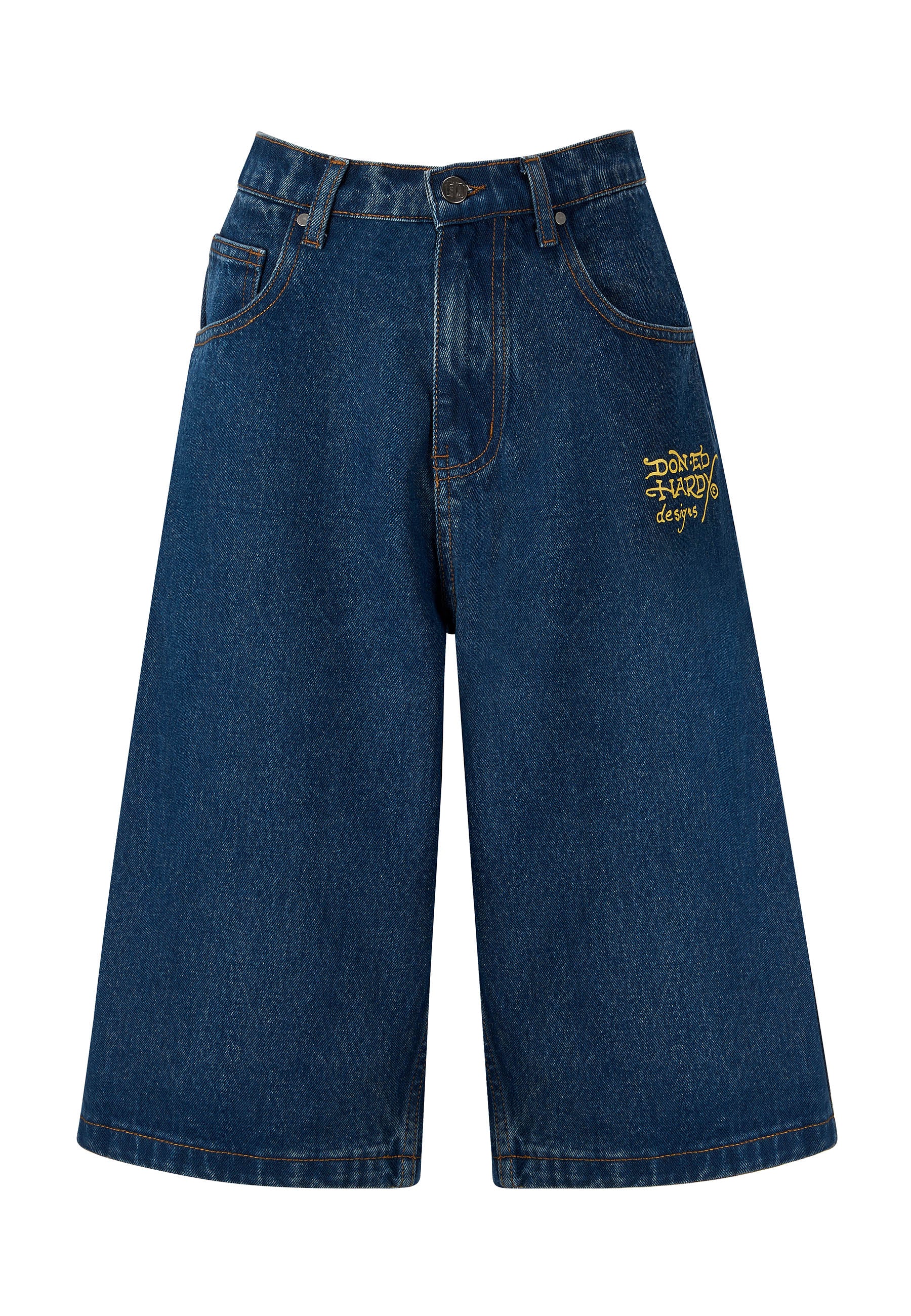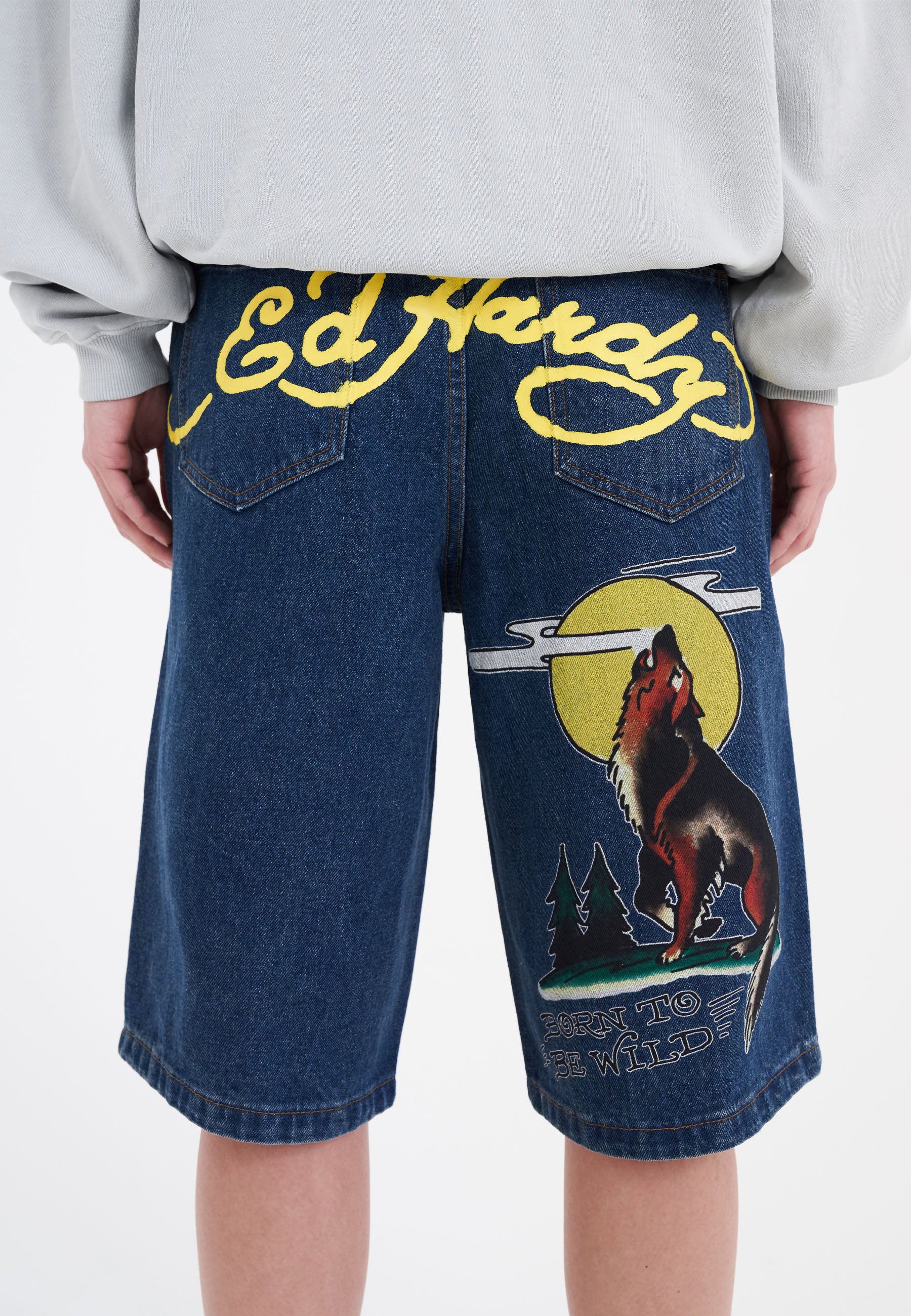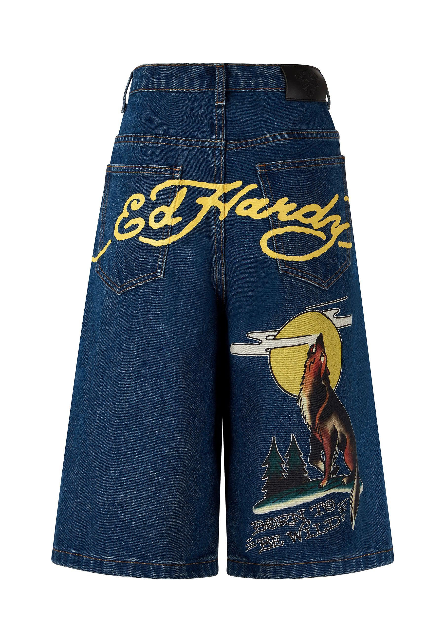 Womens Born Wild Relaxed Denim Jorts Shorts - Indigo