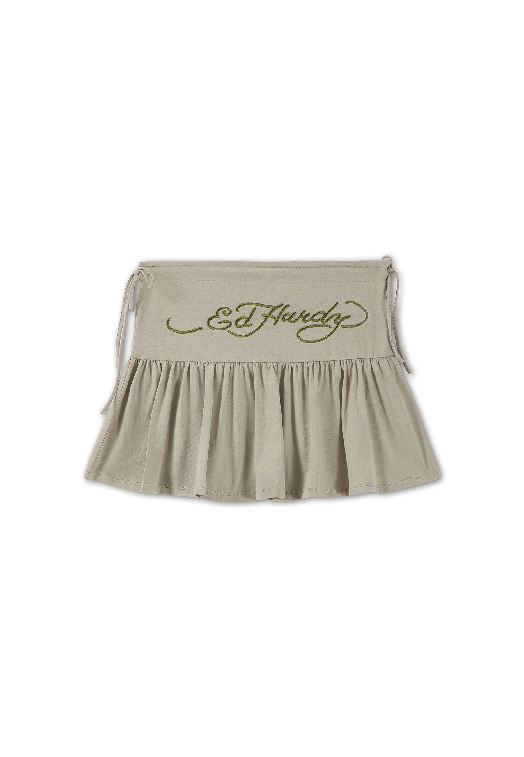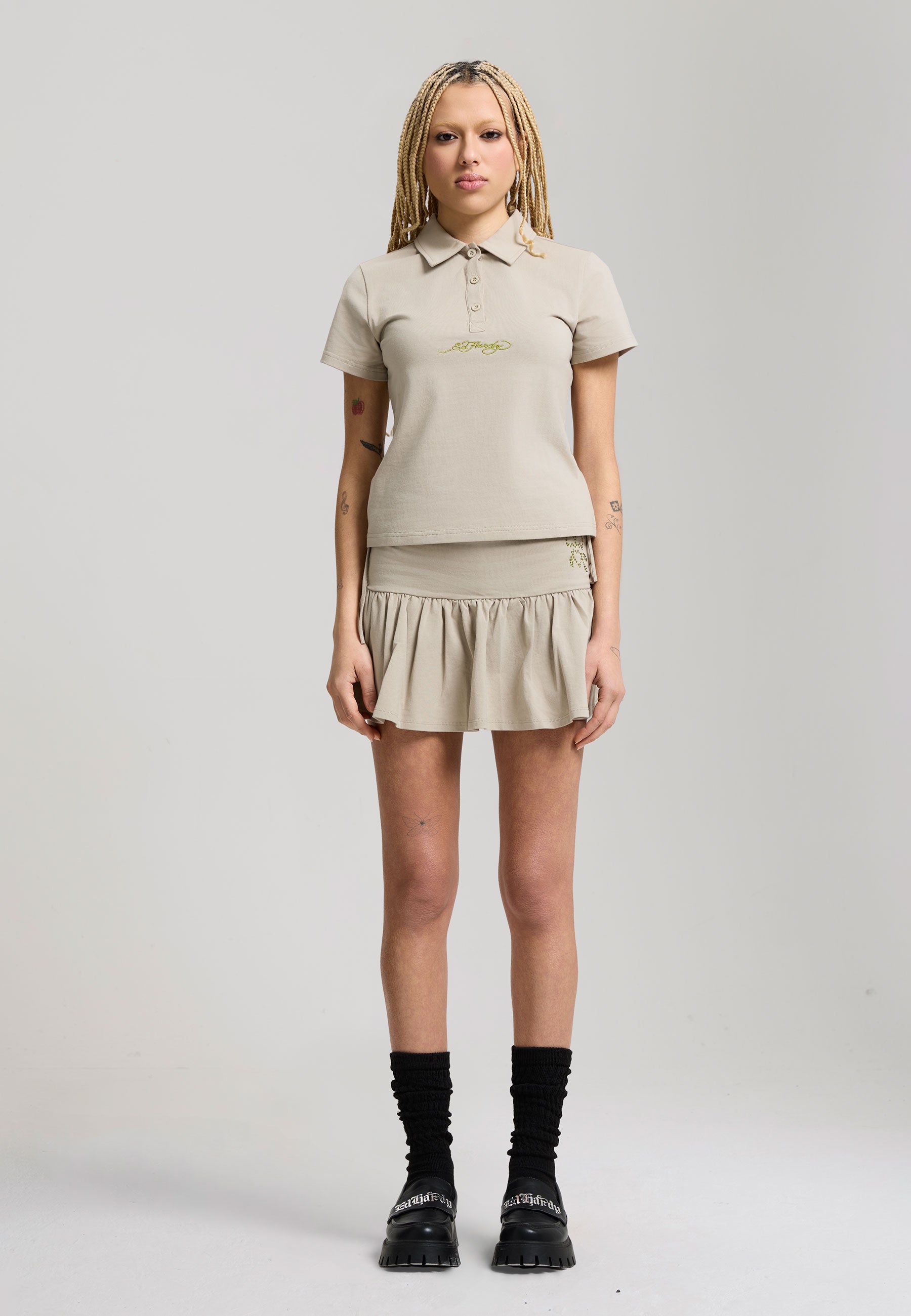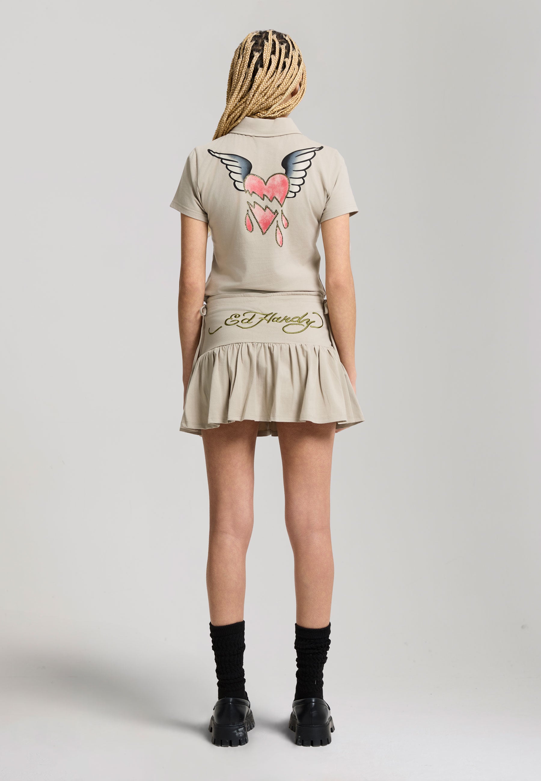 Womens Broken Hearts Ruffle Mini Skirt - Khaki