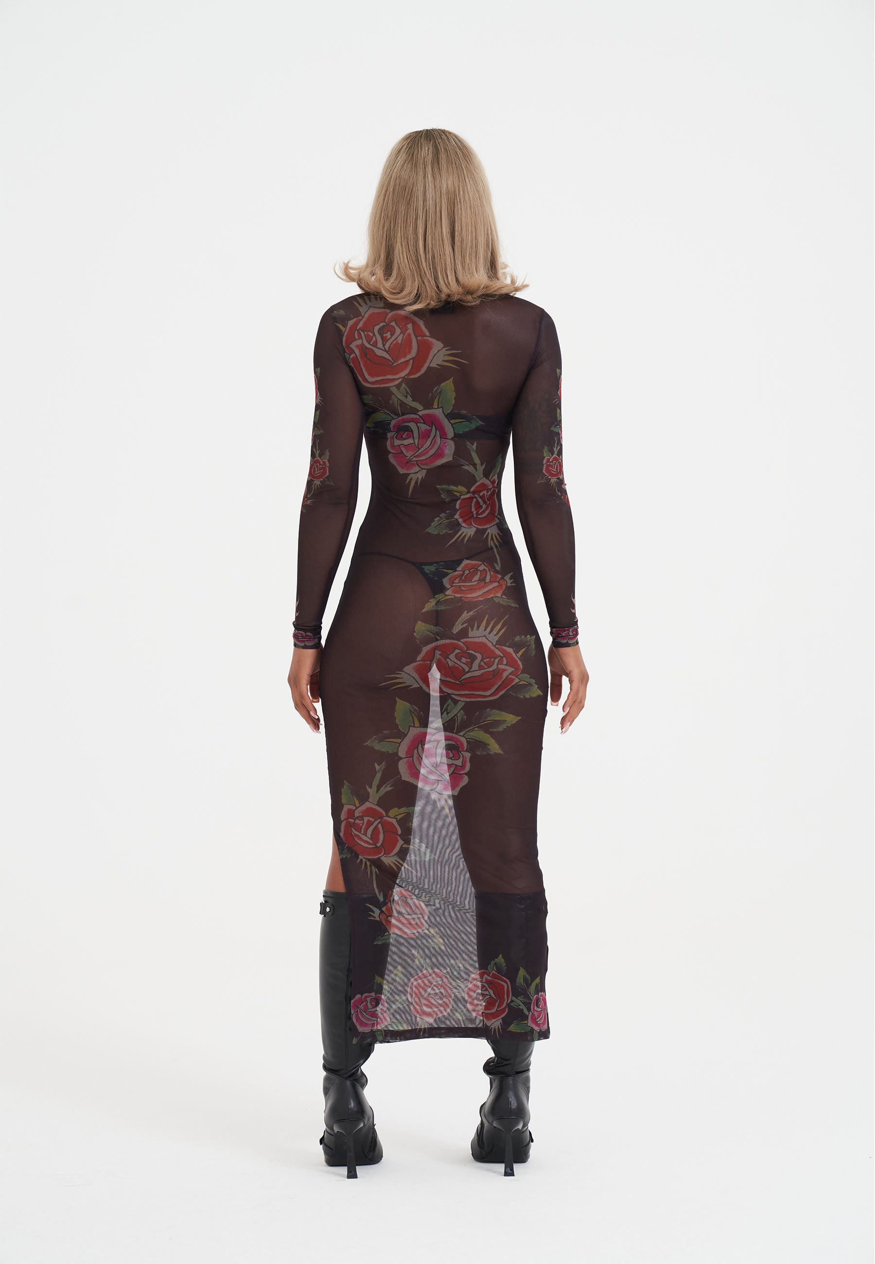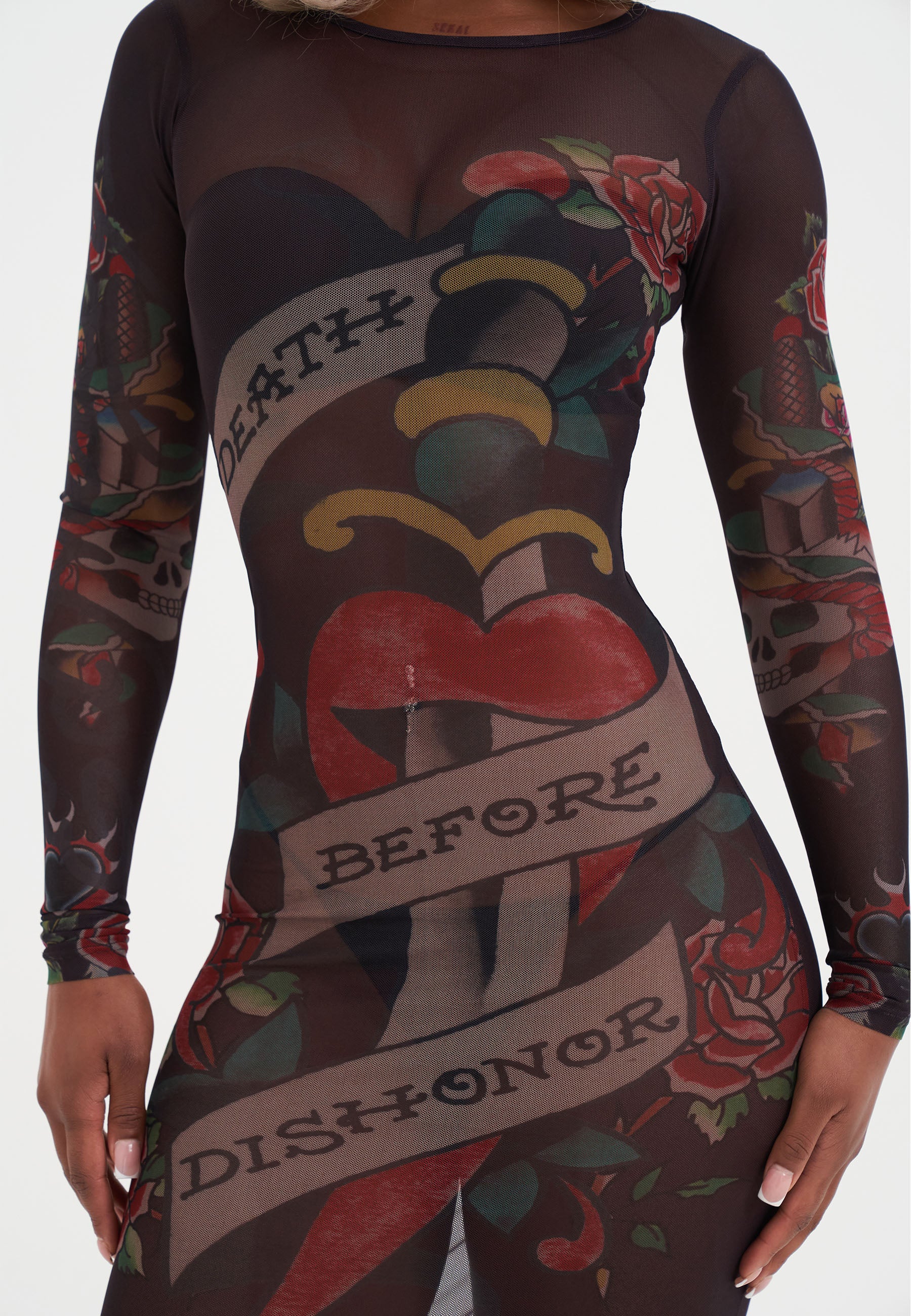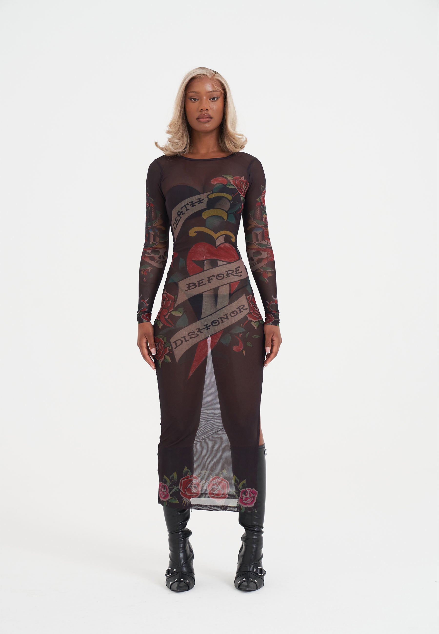 WOMENS DEATH BEFORE DISHONOR MESH DRESS in Red