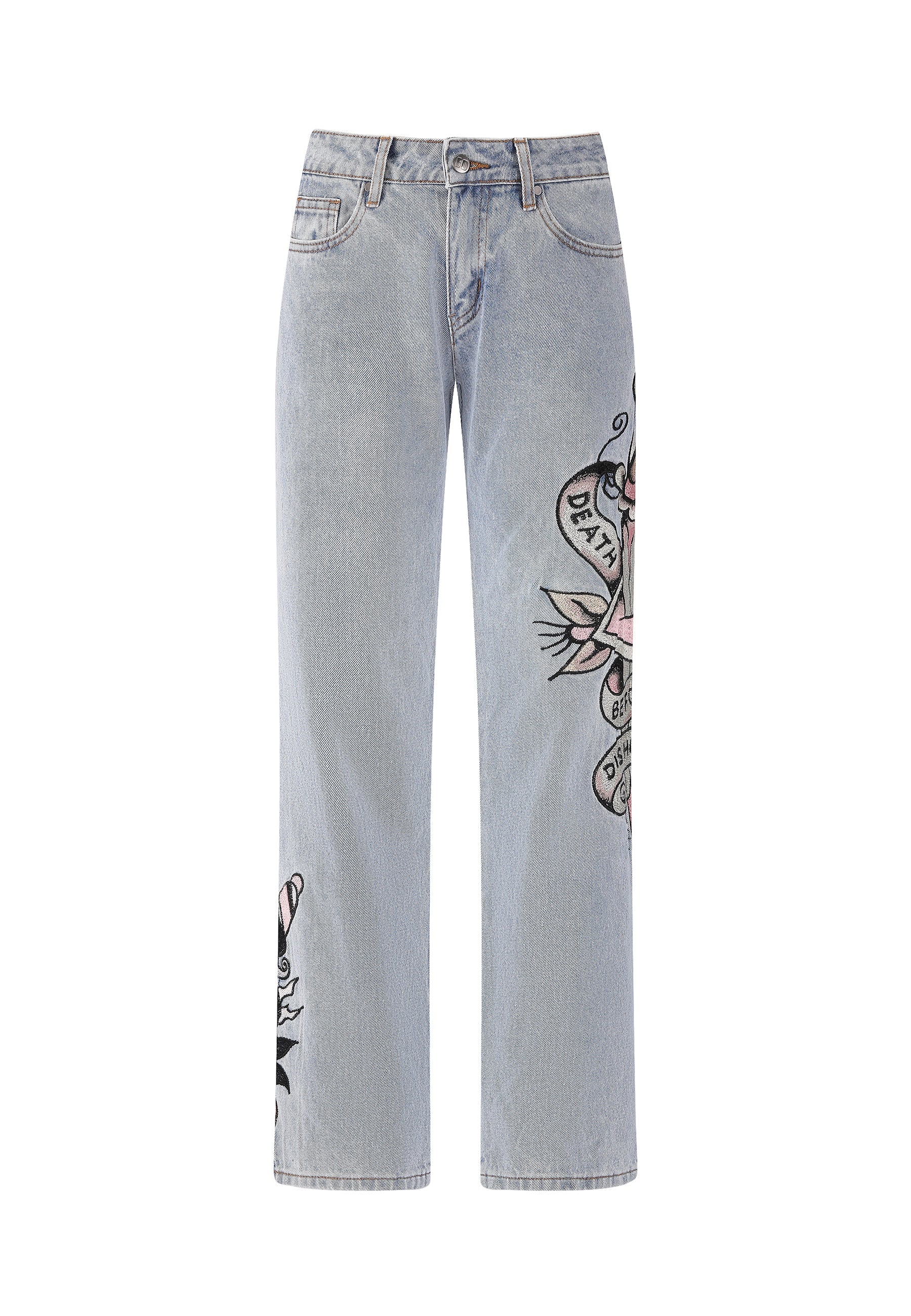 Womens Death & Dishonour Straight Denim Trousers Jeans - Blue